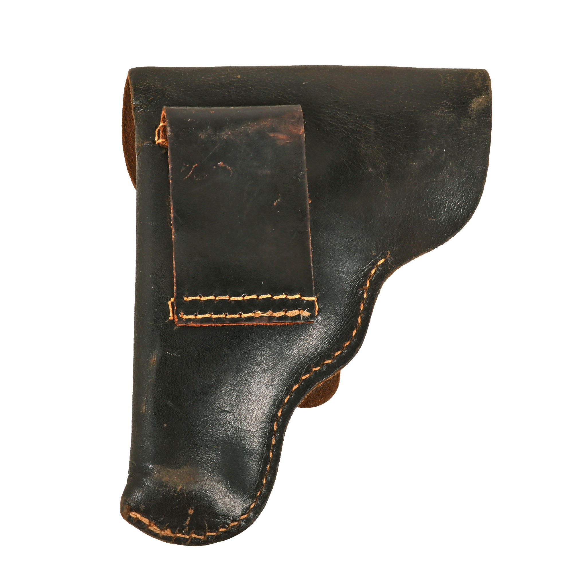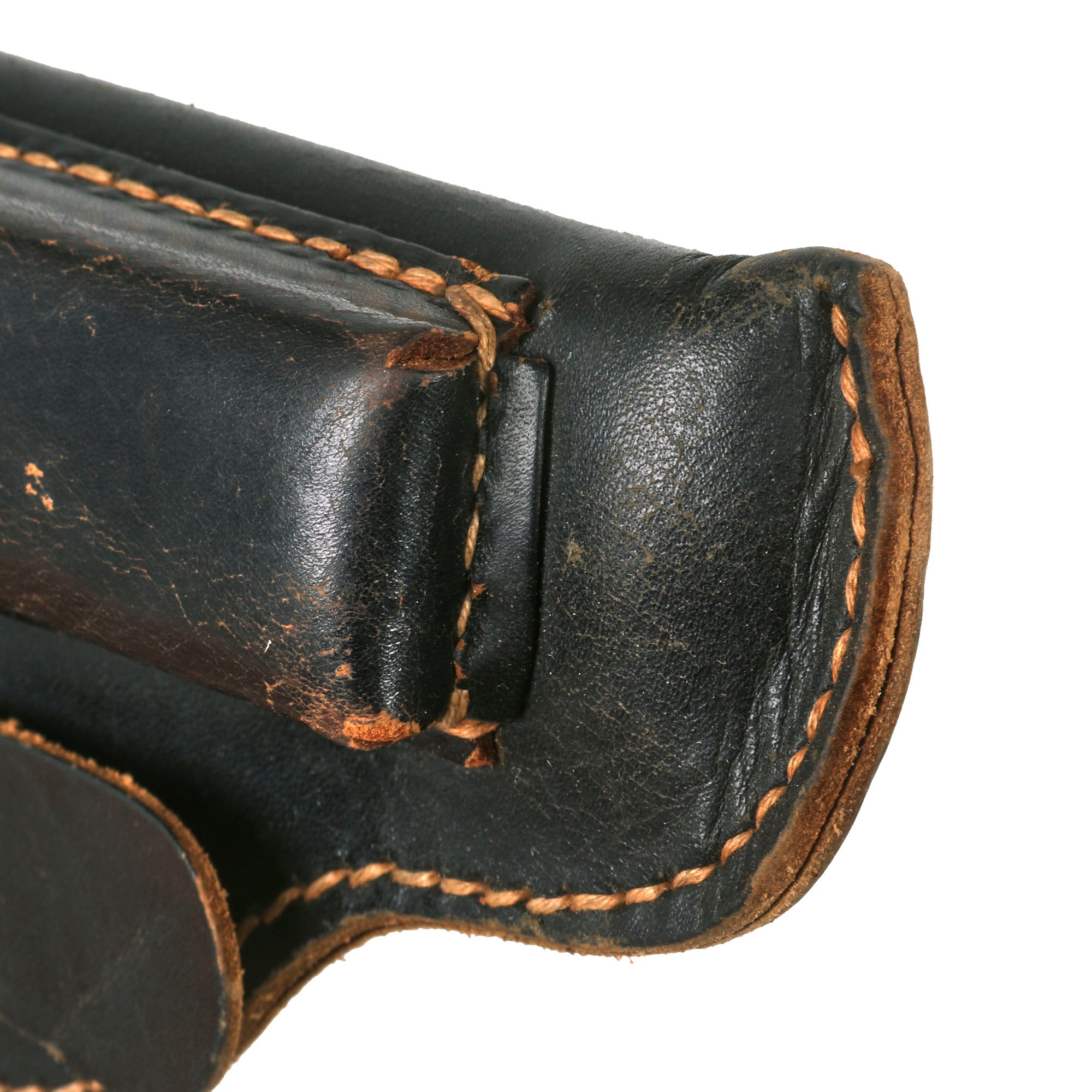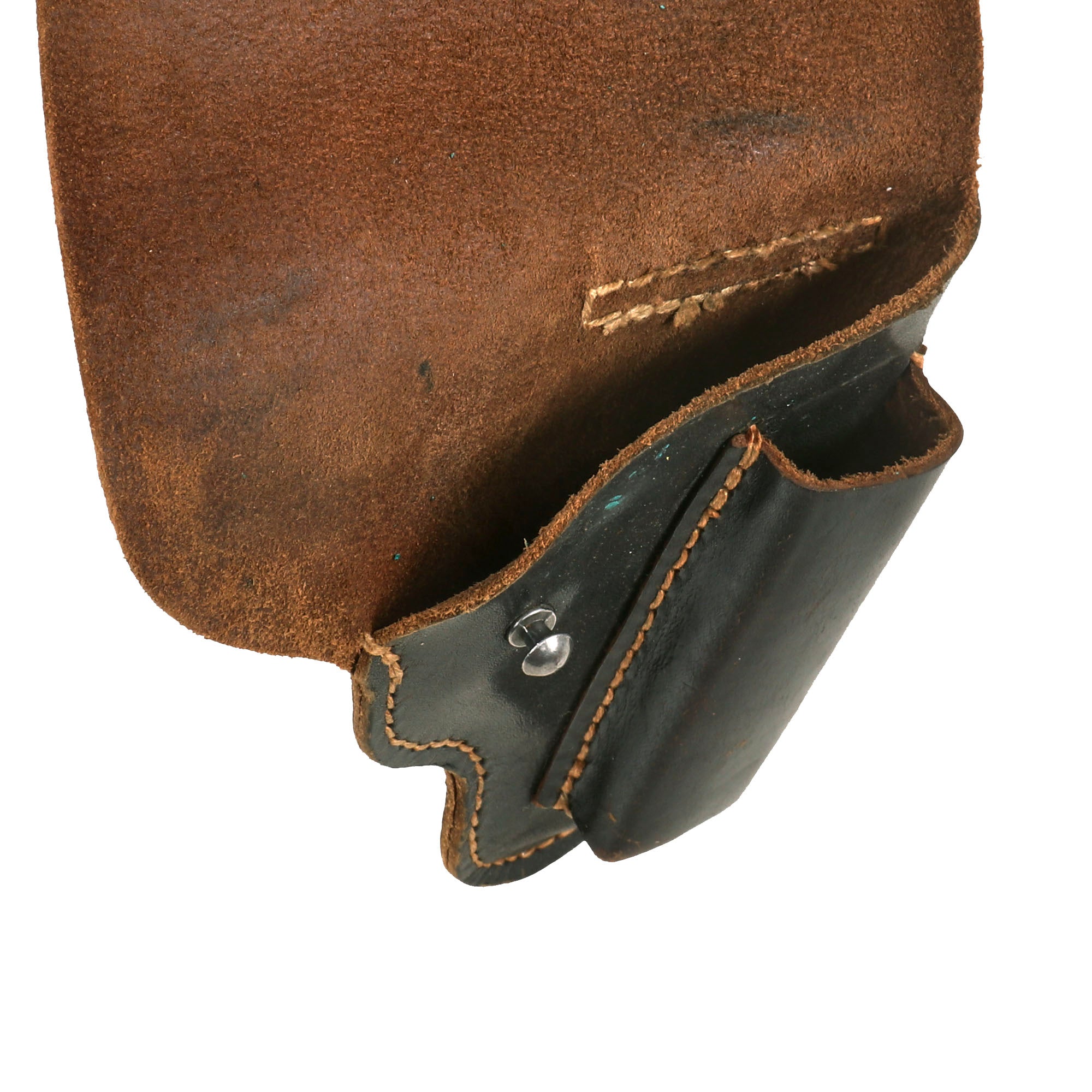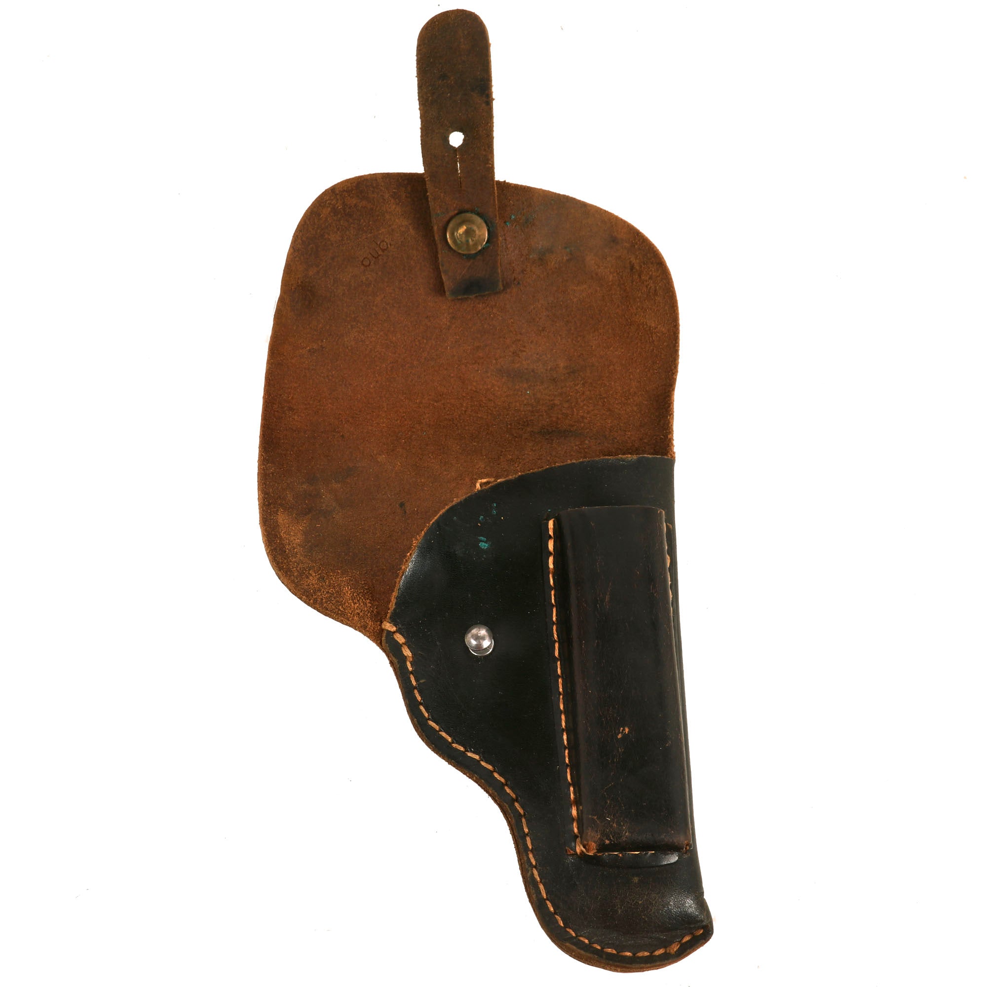 Original Item. Only One Available. This is a very nice brown leather flap top holster with a spare magazine compartment to the front, as issued with the Czech ČZ vz. 27 Pistol. This example is in great shape with some verdigris on the metal fittings, but the leather is still very pliable.
