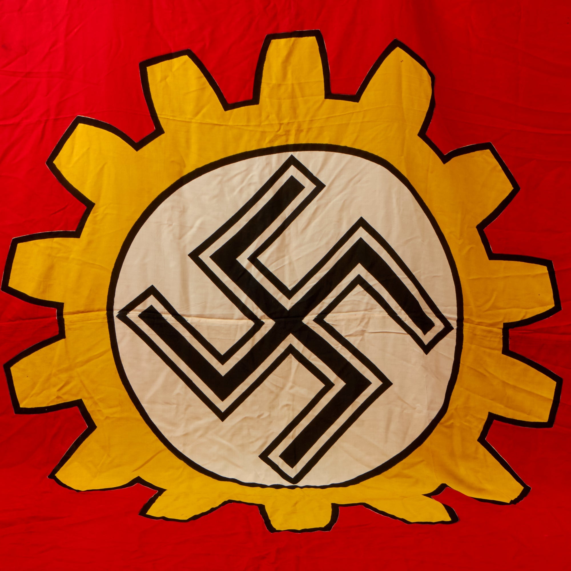 Original Item: Only One Available. The DAF (Deutsche Arbeitsfront or German Labor Front) was a National Socialist trade union that supplanted independent unions once the NSDAPs had come to power in Germany. This is a lovely large 90" x 110" (7.5ft. x 9.16ft.) example of the DAF Musterbetriebsfahne (Model Company Flag), awarded to companies that achieved exemplary production during that year. This is the first time that we have had one of these rare flags, and it is in excellent unissued condition! There are just a few stains keeping it from being truly mint!