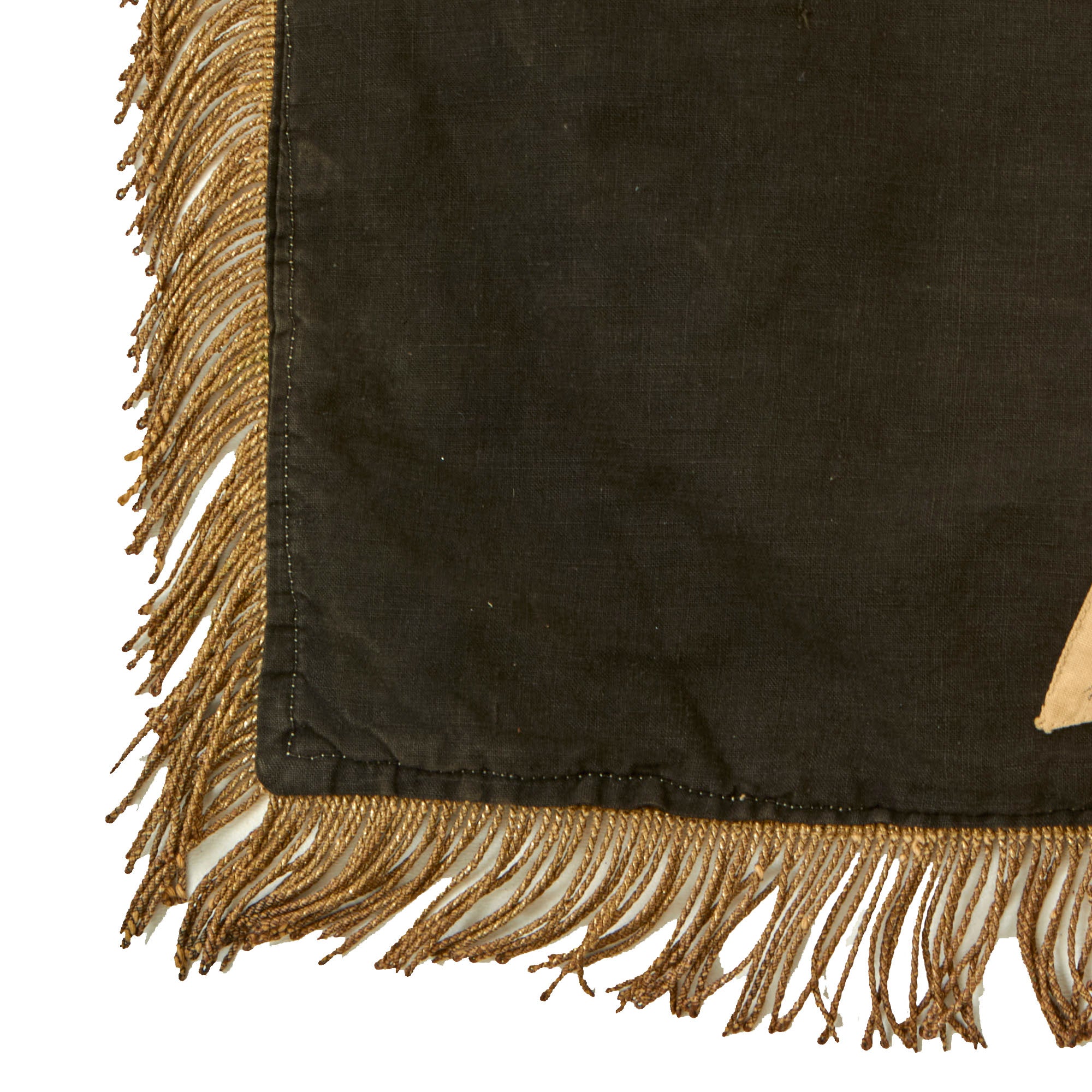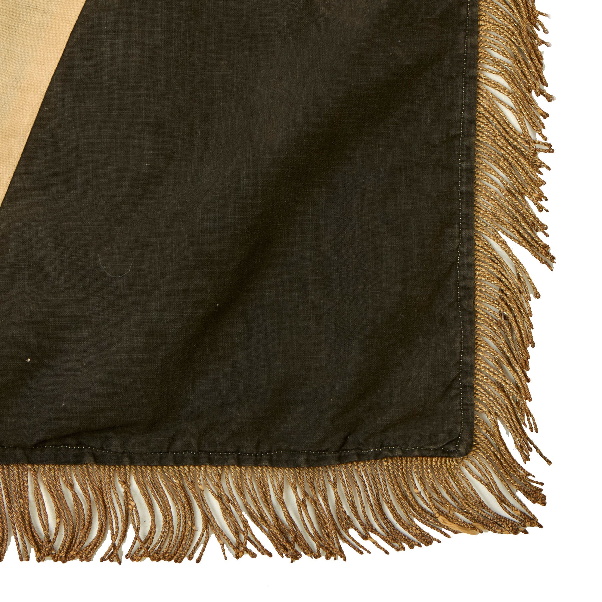 The banner does show some staining and age toning to the fabric, as well as some oxidation on the bullion fringe. However, it is still in really great shape and ready to add to your collection!