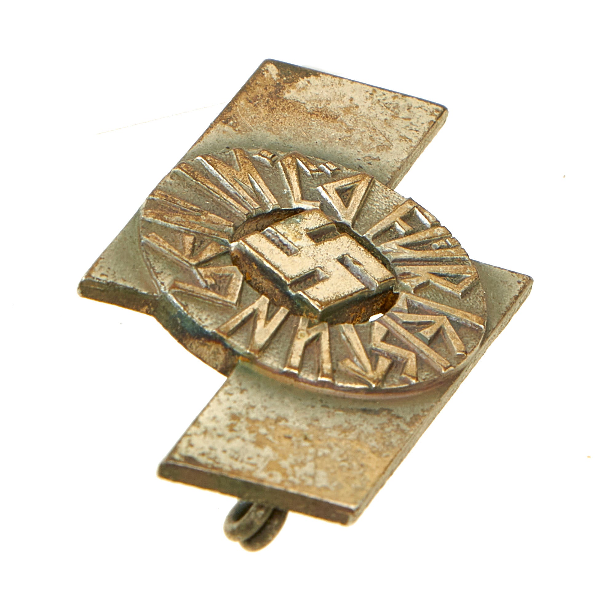 Original Item: Only One Available. This is a very nice hard to find German WWII Leistungsabzeichen des Deutschen Jungvolks (Proficiency Badge of the German Young People), one of the few that we have been able to offer over the years! The award was introduced by Reichsjugendführer Baldur von Schirach on September 26th 1935, and awarded to DJ members from the ages of twelve to fourteen years old after successful completion of the prescribed tests. The testing for award of the badge included military like training exercise and political indoctrination. The DJ Proficiency badge was issued in only one grade and bestowal was discontinued in 1944. As with most awards a cloth version was also authorized for wear by qualifying personnel.