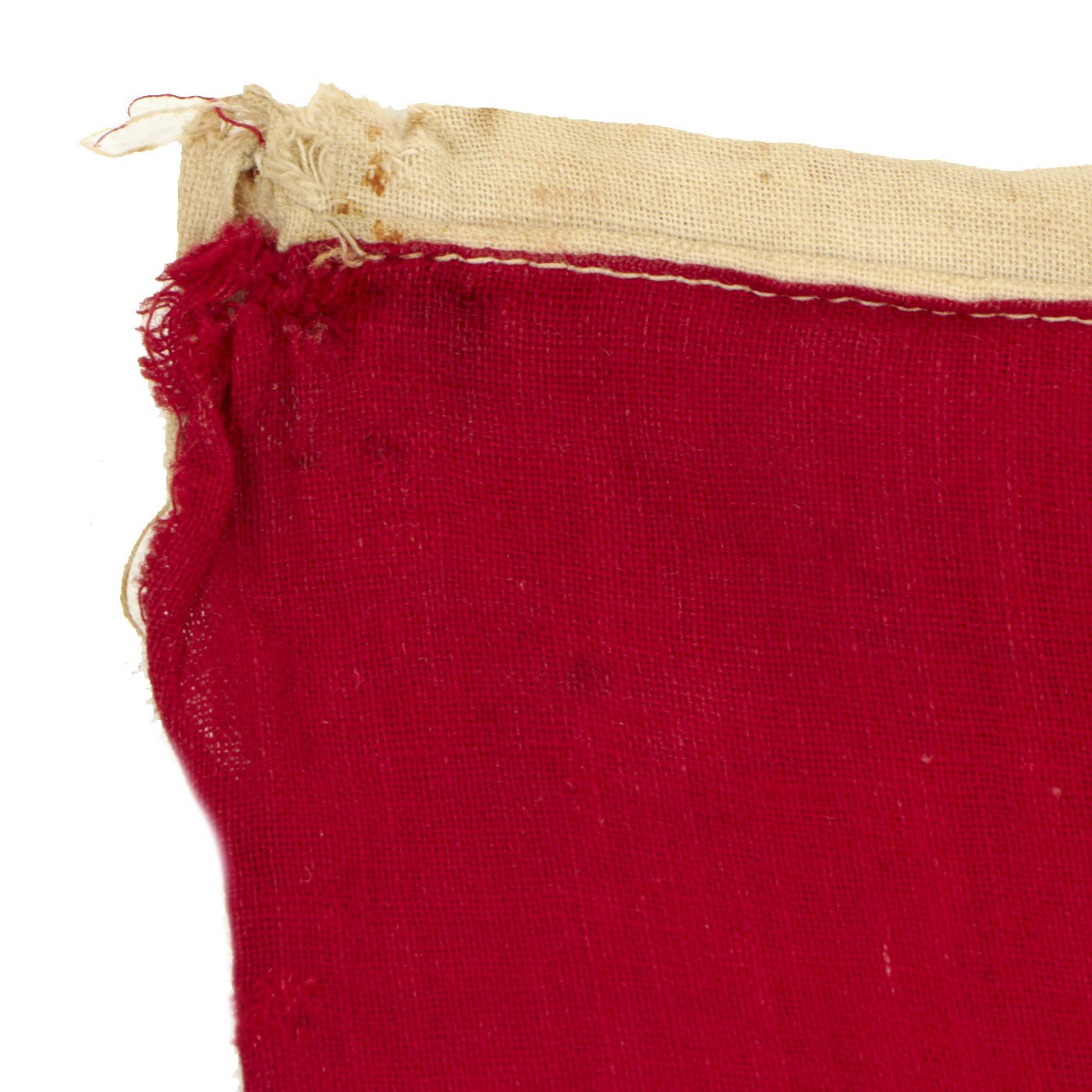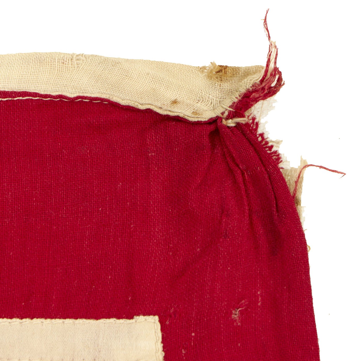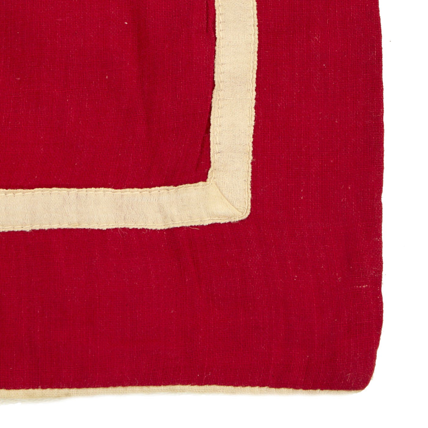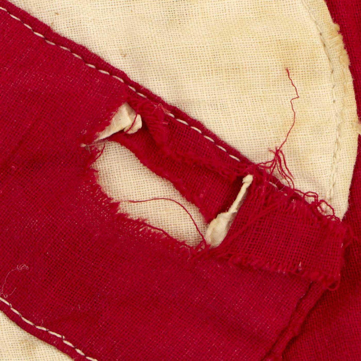 One side has a red background, with a white border inside, and a central white shield with a red stripe across it. We unfortunately have not been able to identify which city or state this emblem is from. Towards the top there is a stitched on multipiece swas (hook cross) emblem, which looks to have been cut out of an armband and attached, as some of the red background can be seen protruding out from the edges. The stitching also goes through both sides, so it definitely looks to have been added later during the NSDAP period.