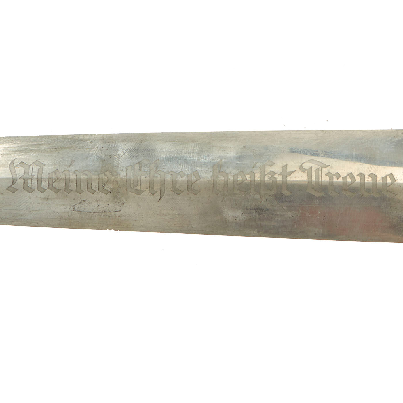 Original Item: Only One Available: The SS (Schutzstaffel) was originally formed in 1925, ostensibly to act as a small, loyal bodyguard unit to protect the Führer, Adolf AH. Under the direction of the Reichsführer-SS Heinrich Himmler, the SS grew to be the most ruthless and feared organization of the 20th century. They were the vanguard of Germany eventually controlled nearly every function of German life and much of Occupied Europe. The SS dagger was introduced in 1933. Early on, members of the SS were awarded their daggers during a ceremony at the Feldherrnhalle Memorial in Munich. The annual ritual, charged with mysticism and meant to evoke the traditions of medieval Teutonic knights, was held on 9 November, the date of the unsuccessful Munich Putsch of 1923. Both officers and enlisted men wore the identical dagger until 1936. After this time, only enlisted men wore the M1933 dagger.