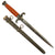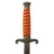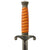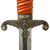 The crossguard looks to be made in the same way, with a blue oxide coating overall, which is very well retained. It does show some wear through on the raised areas, but for the most part looks great. There is just a bit of oxidation on the ends of the "scrolls" at the edges. The details throughout the characteristic eagle are exceptional throughout the head, breast and wing feathering, talons and wreathed mobile swas. The grip ferrule looks to be plated steel, and had the same blue oxide coating, which is well retained. The celluloid grip has faded to a lovely pumpkin orange color, which is slightly lighter on one side. This occurs over time due to light exposure, so areas that get more light fade more.