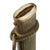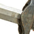 The scabbard is a fine example, and is made of high quality plated steel, which then had the same blue oxide coating applied as on the other fittings. There are no large dents or bends that we can see, and the plating is still well retained, though it has bubbled a bit on the narrow sides. This scabbard has very crisp, finely pebble grained panels, and the aluminum carrying bands have a very nice overlapping oak and acorn motif, a common design seen on German edged weapons. The throat is the thinner style, and has two "dome head" screws on the narrow sides of the scabbard.