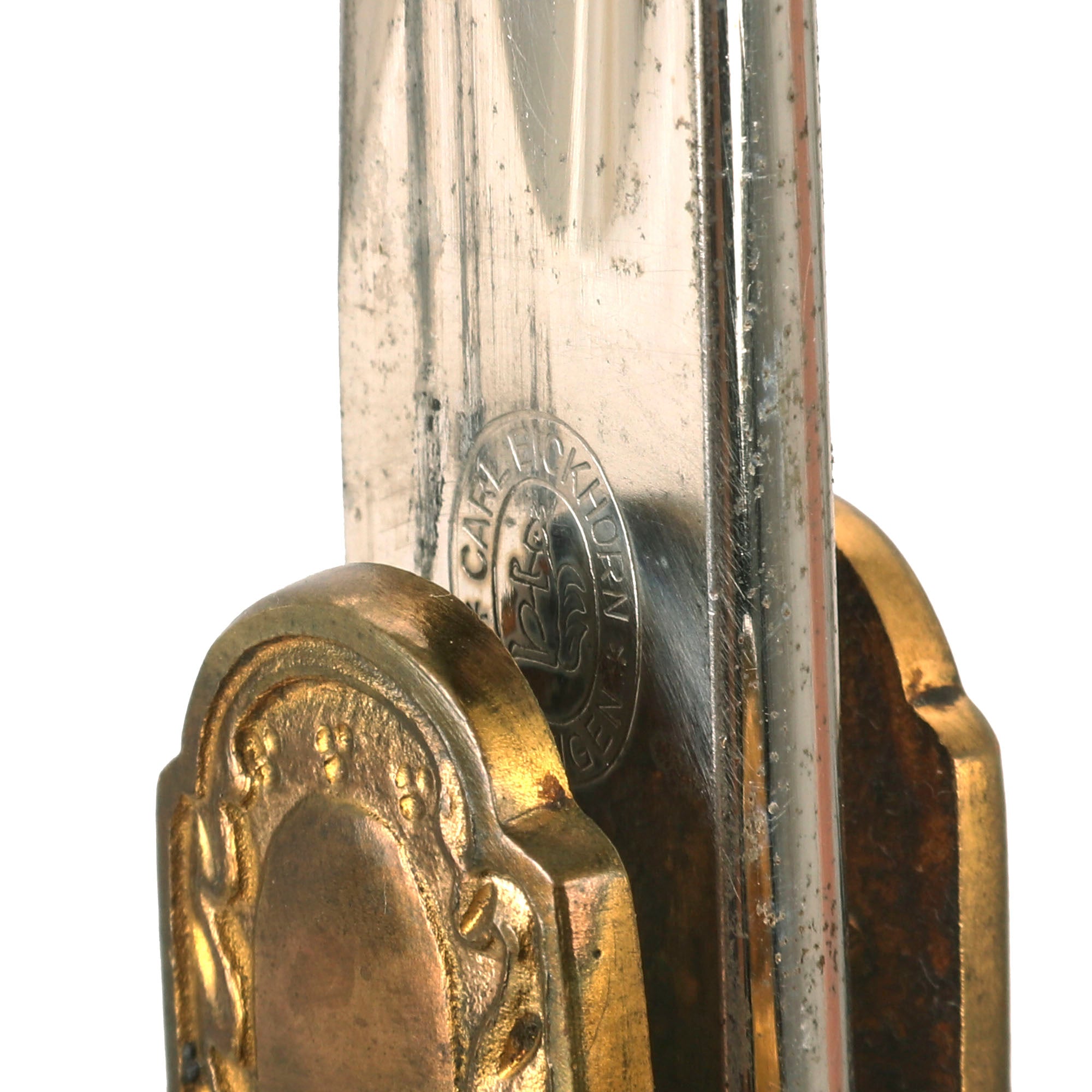 Carl Eickhorn is a legendary maker from Solingen, the famous "City of Blades" in Western Germany. According to J. Anthony Carter's book, GERMAN KNIFE AND SWORD MAKERS, this company was founded in 1865 by Carl Eickhorn, and is arguably the most famous of all Solingen makers. Not only could the family trace their history back 500 years, but they could also demonstrate involvement in the hardening and grinding industries for the same period. Truly the nobility of Solingen Edged weapon dynasties. Eickhorn edged weapons are the most desirable of all makers.