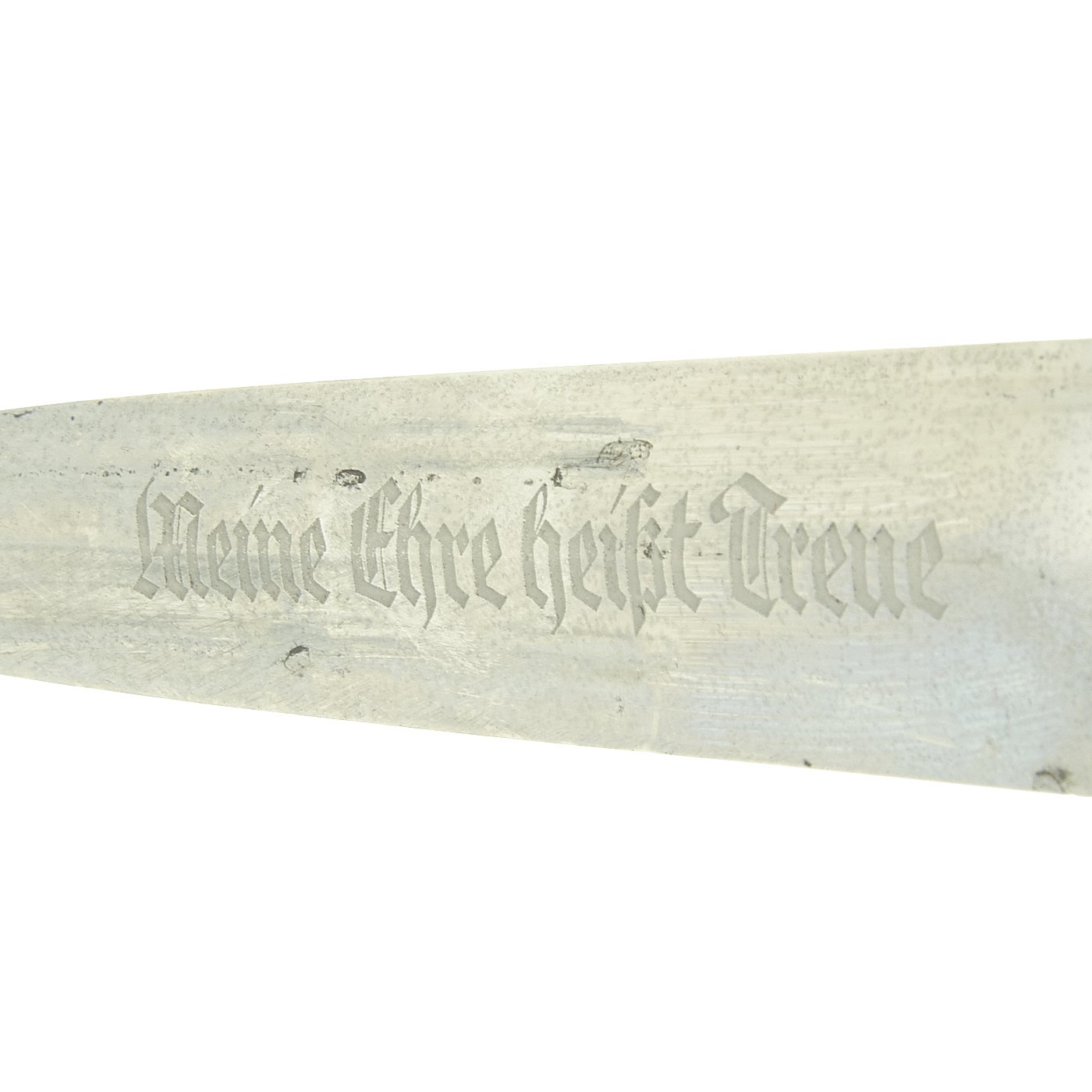 Original Item: Only One Available: The SS (Schutzstaffel - 'Protection Squadron') was originally formed in 1925, ostensibly to act as a small, loyal bodyguard unit to protect the Führer, Adolf AH. Under the direction of the Reichsführer-SS Heinrich Himmler, the SS grew to be the most ruthless and feared organization of the 20th century. They were the vanguard of NSDAPsm and eventually controlled nearly every function of German life and much of Occupied Europe. The SS dagger was introduced in 1933. Early on, members of the SS were awarded their daggers during a ceremony at the Feldherrnhalle Memorial in Munich. The annual ritual, charged with mysticism and meant to evoke the traditions of medieval Teutonic knights, was held on 9 November, the date of the unsuccessful Munich Putsch of 1923. Both officers and enlisted men wore the identical dagger until 1936. After this time, only enlisted men wore the M1933 dagger.