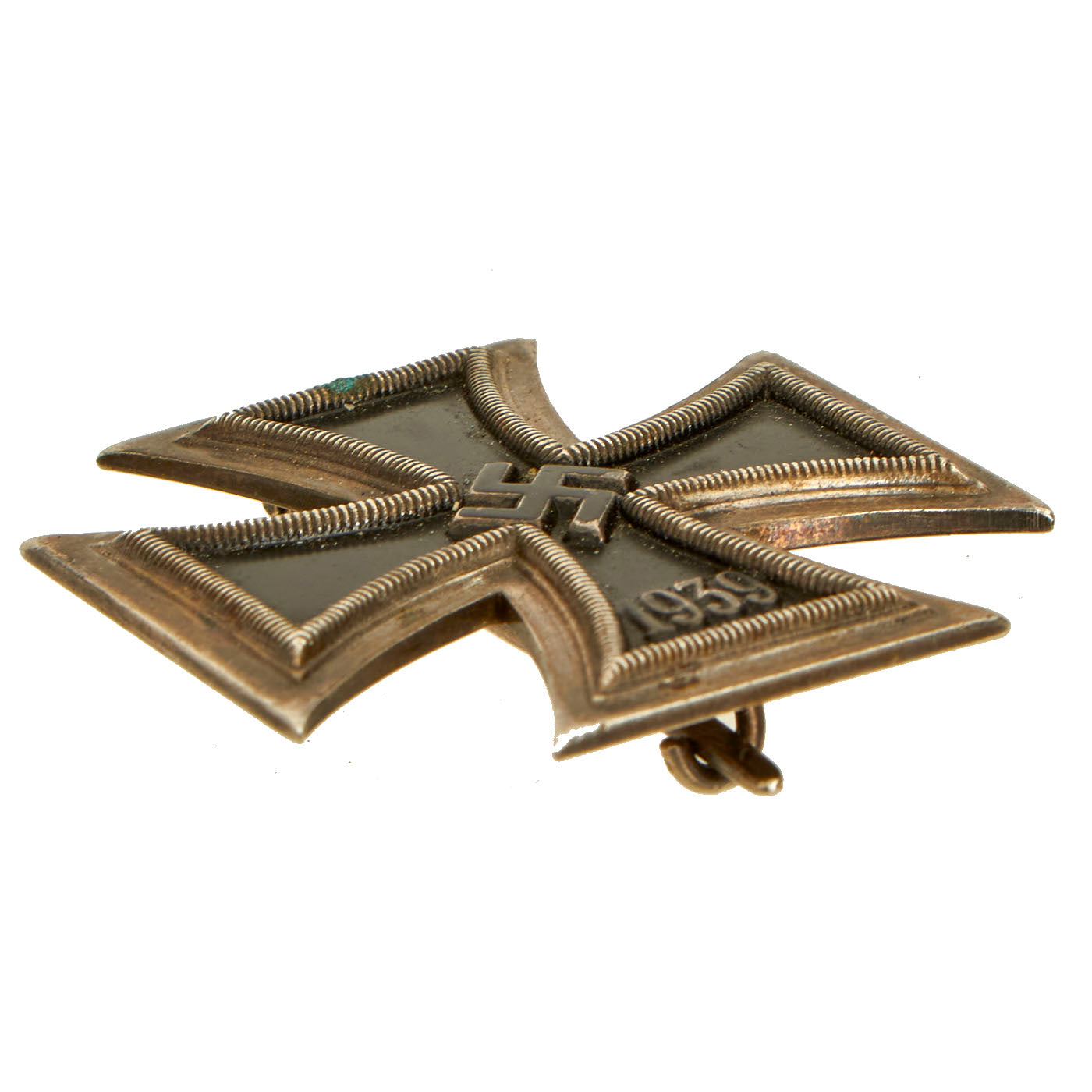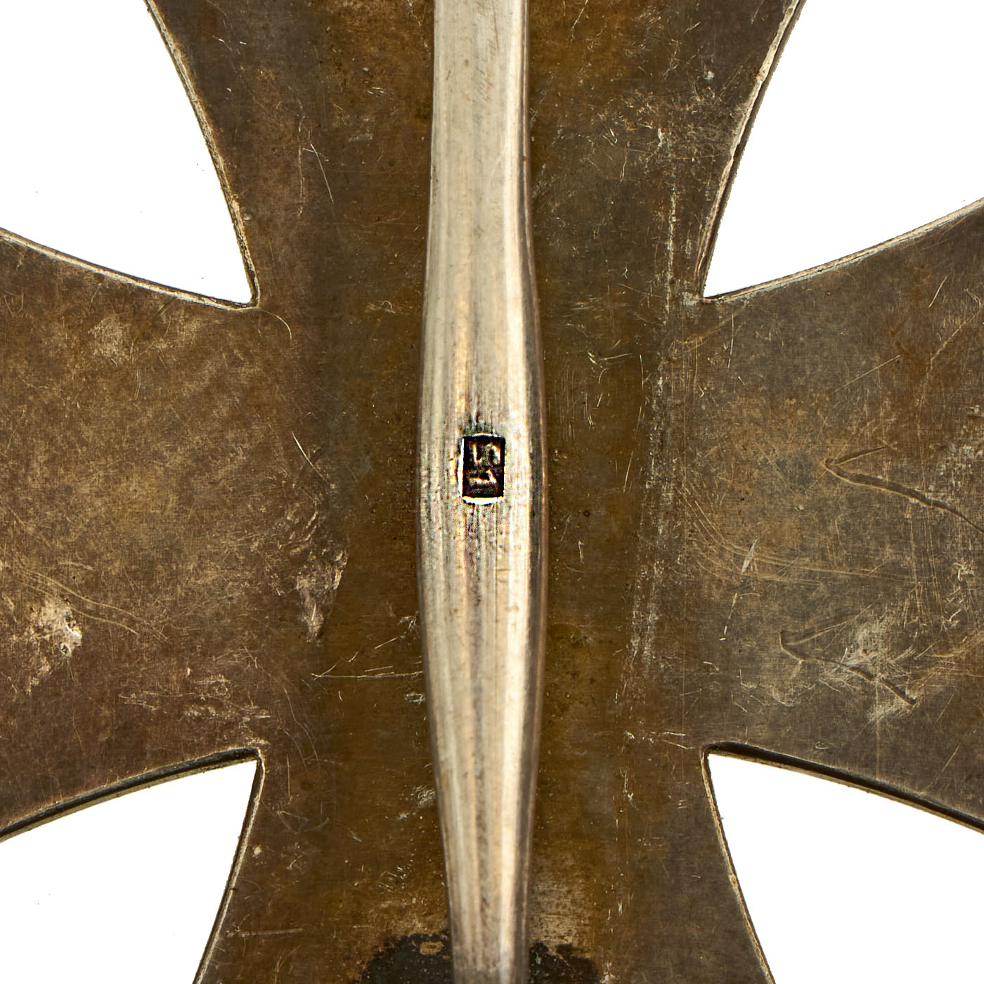 Original Items: Only One Available. This a very good example of a WWII Iron Cross First Class 1939, with a non-magnetic core, flat design, and straight pin attachment. It is marked with Präsidialkanzlei des Führers Lieferant (Presidential Chancellery Supplier) number 51 on the pin, which represents maker Eduard Görlach & Söhne of Gablonz a.d. Neisse, part of the so-called "Sudetenland" during WWII. Today it is known as Jablonec nad Nisou in the Czech Rebublic.