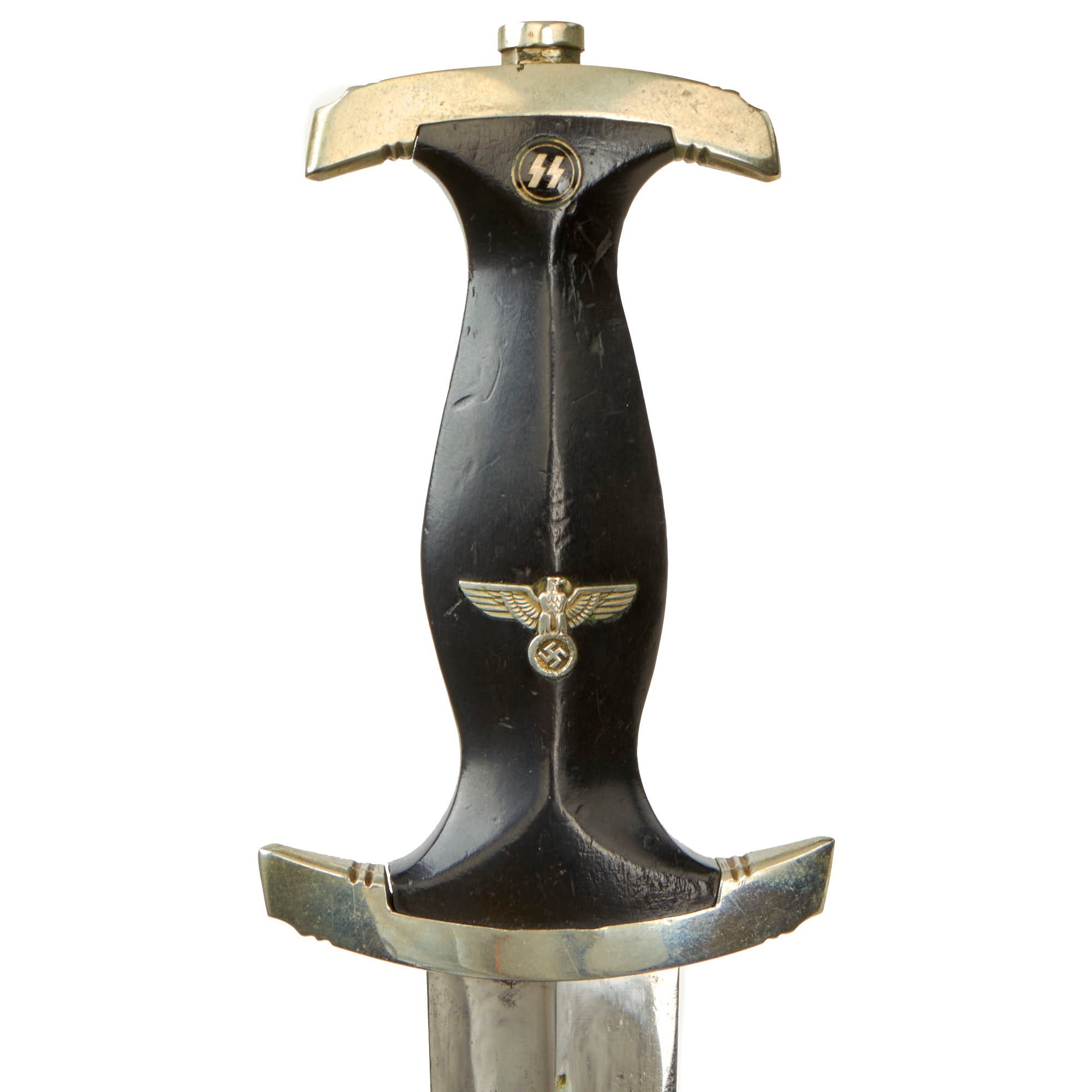 The SS (Schutzstaffel - 'Protection Squadron') was originally formed in 1925, ostensibly to act as a small, loyal bodyguard unit to protect the Führer, Adolf AH. Under the direction of the infamous Reichsführer-SS Heinrich Himmler, the SS grew to be the most ruthless and feared organization of the 20th century. They were the vanguard of NSDAP and eventually controlled nearly every function of German life and much of Occupied Europe. The SS dagger was introduced in 1933. Early on, members of the SS were awarded their daggers during a ceremony at the Feldherrnhalle Memorial in Munich. The annual ritual, charged with mysticism and meant to evoke the traditions of medieval Teutonic knights, was held on 9 November, the date of the unsuccessful Munich Putsch of 1923. Both officers and enlisted men wore the identical dagger until 1936. After this time, only enlisted men wore the M1933 dagger.