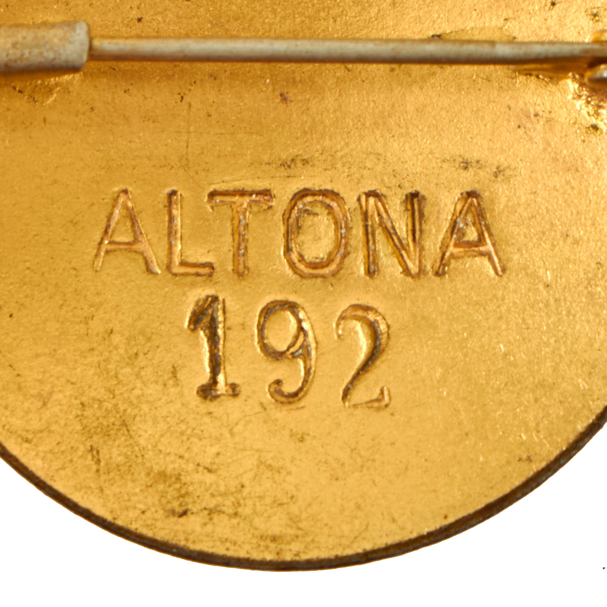 Under the pin, it is marked with ALTONA / 192, so the nurse that wore this was stationed in the borough of Altona outside of Hamburg in Northern Germany on the northern shore of the River Elbe Estuary, a very important commercial port.