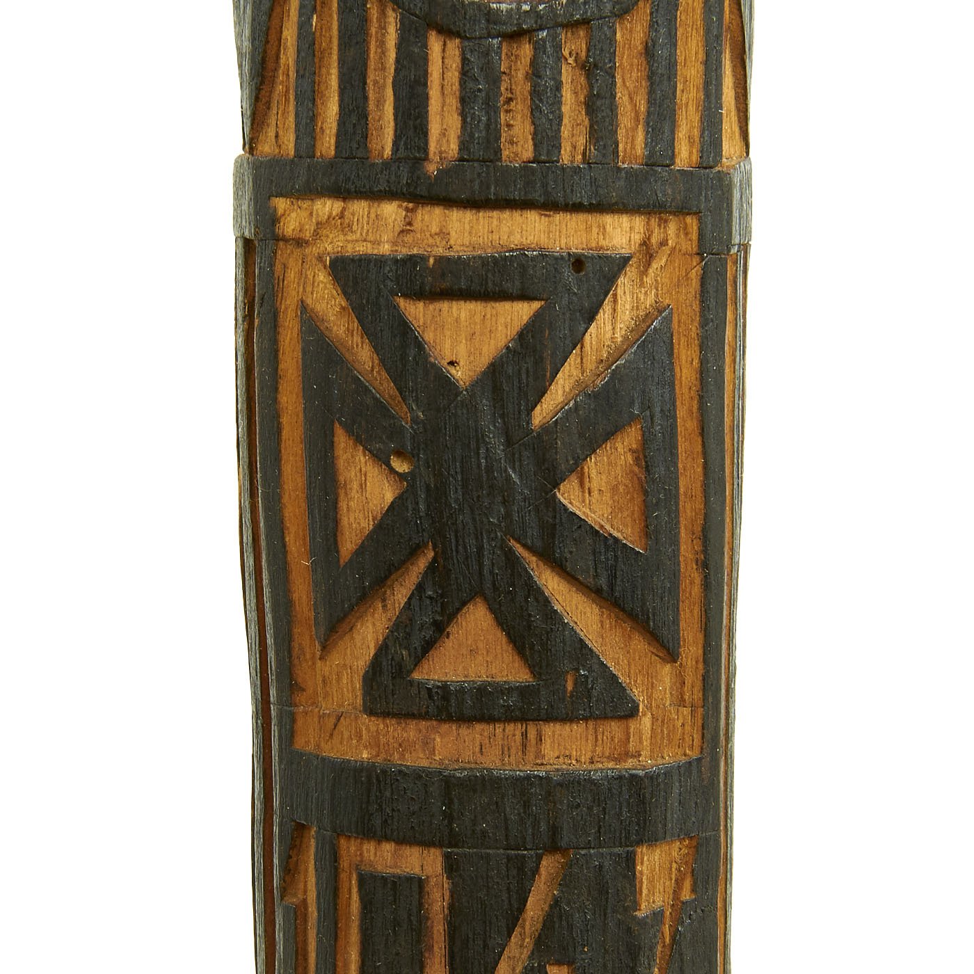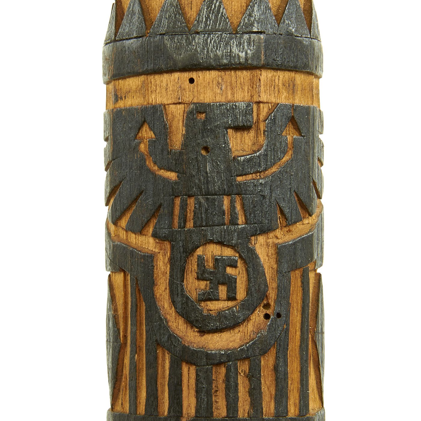 Original Item: One-of-a-kind. This is an authentic hand carved souvenir walking stick or Wolchow Stock, named after the Wolchow / Volkhov area of the eastern front. This was made by a German Army soldier serving on the Eastern Front during the long periods of inaction. The stick measures 38 1/2 inches tall with a circumference of 5 1/2 inches at its widest point. It features a German Heer Reichsadler Eagle on top of a Swas (hook cross) along with a German Tatzenkreuz ("Paw cross" or cross pattée), the symbol used in the Iron Cross and many other German awards and designs. The rest of the stick has lots of designs and other ornamentation.