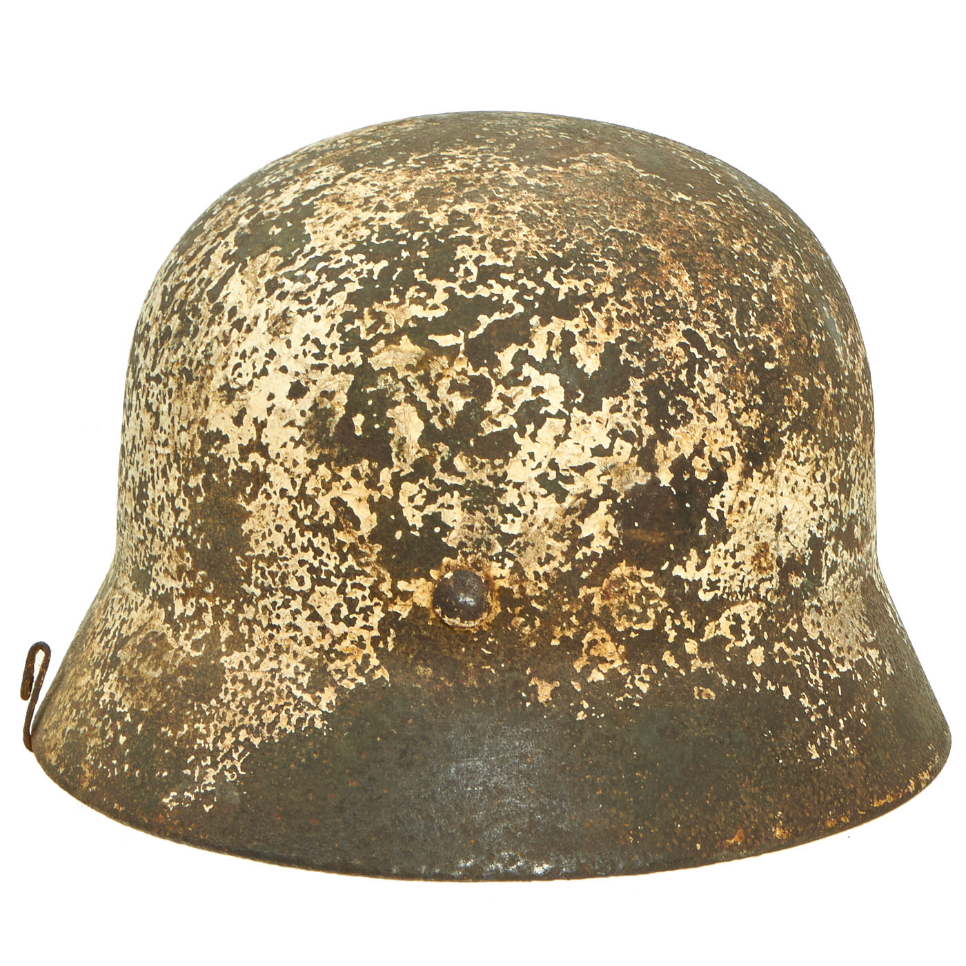 Even as a relic, this is still a very desirable and rare example of a WWII German Medic helmet with winter camouflage! Comes more than ready for display.