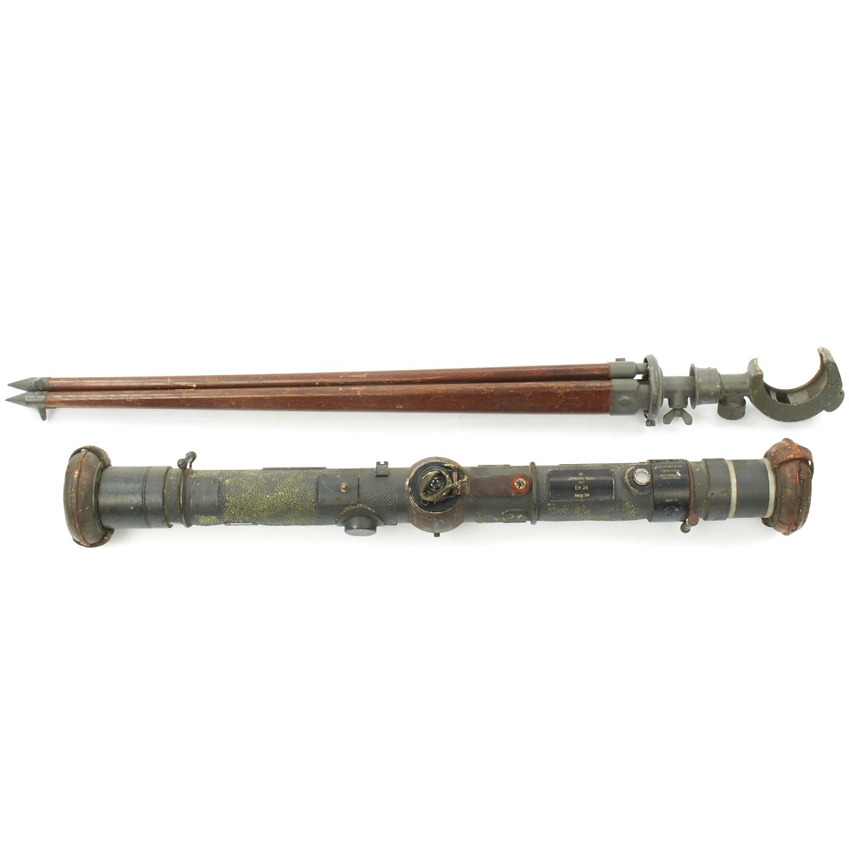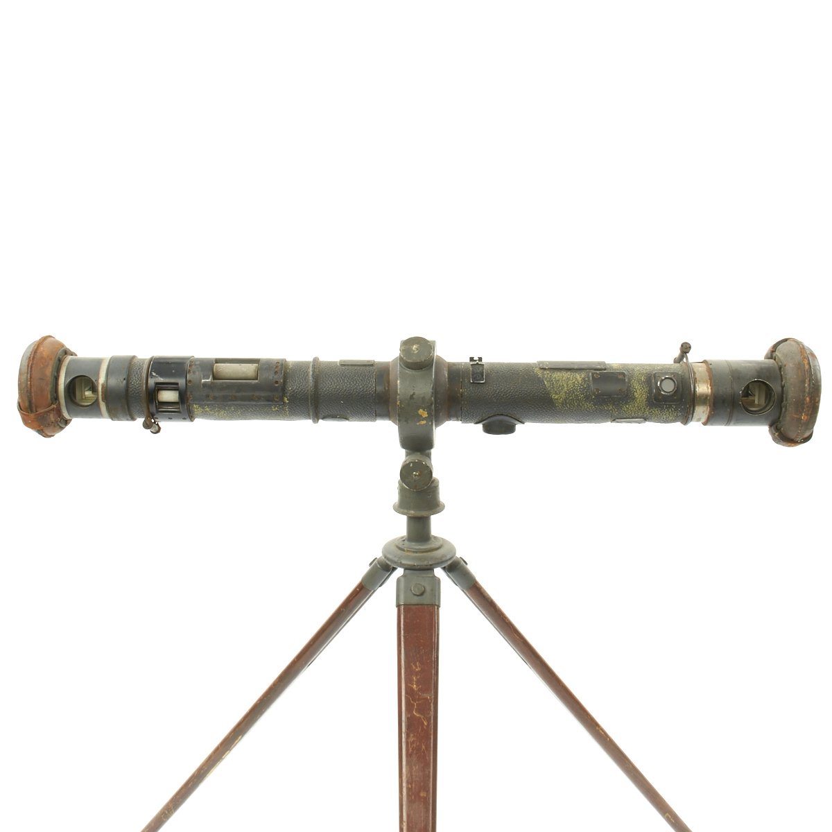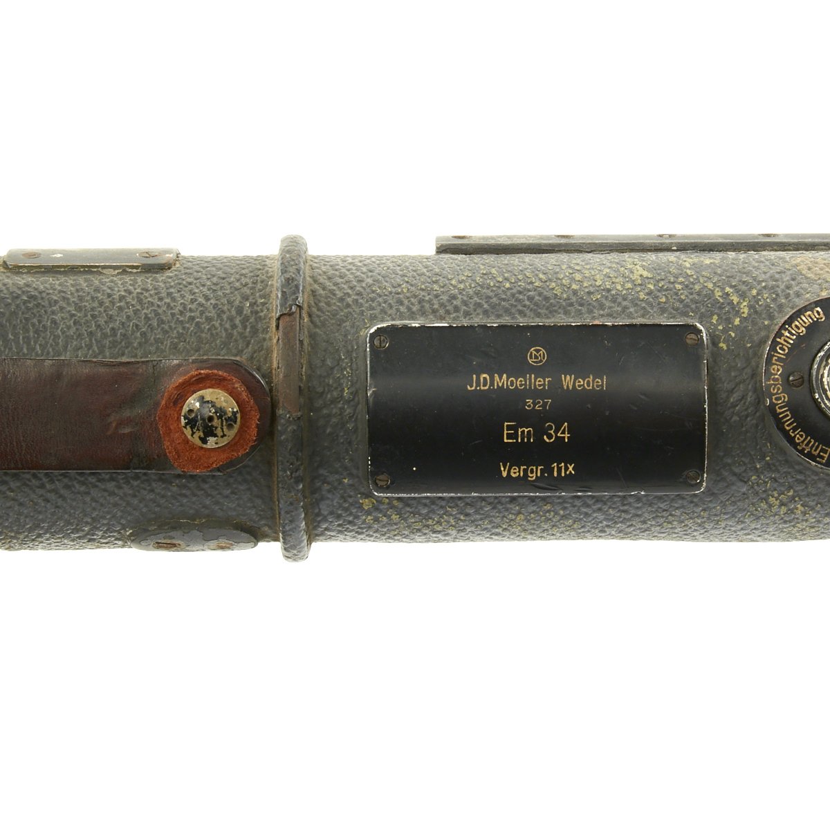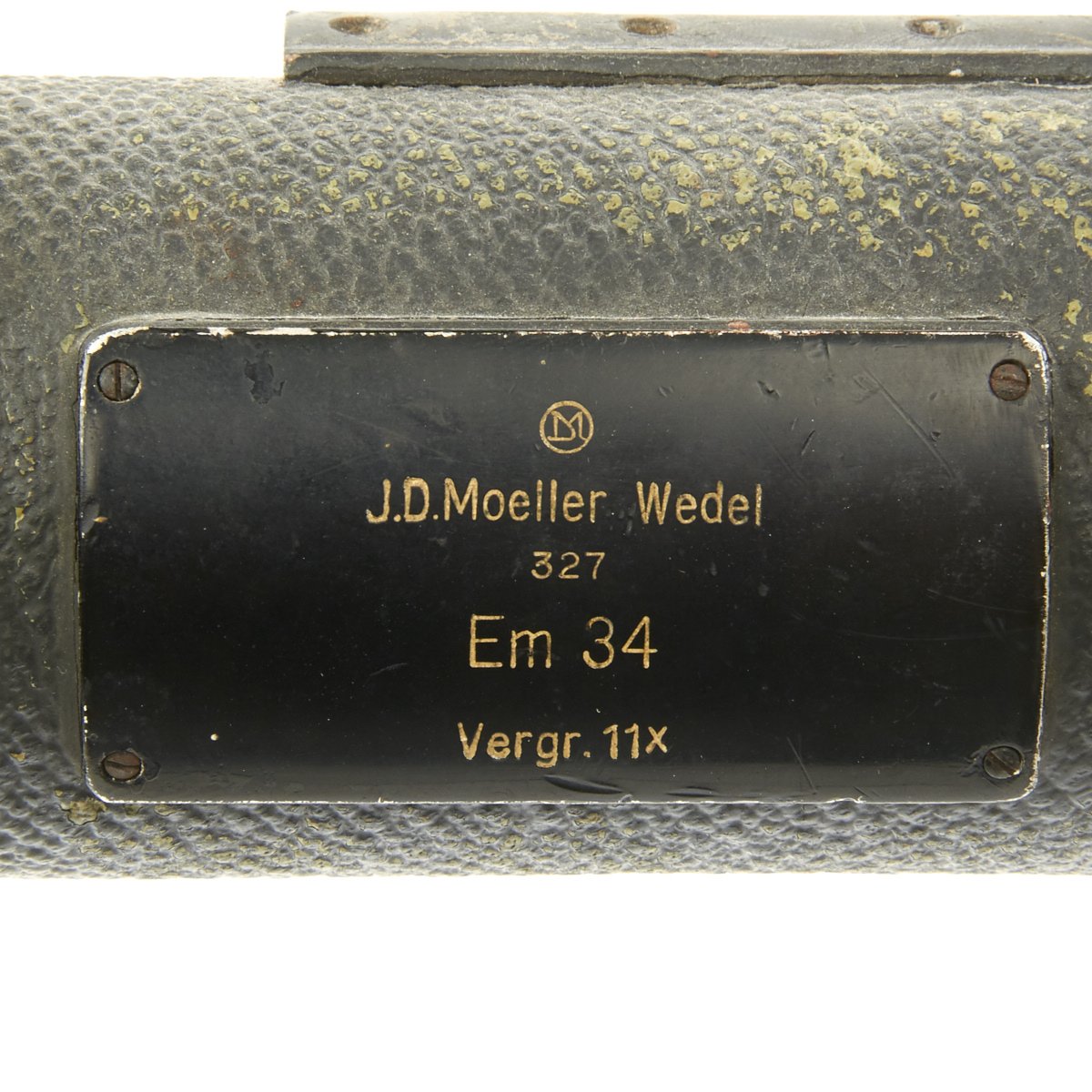 - Original Item: Only One Available. This is a World War Two German hand-held EM 34 Entfernungsmesser 3 range finder, finished in a textured grey paint with traces of light green camouflage. This example was manufactured by made J. D. Moller company of Wedel (Holstein). It was intended for deployment with mortars, artillery, and reconnaissance. If my interpretation is correct, magnification is 11 power. Mechanically, the adjusters operate smoothly. The unit appears to be complete and there are no missing screws. Optically, there is no damage to any of the glass elements, and clarity seems surprisingly good. Also included is a rare tripod with central mount. The optic tube measures 32 inches in overall length. Overall condition is very good with full German markings.