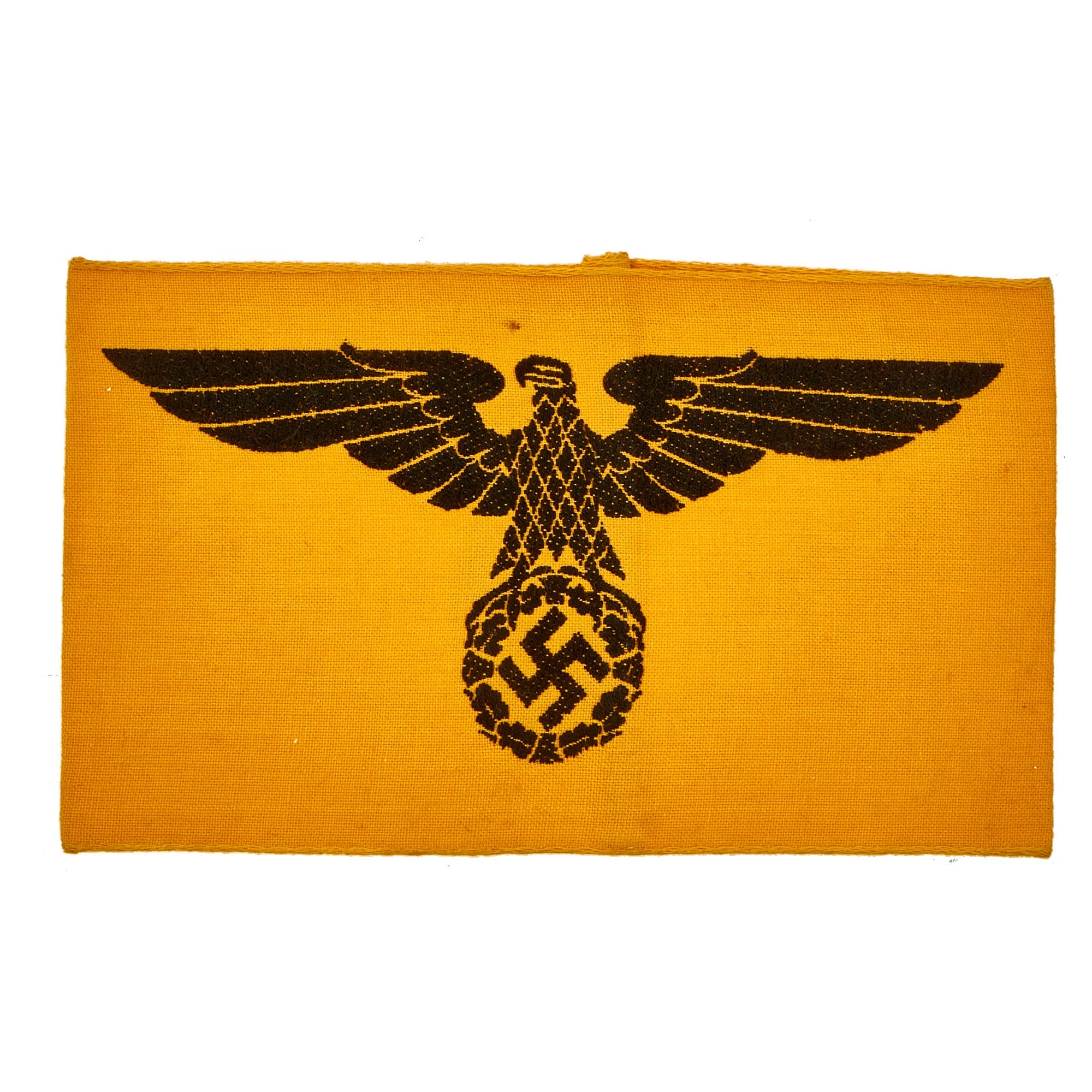 Original Item: Only One Available. The yellow German State Service Armband was worn by uniformed German personnel who were attached to the Armed Forces during WWII. Often, these were worn by men of the Reichsarbeitsdienst (State Labor Service) and Reichsbahn (State Train Service) who were operating with the German Army in the occupied countries.