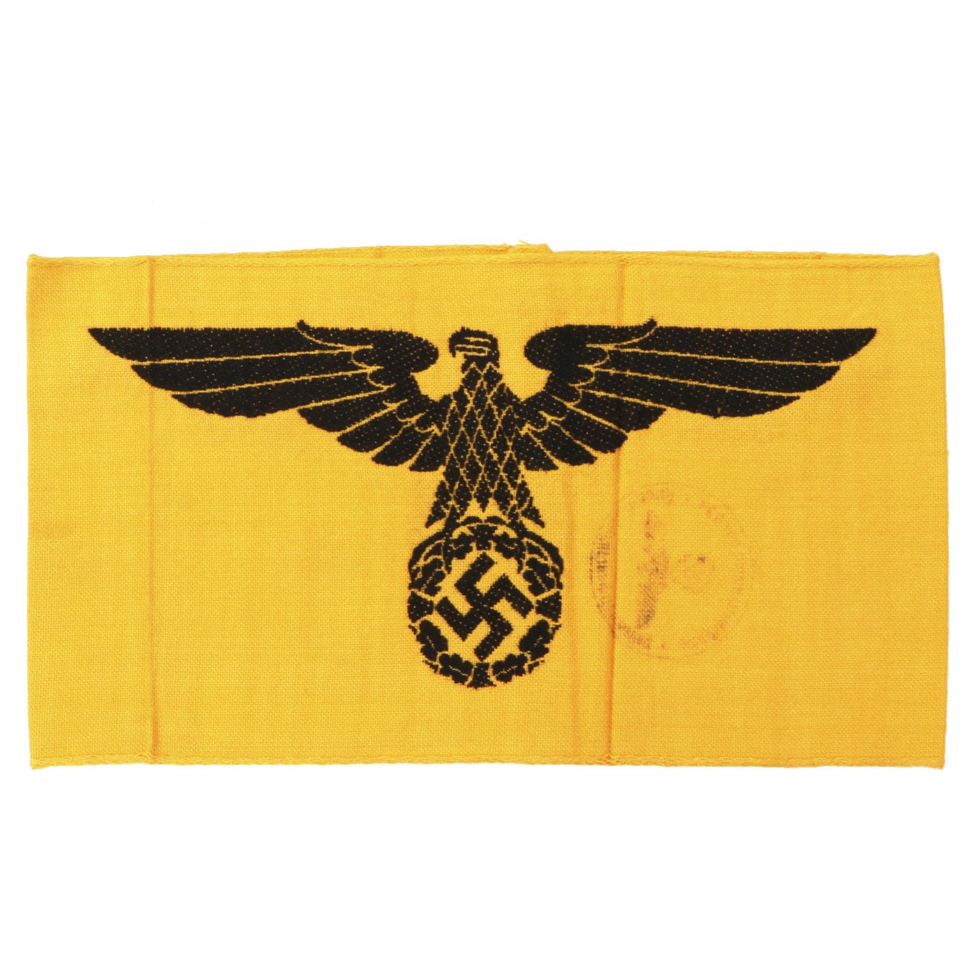 Nearly every military, civil, political and paramilitary organization in existence during the Third Reich used armbands. Armbands were worn on military and civilian uniforms and also on civilian clothes, from suit jackets to work clothing. They were used to denote membership in organizations, to indicate a specific role or function of the bearer, and as insignia of rank. Many organizations would change the design of their armbands over time, which added to the variety produced. These were manufactured in countless variations, ranging from simple printed bands to elaborately hand-embroidered pieces of the highest quality. Some NSDAP armbands were worn by all members of large organizations and were made by the millions. Others were intended for use at a specific time and place and were unique. Many types were made in very limited numbers. Some bore metal insignia or special identifiers that indicated the wearer’s rank, unit affiliation, or nationality. Armbands were sometimes but not always marked with ink stamps by the issuing authorities.