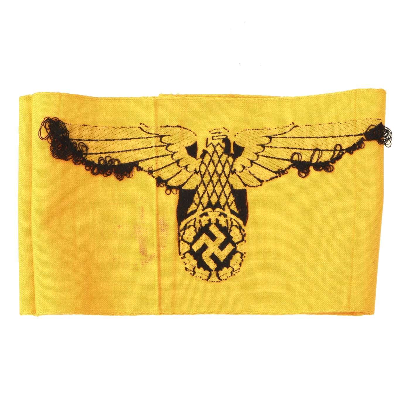 Original Item: Only One Available. The yellow German State Service Armband was worn by uniformed German personnel who were attached to the Armed Forces during WWII. Often, these were worn by men of the Reichsarbeitsdienst (State Labor Service) and Reichsbahn (State Train Service) who were operating with the German Army in the occupied countries.
