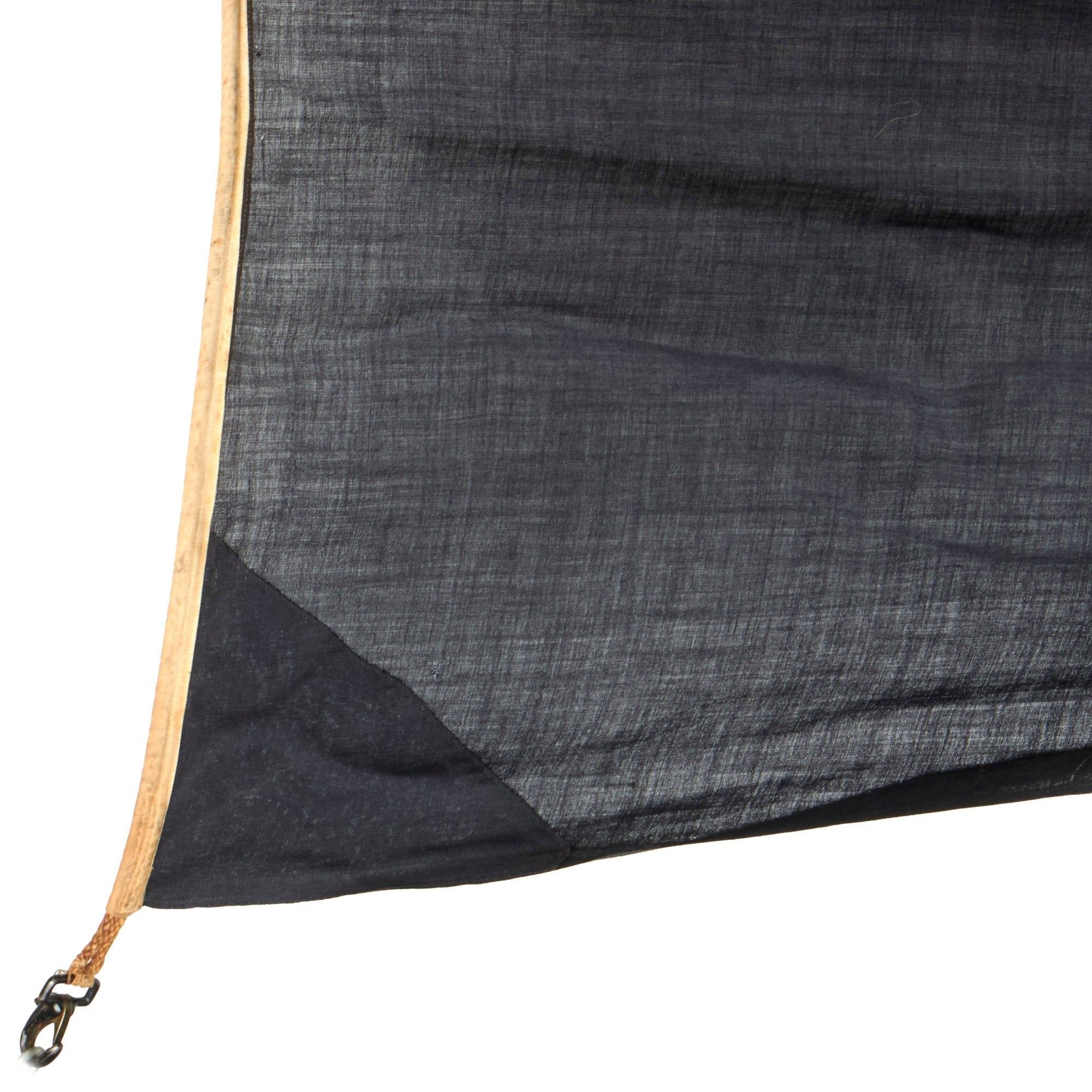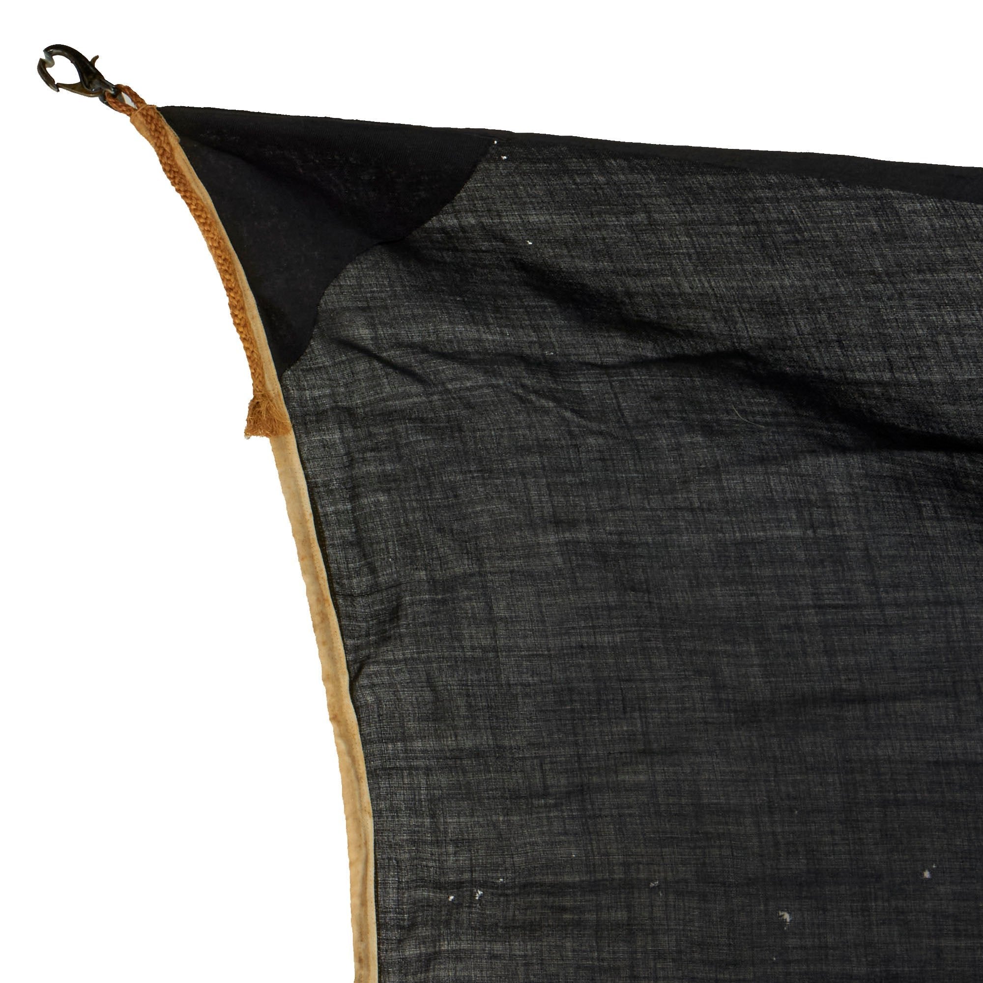 The flag has a long halyard attached to the header, with four metal hooks sewn on, two at the ends and two in the middle, meant to mount the flag. There are stitched reinforcements at the corners to better support the flag’s weight. From what we were told, this flag was captured by American soldiers of the 80th Infantry Division outside of a state building in Erfurt, Germany, alongside a state flag of similar size. However, we have absolutely no paperwork or physical provenance to support this. This does seem feasible, however, given the enormous size of the flag, and how difficult it would have been to transport something this large overseas.