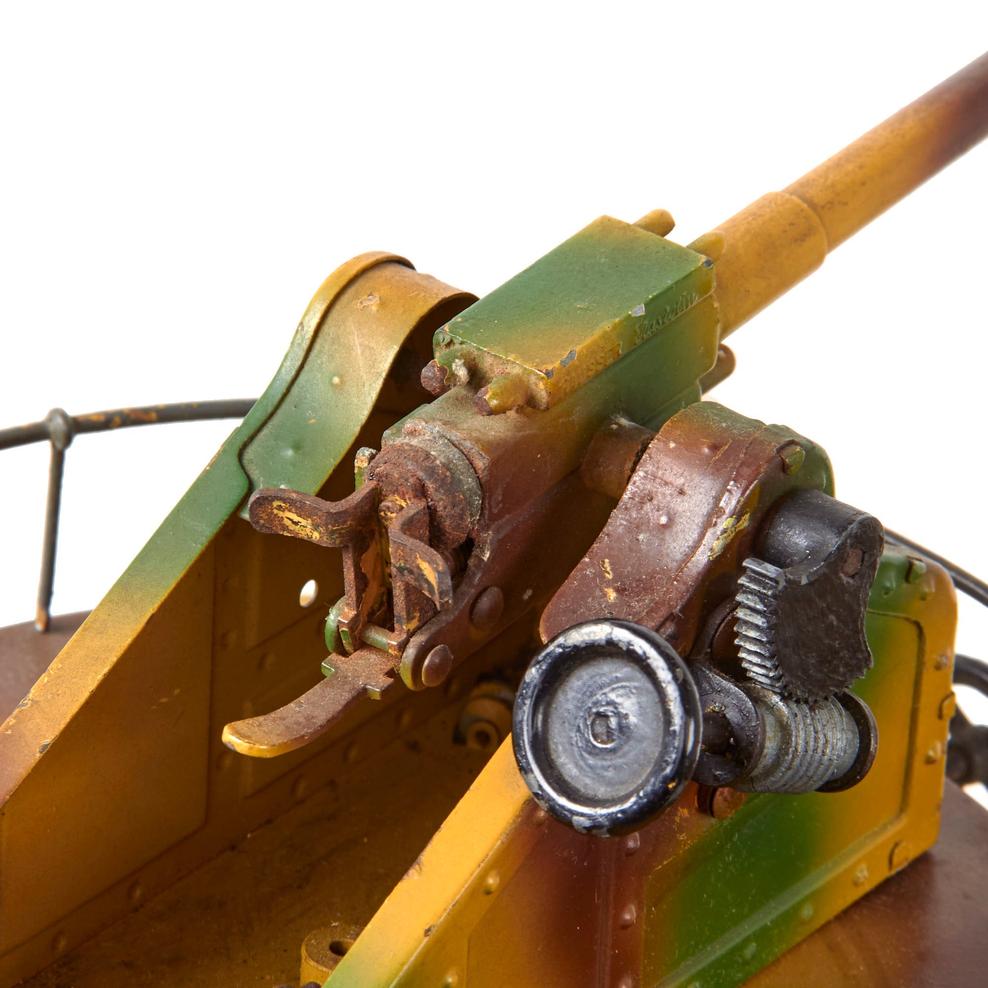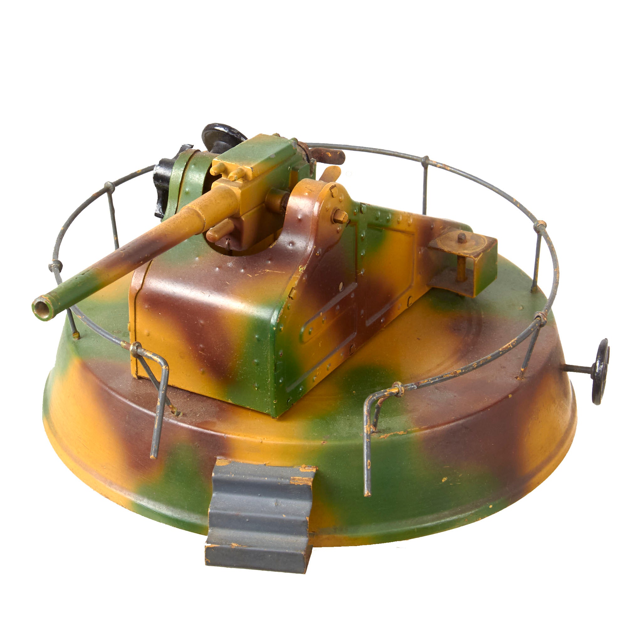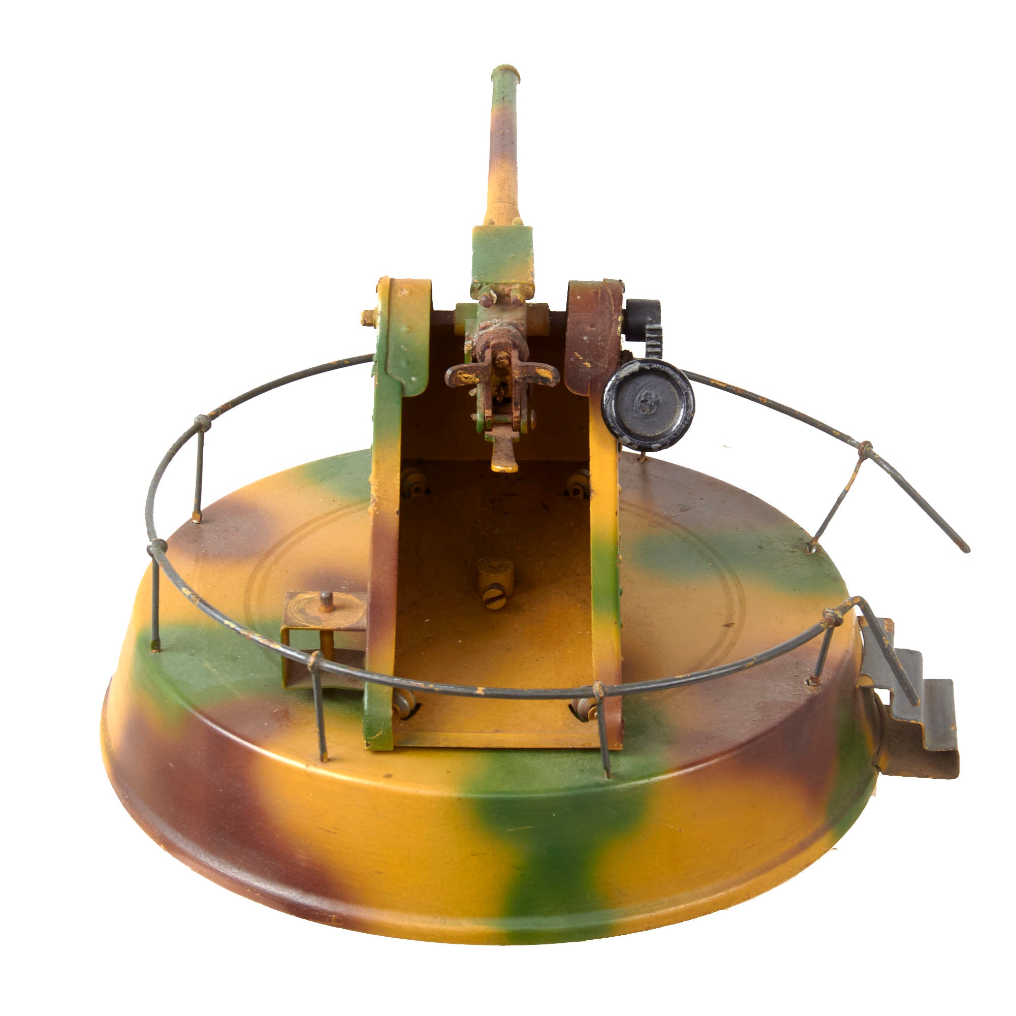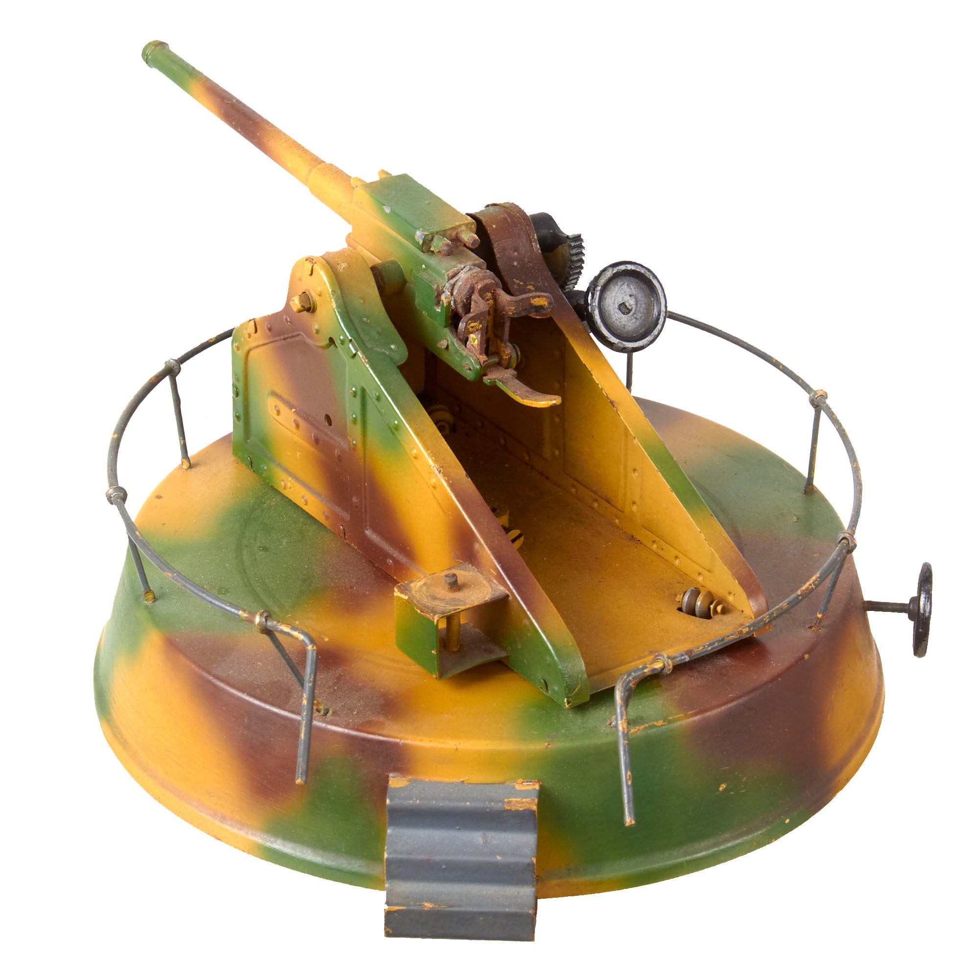 Original Items. Only One Set Available. This is a great set of toy fortress guns and searchlight pieces, which would make a lovely display. They are marked for manufacture by Hausser (O&M Haußer). They made a whole variety of these well made artillery pieces, and these examples have lovely lithograph camouflage paint jobs, which are well-retained.