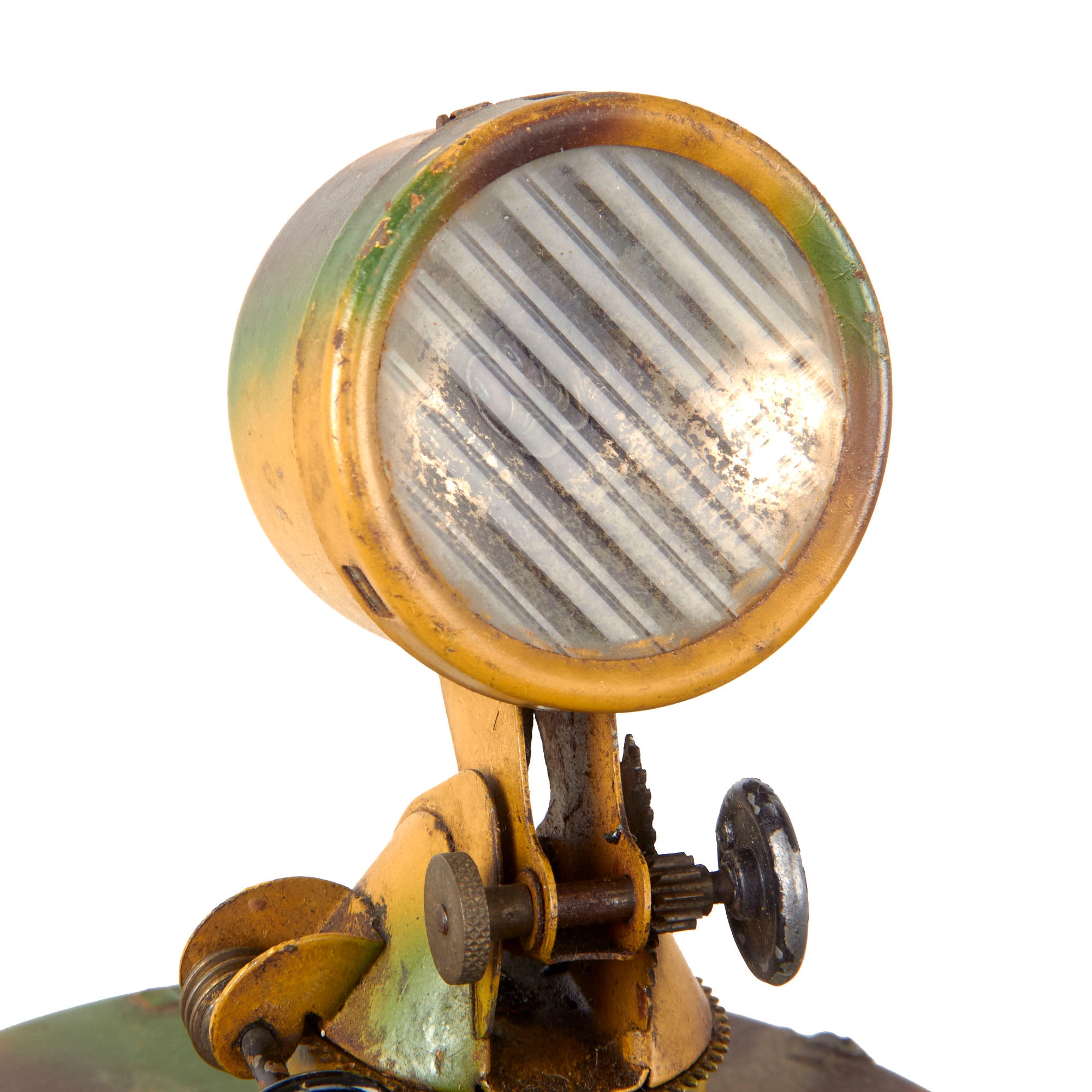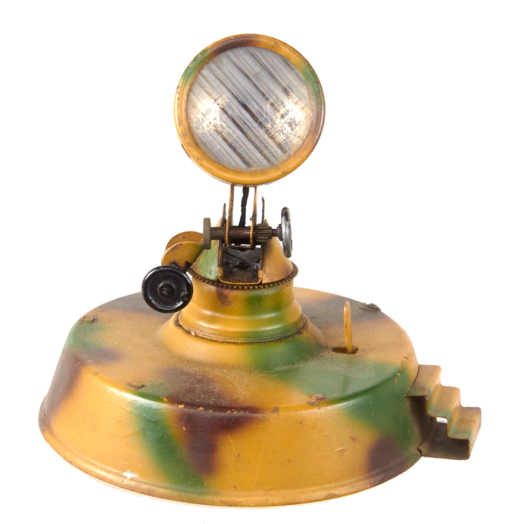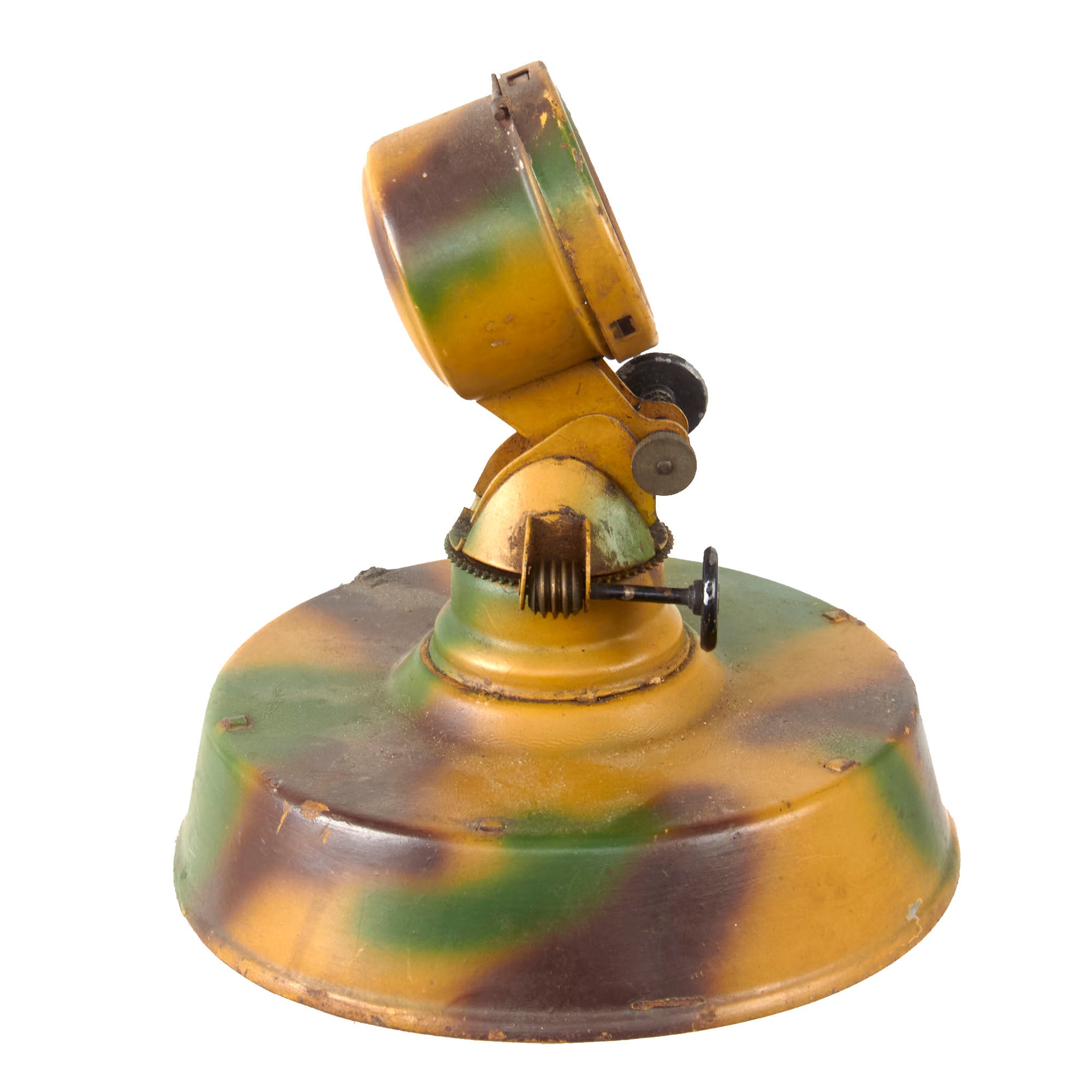 The fortress searchlight is in good shape however there is no longer a bulb inside, but the wiring beneath it appears in good order. We are not sure if it would work as intended. The camo is well-retained, and the set measures 6 ¾ x 6 x 5 ¾”.