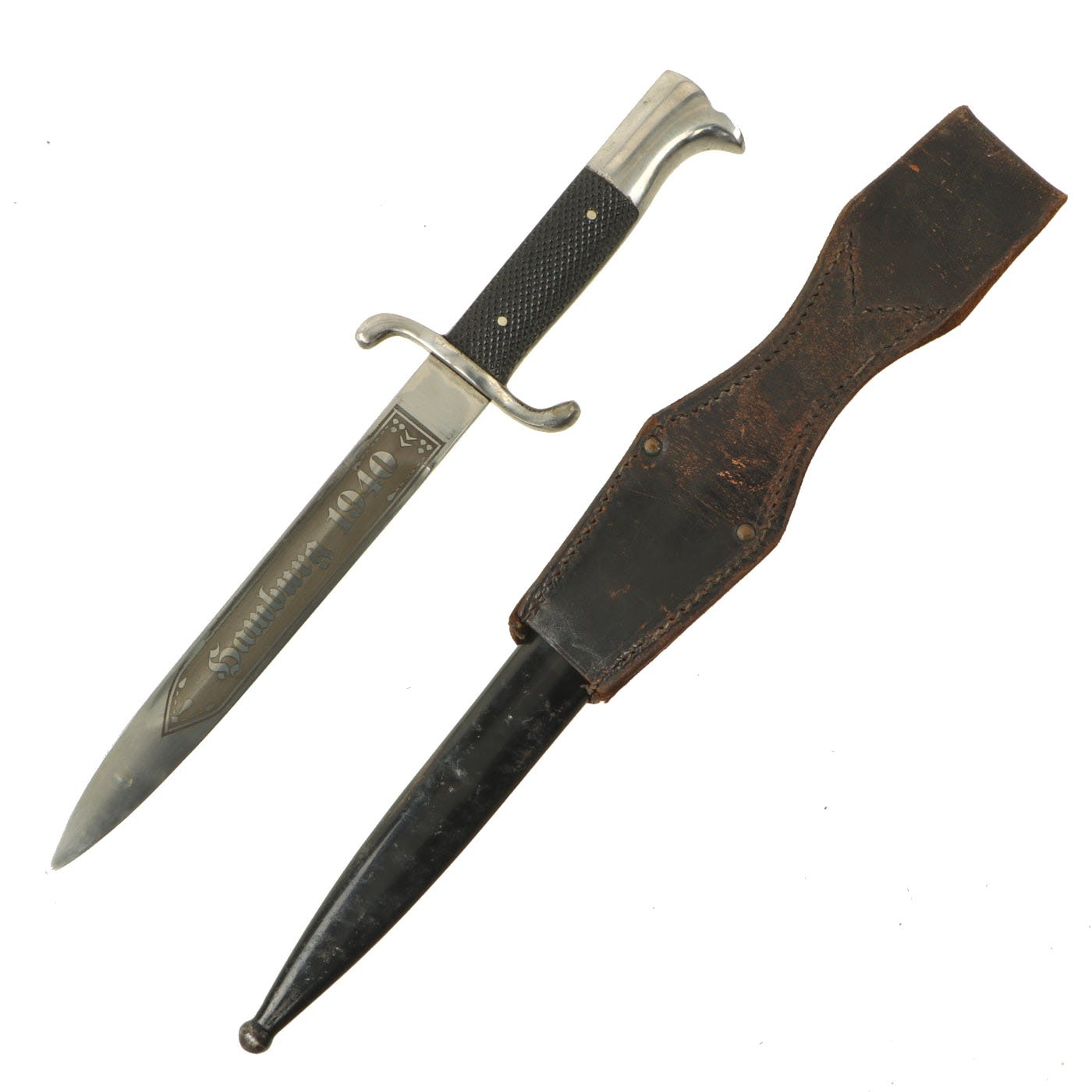 Apparently the owner was a member of the Fire Protection Police (Fire brigade) and was stationed in the city of Hamburg in 1940. The original leather blade buffer is unfortunately missing from the ricasso.