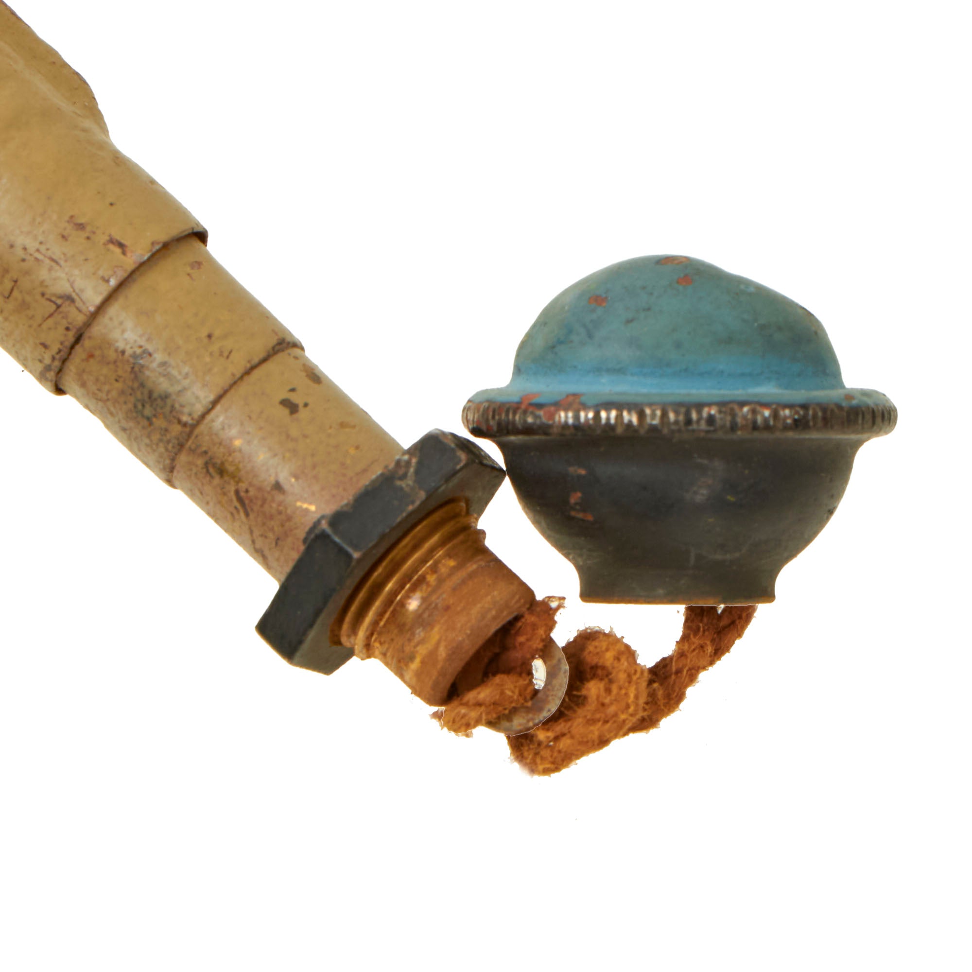 Condition is very good, with the tropical tan paint retained very well on the exterior. The grenade fuse assembly still can be removed from the body, and the interior shape charge cone and still be seen. The top of the fuse can also be unscrewed as well.