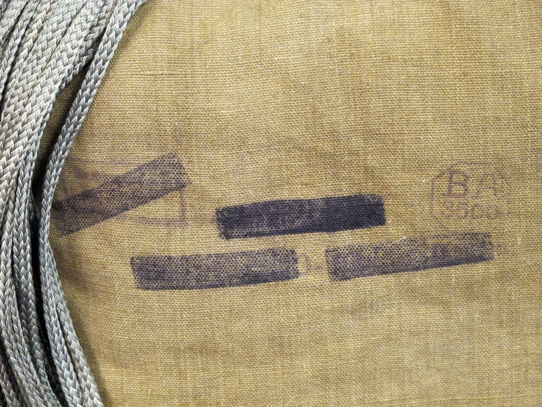 but a marking of B.A. 3500" remains. WE HAVE MADE NO ATTEMPT TO UNPACK THIS PARACHUTE!
