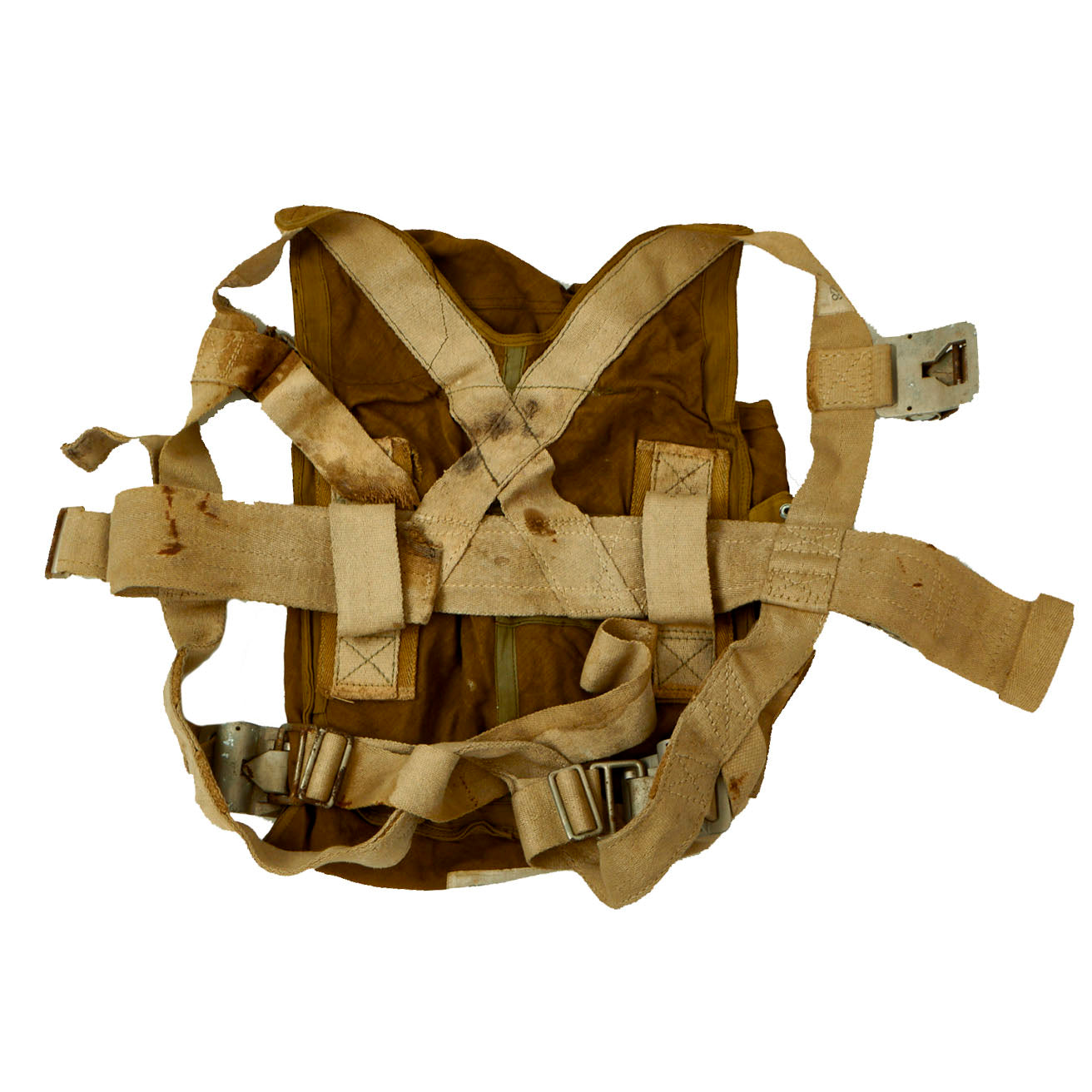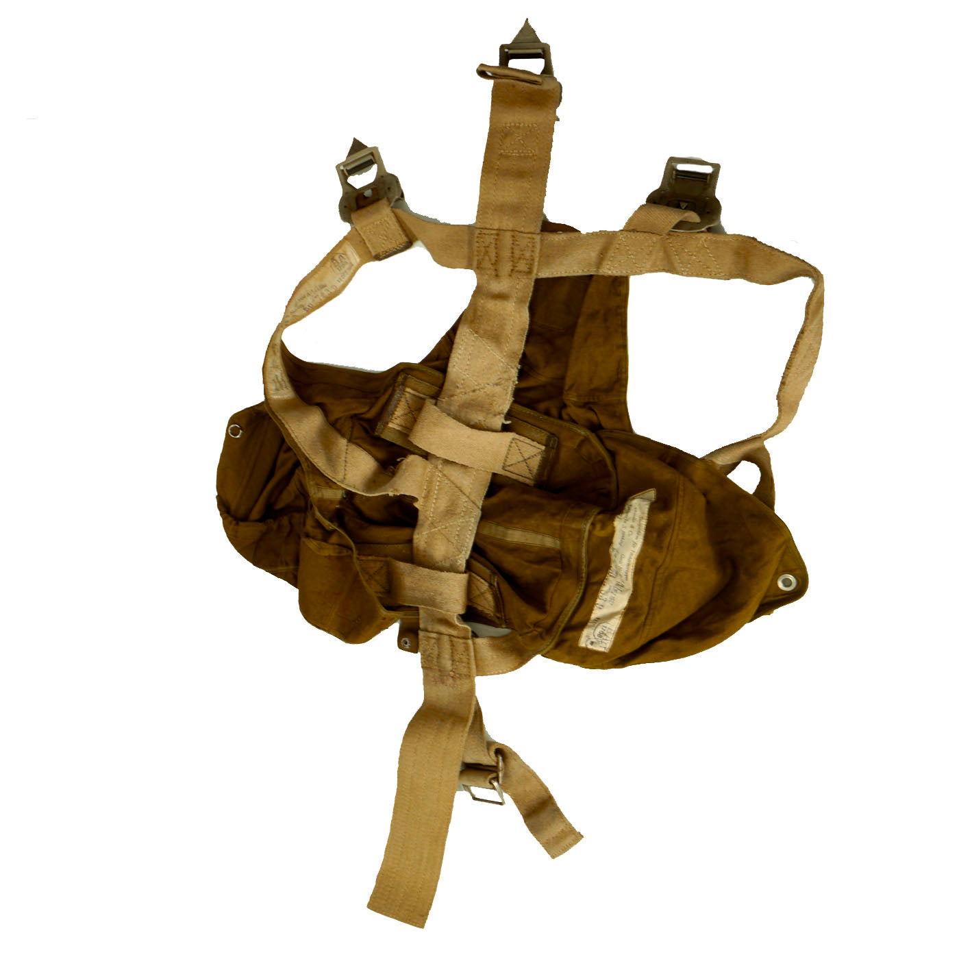 Type RZ20-Rückenfallschirm Zwangsauslösung 20 (backpack, compulsion opening parachute, type 20), has been in service since the beginning of 1941 replacing the RZ1 and RZ16. An almost completely different design of the harness, featuring 4 quick-release buckles on the hips, belt, and chest straps, which would allow the jumper to immediately cast it off and enter combat. The harness was otherwise the same basic configuration as the RZ1 & 16.