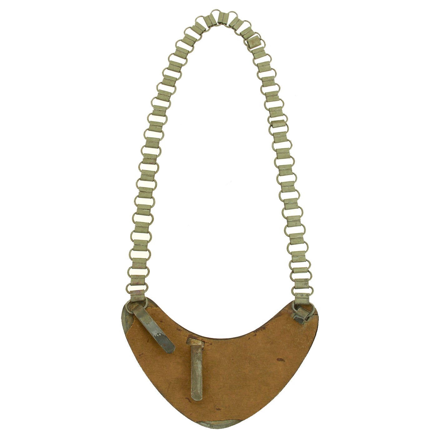 Original Items: Only One Available. Gorgets hold an interesting place in history, as they are a throw-back to the days of knights, when suits of armor included a neck protection device called a Gorget. They have been used since that time to identify membership or function in various military and police organizations, and Gorgets were thoroughly used during the Third Reich.