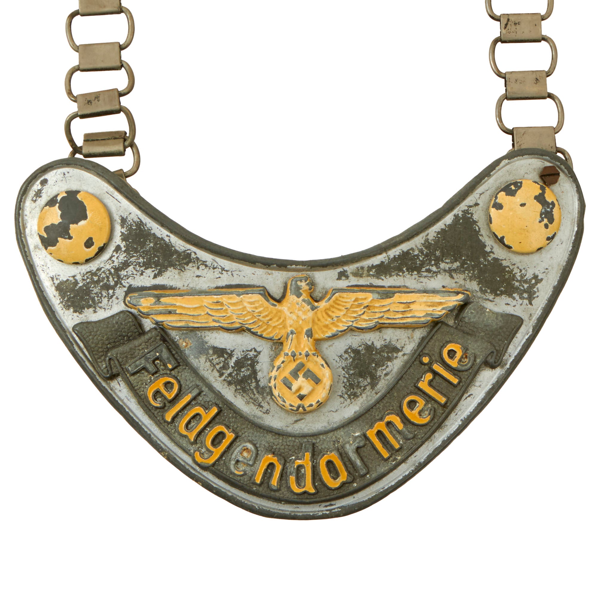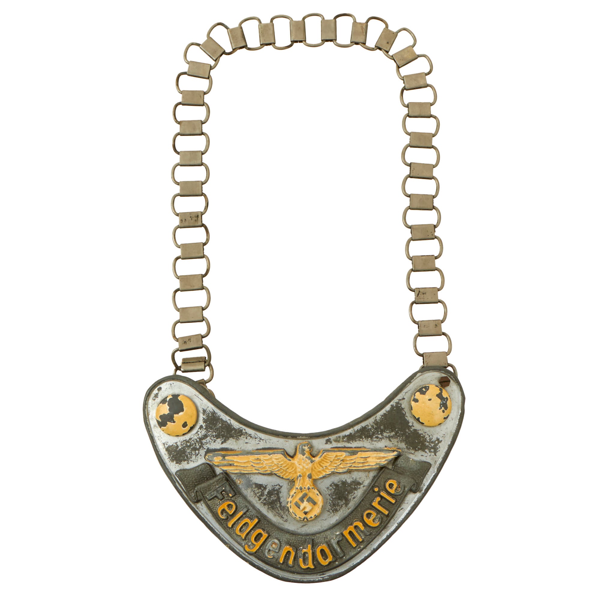 Original Items: Only One Available. Gorgets hold an interesting place in history, as they are a throw-back to the days of knights, when suits of armor included a neck protection device called a Gorget. They have been used since that time to identify membership or function in various military and police organizations, and Gorgets were thoroughly used during the Third Reich.