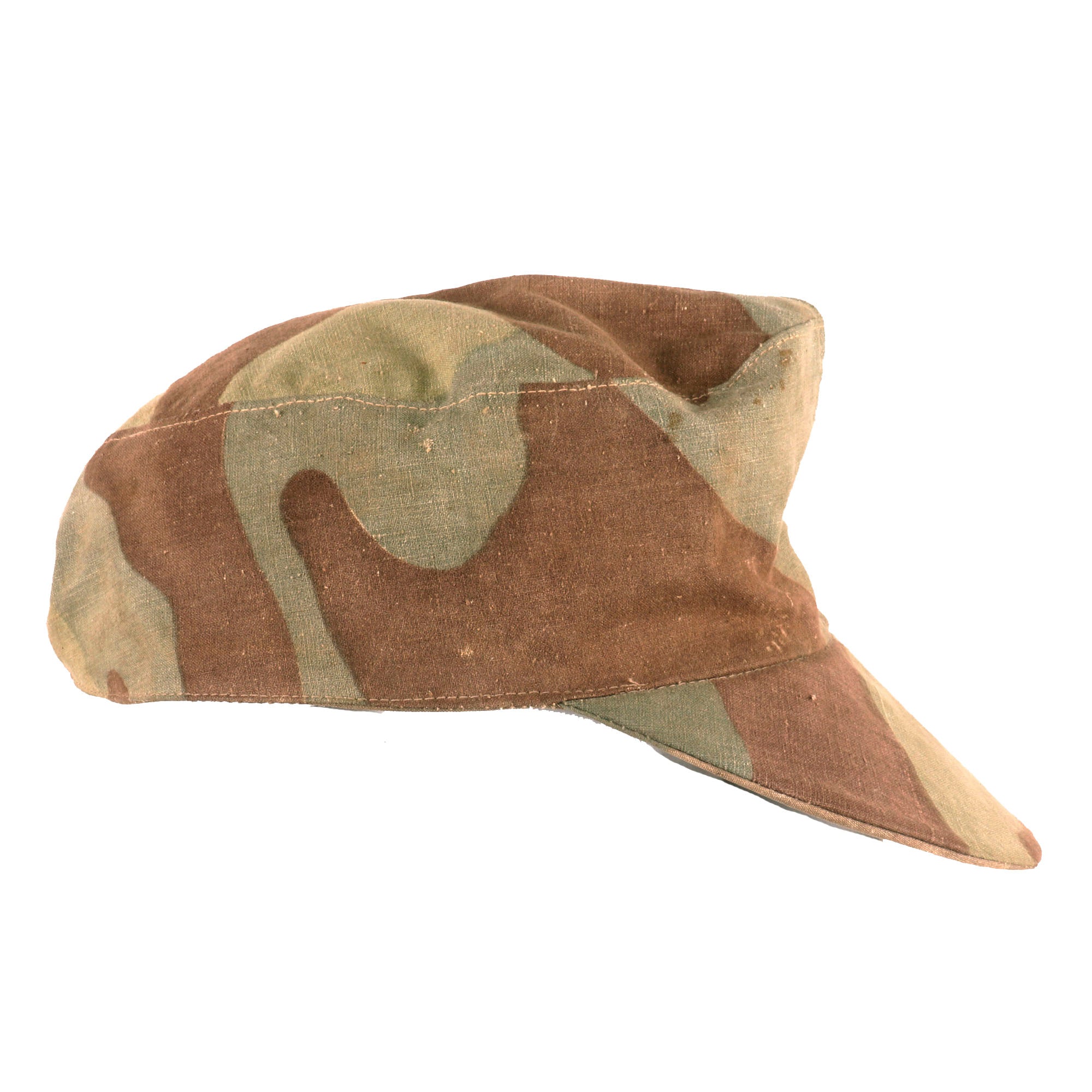 Original Item. Only One Available. This is a very nice "field made" German WWII cap, made using "captured" Italian M29 camo material. This allowed a much better camouflage profile than the standard tan or field gray color. Combined with the comfort of a field cap, they were relatively popular, and many were made in field workshops, so they were produced in countless styles.