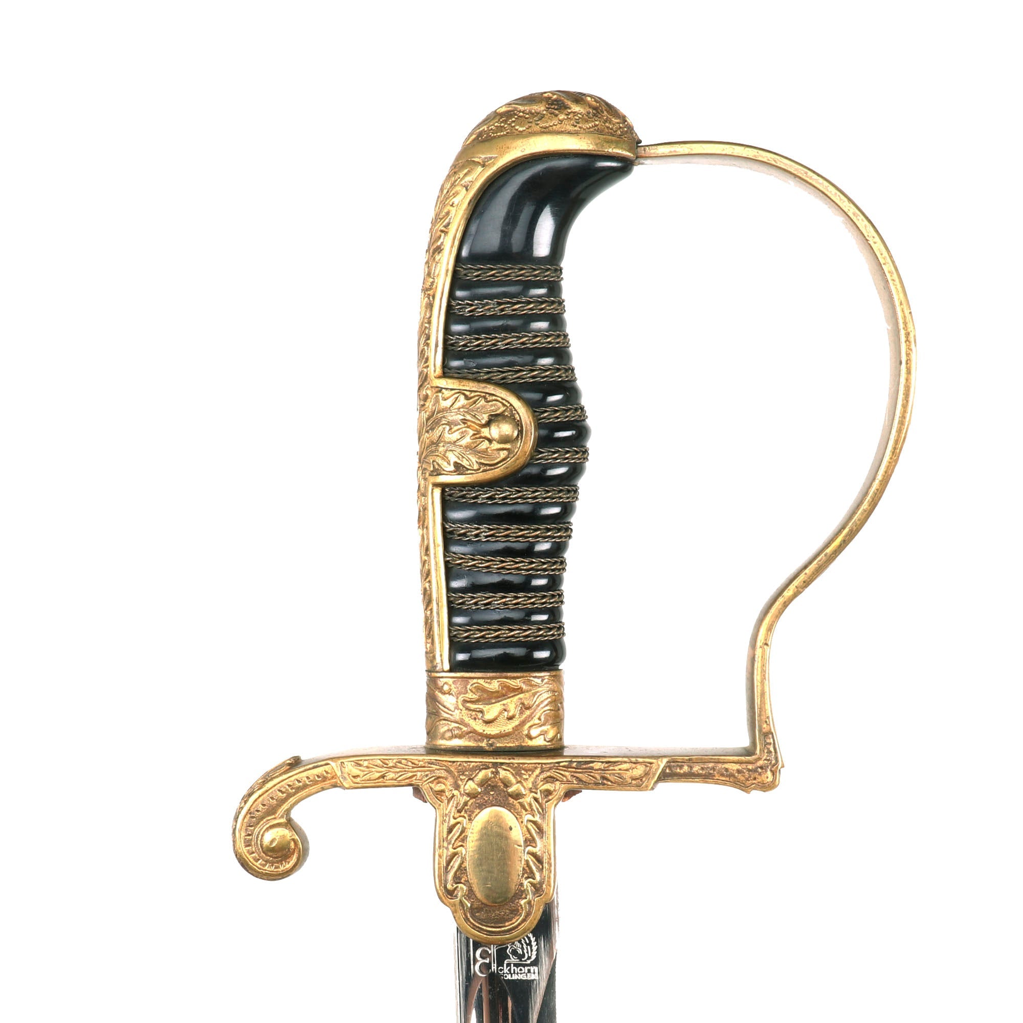 Original Item: Only One Available. This is a fantastic example of the "Wrangel" variation of the popular Feldherrn Serie (Commander Series) of German Army Officer's swords by famed firm Carl Eickhorn of Solingen, the legendary "City of Blades" in western Germany. Named after famous figures in German history, many of which were high ranking military officers, the series has a total of nine different variations. These are usually referred to as the Feldmarschall (Field Marshal) series by collectors, even though only four of the nine actually held that rank. These included the Wrangel, Scharnhorst, Freiherr vom Stein, Roon, Derfflinger, Zieten, and Blücher patterns. The Prinz Eugen and Lützow patterns were added in 1938 and 1939, which are the rarest patterns to find.