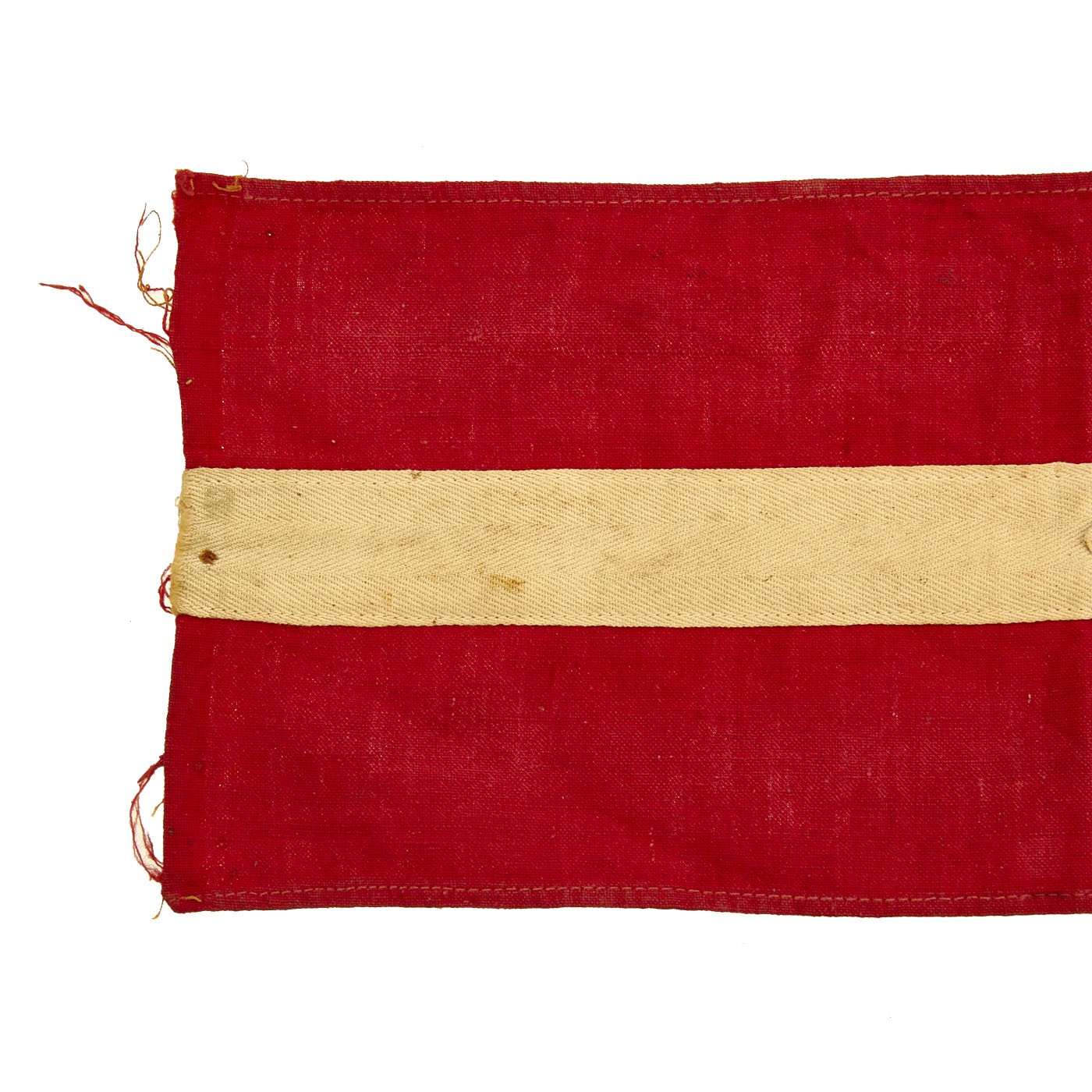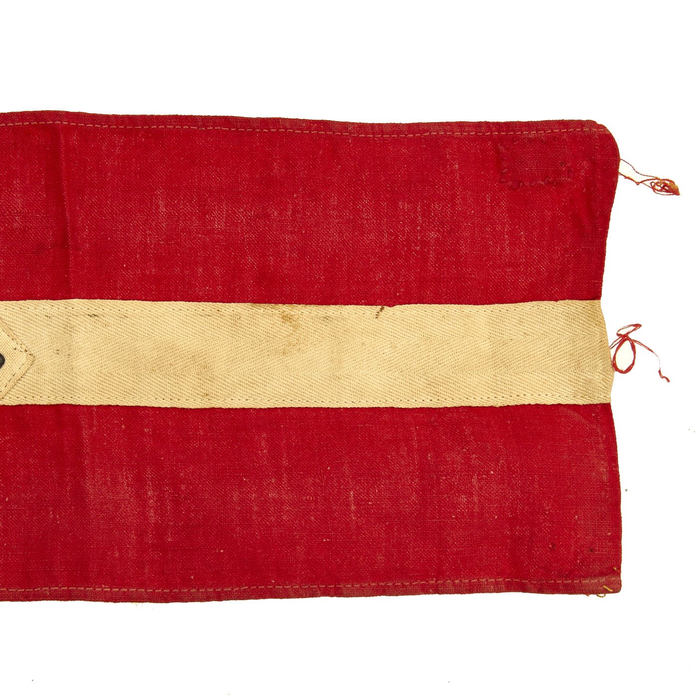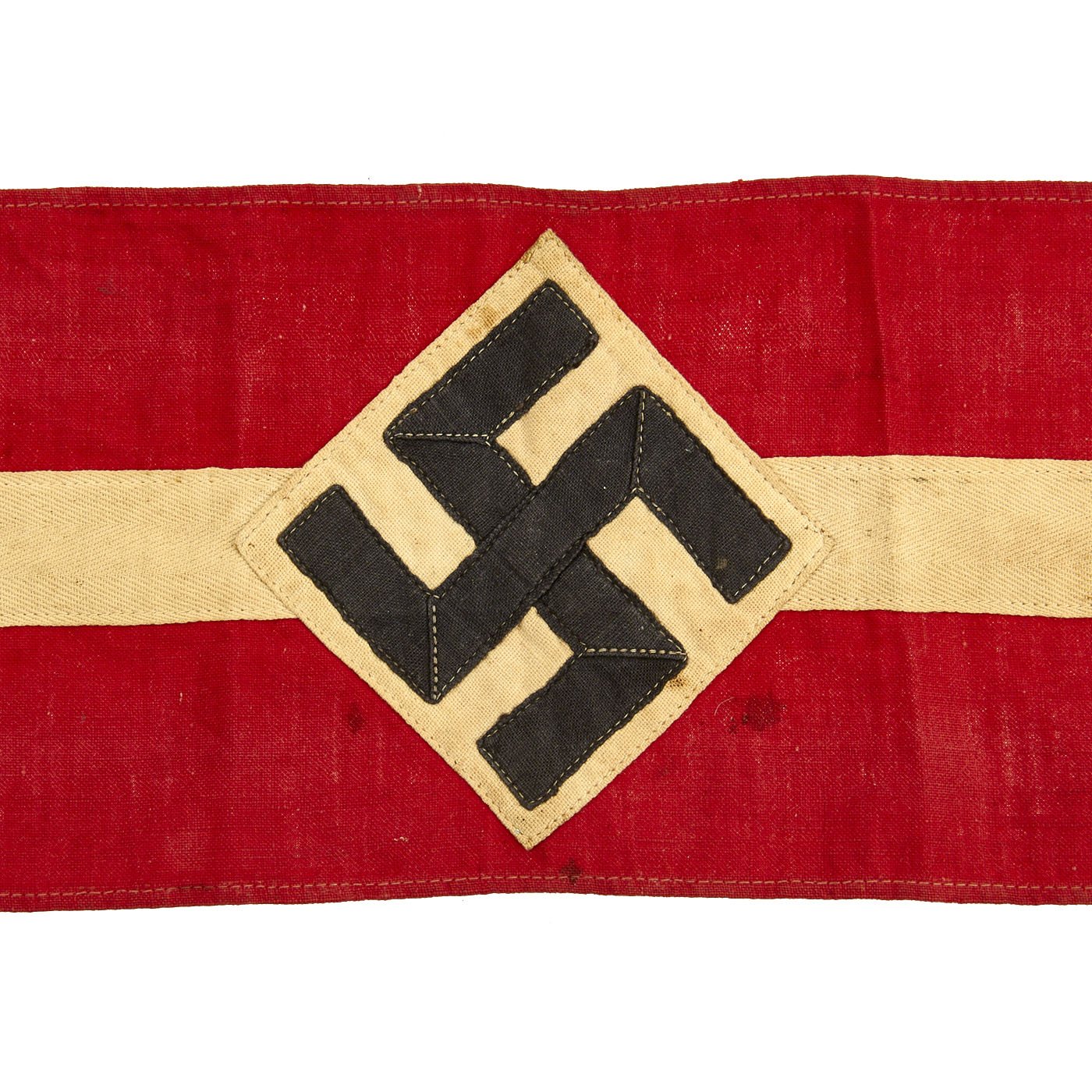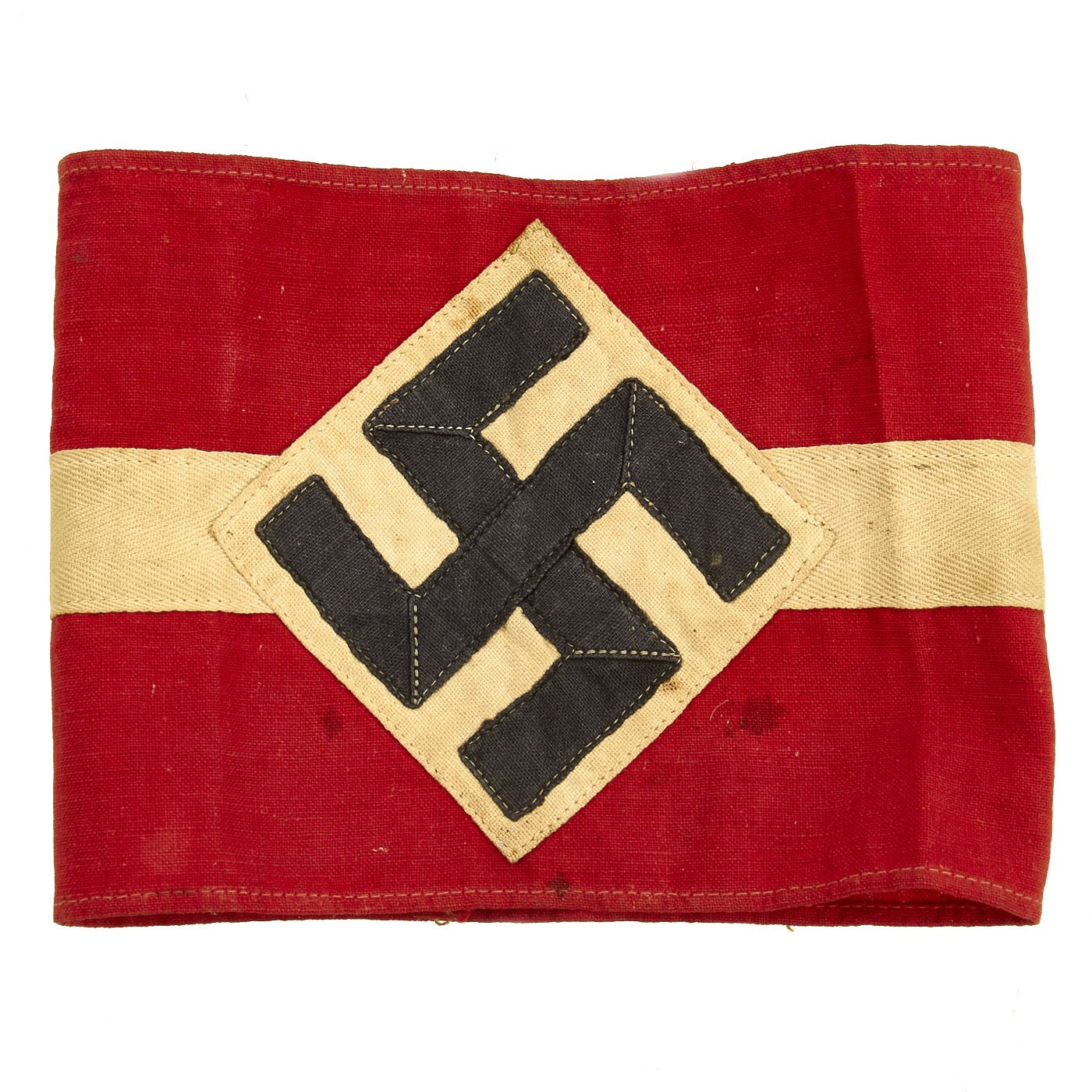 The band is of multi-piece construction, red with a white center stripe, with the usual applied HJ diamond with a sewn-on Swas (hook cross). A very nice HJ Armband, especially if you like examples that have the battle-hardened look provided from a bit of period wear. Ready to display!