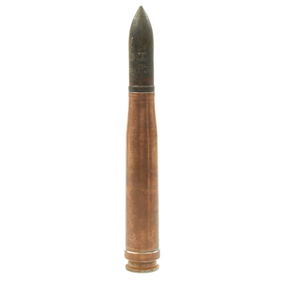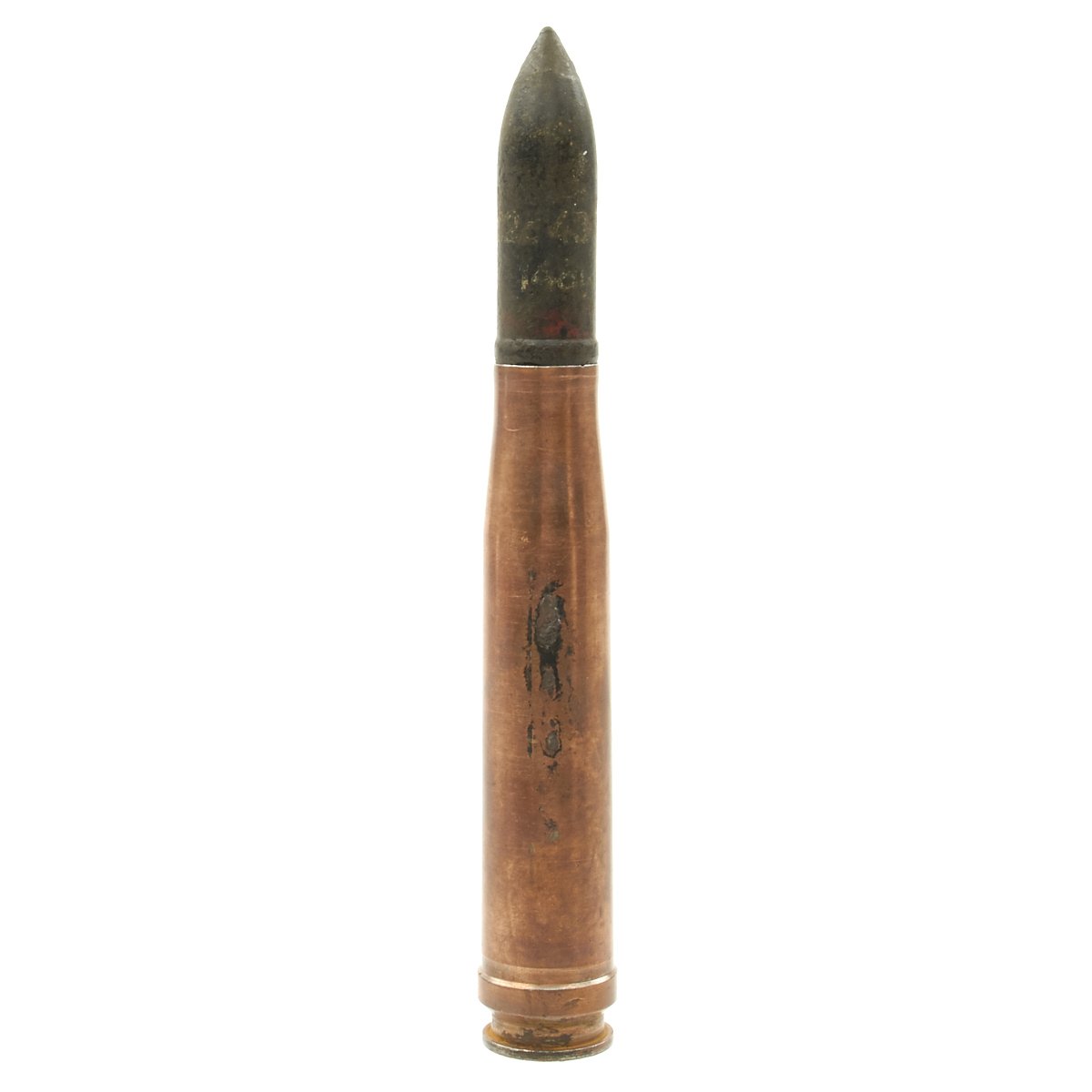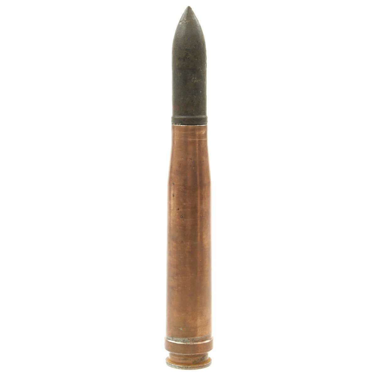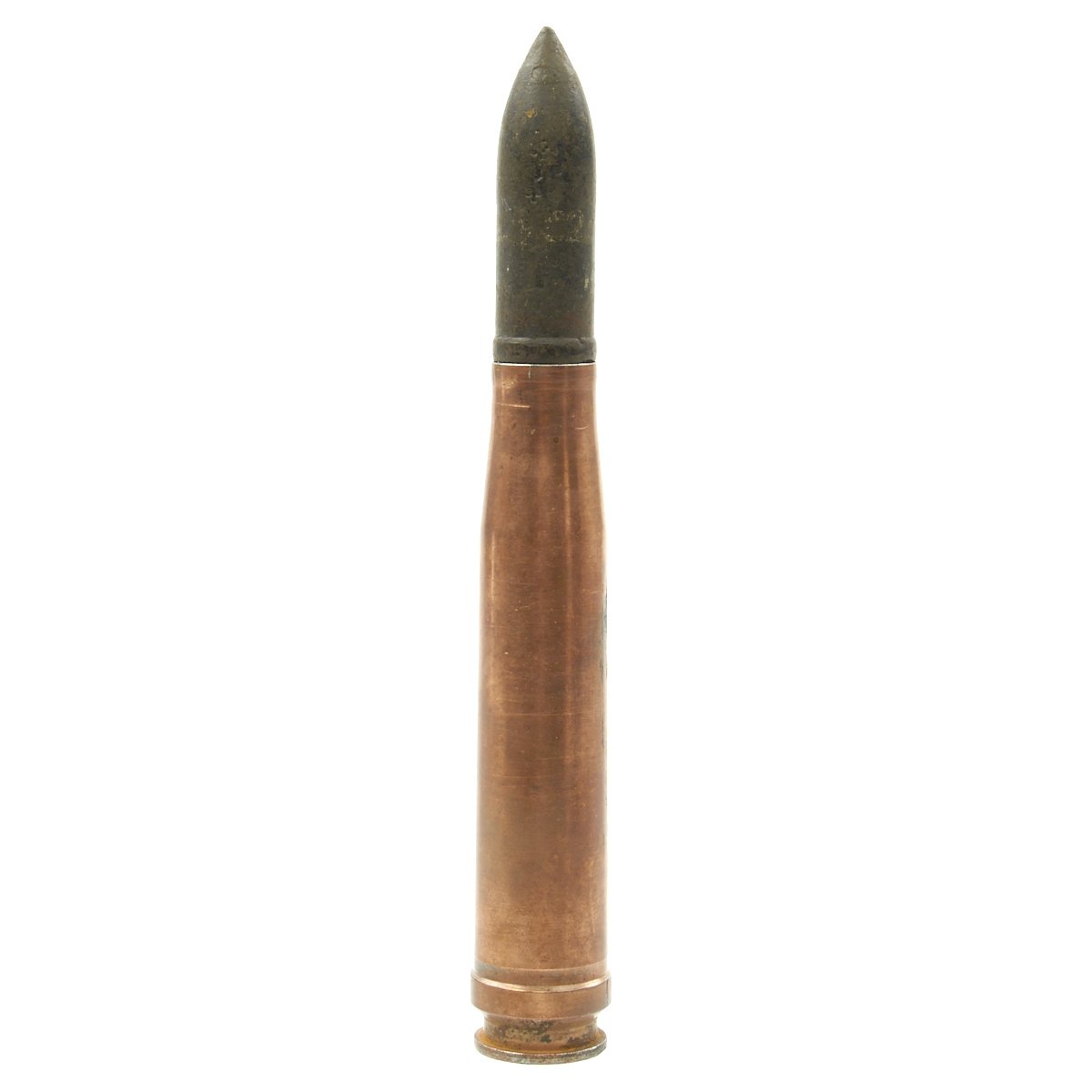Original Item: Very Few Available. Fantastic inert 20mm German WWII FLAK 38 rounds nicely marked on the base and offered in very good condition. Each round is approximately 8" in length.