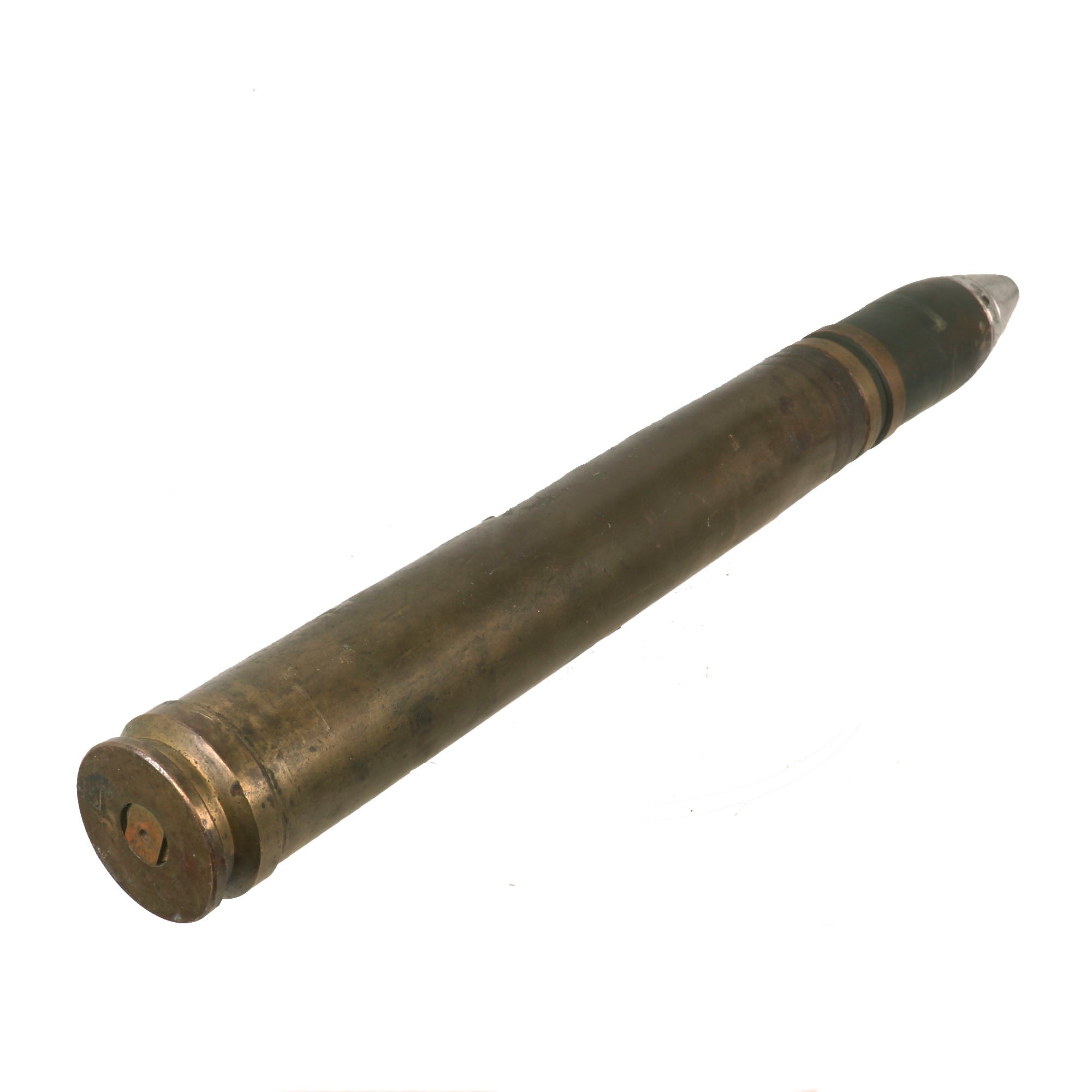 The overall condition on the round is really good, though the casing does appear to have some light wear. The projectile retains much of the original paint but does appear to be dated 1944 with a 1940 dated shell. The shell casing itself still retains a complete headstamp on the bottom reading: