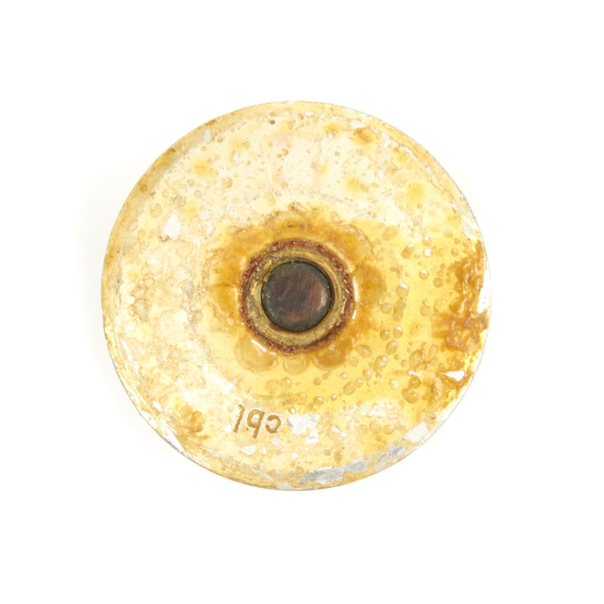 The case head originally had one white dot, but there is little or no trace of the pigment left. The case head also is a stamped with a German WW2 letter code or the logo of the company that made the cartridge case. For example, cbl indicates that the case was made by Vereinigte Deutsche Metallwerke AG in Nurnberg A key to the manufacturers’ codes can be found in German Military Letter Codes 1939 1945 by John Walter (IMA Product Number MB1052).