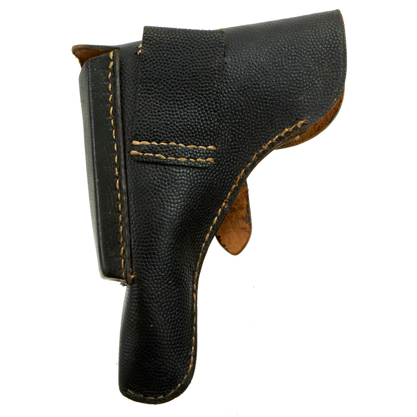 Original Item: Only One Available. Now this is a beautiful, slightly used black pebble grain leather drop holster for the German used FN Model 1910/1922. 1910/1922 pistols went on to see extensive service in World War Two, and continued to be manufactured by the Germans after their occupation of Belgium and seizure of the FN factory. These examples carry NSDAP production stamps, and most have simple checkered wood grips instead of the earlier horn or plastic grips bearing the FN logo.