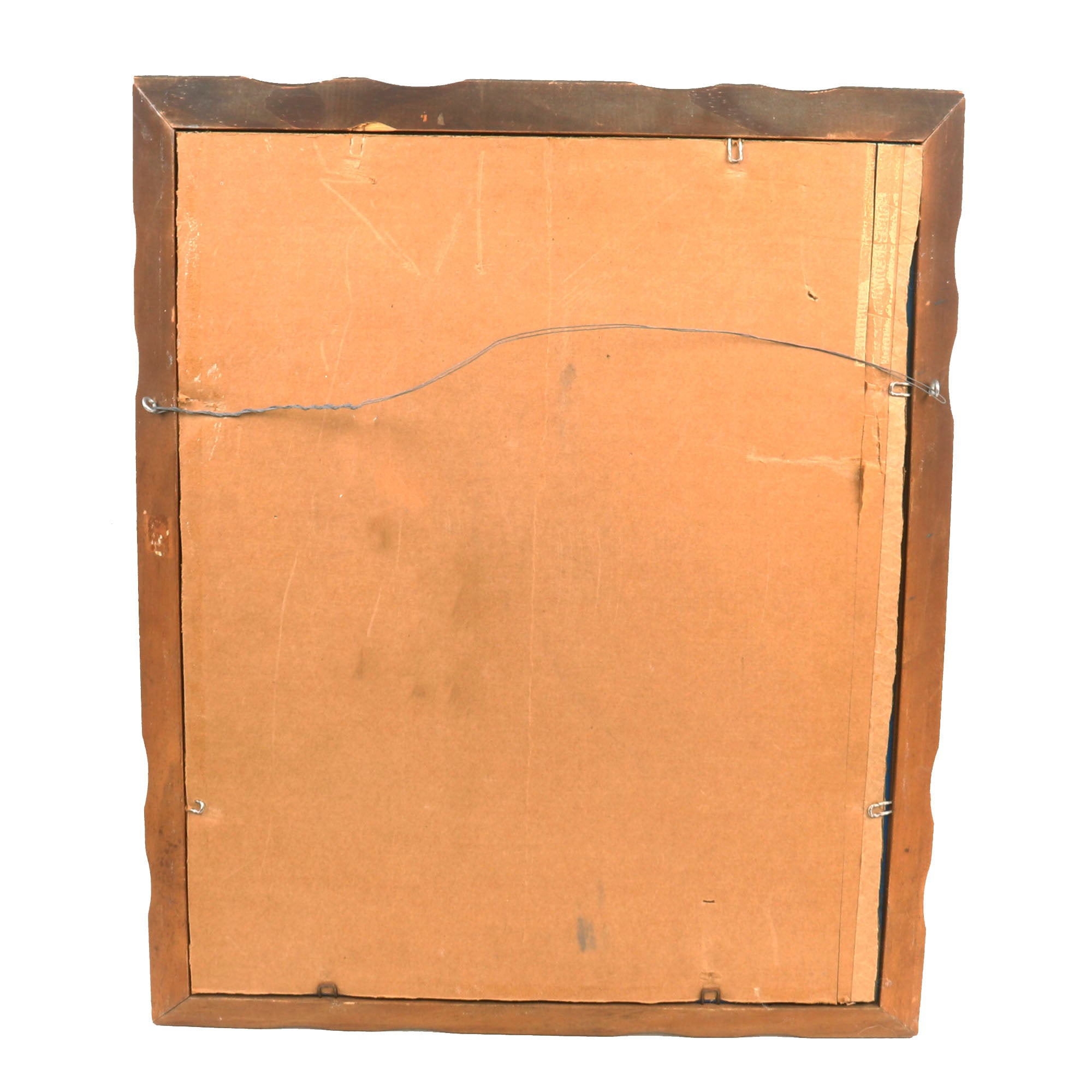 The only damage on the piece is some loss of paint in the bottom right corner, and a small bit of loss to the bottom left corner. Otherwise, the paint has aged well and displays beautifully. The frame has a good amount of finish loss, but considering it is likely a period frame, this is to be expected.