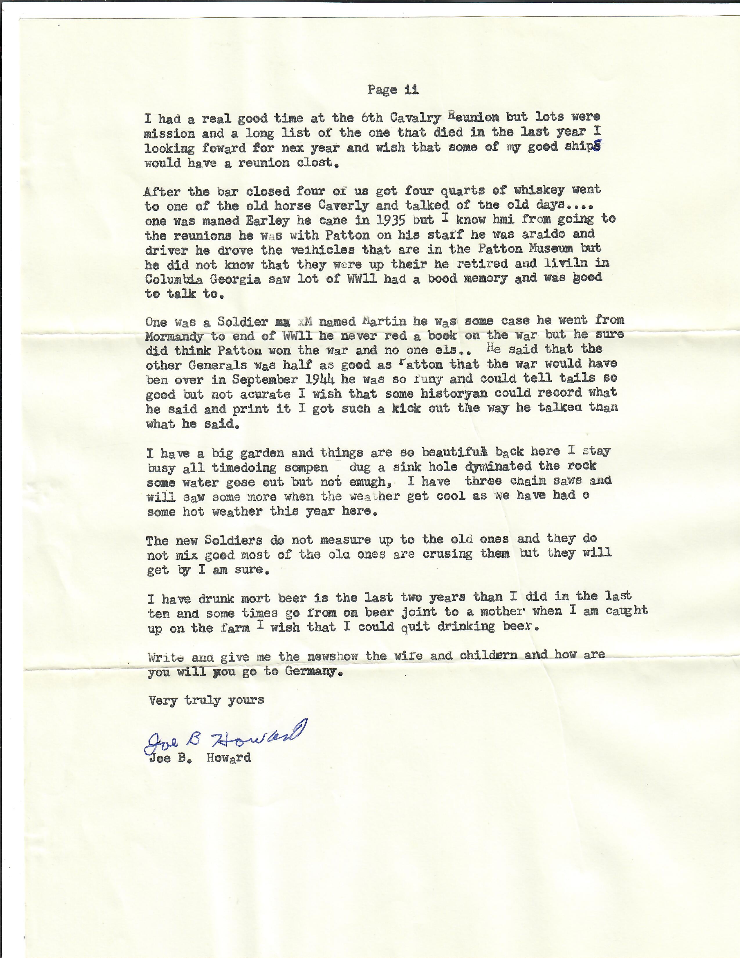 This then hangs in a larger frame, measuring 13 5/8 x 11 1/2 x 1 3/4". Attached to the back of the frame is the original envelope used to send the letter, post marked JUL 22 1974. Also in the envelope is what looks to be some personal correspondence, also from Joe B. Howard.