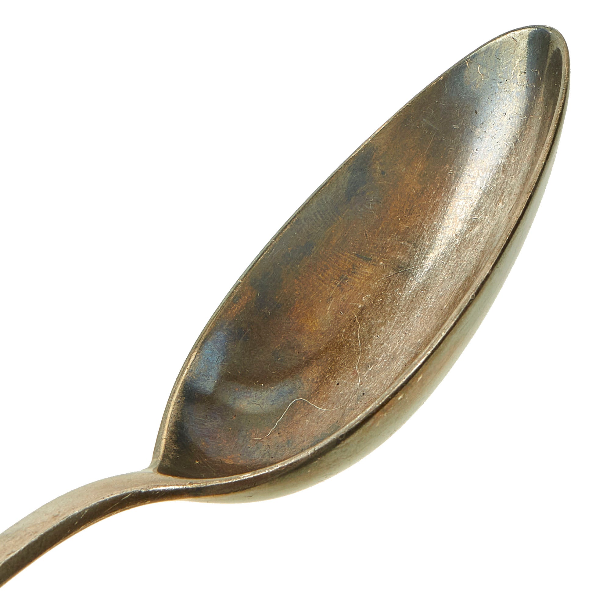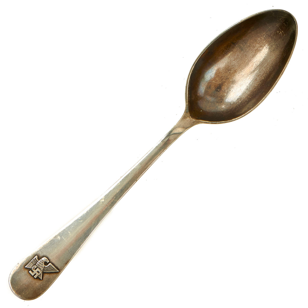 The serving spoon shows wear and swirling overall, with a lovely lightly tarnished patina overall. A very interesting piece of Third Reich memorabilia!
