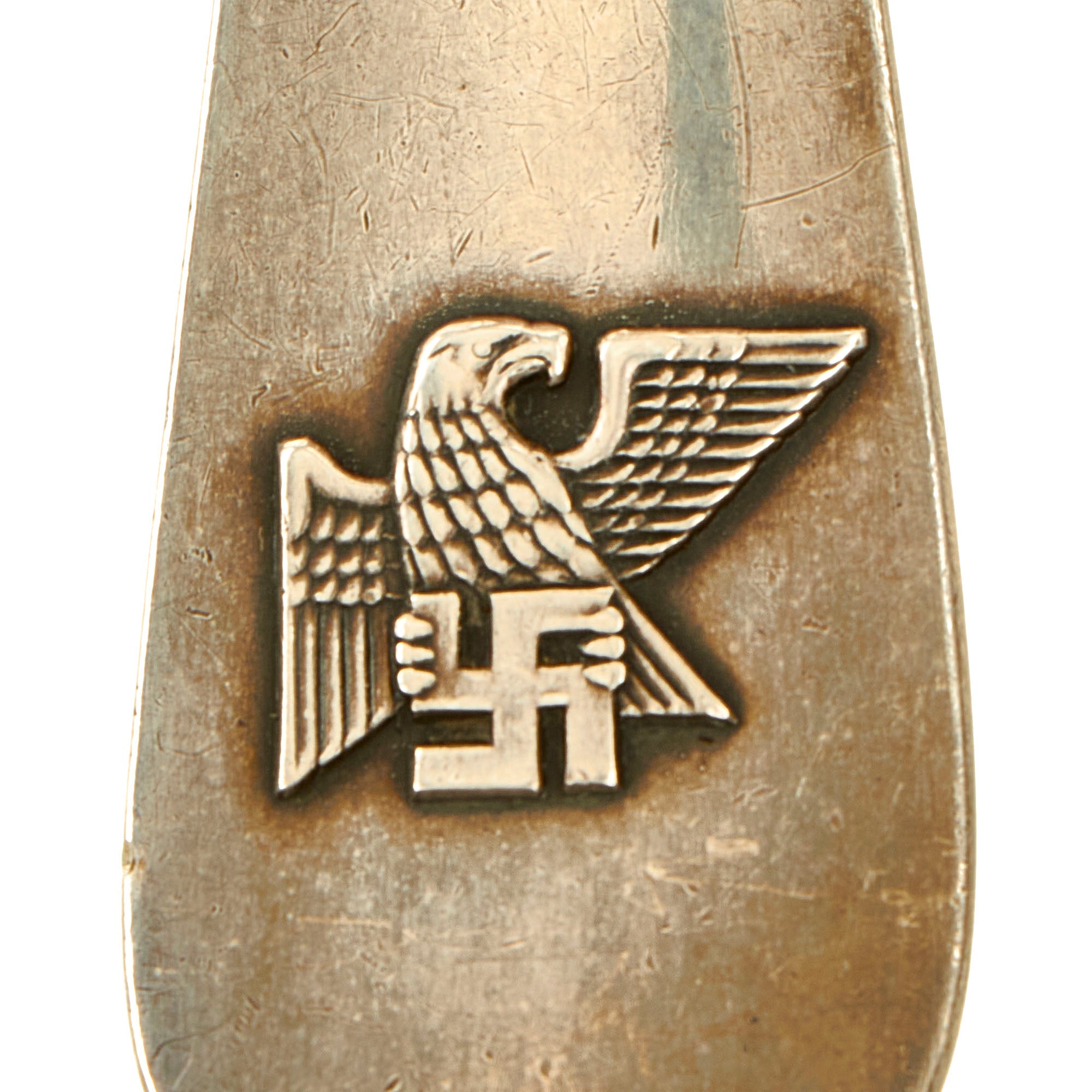 Original Item: Only One Available. This is a very nice serving spoon, taken from the office of Gauleiter Fritz Sauckel, who was the leader of Gau (district) Thuringia in NSDAP Germany. From what we can tell, the silverware and other artifacts were taken from Sauckel's Gau Headquarters in Weimar in April 1945, by a member of the American Third Army. Sauckel had fled the city by car on April 10, 1945, only a day after declaring Weimar a fortress city and exhorting his Volkssturm forces to resist the approaching American Army. This was quite typical of the cowardly leadership of NSDAP Germany.