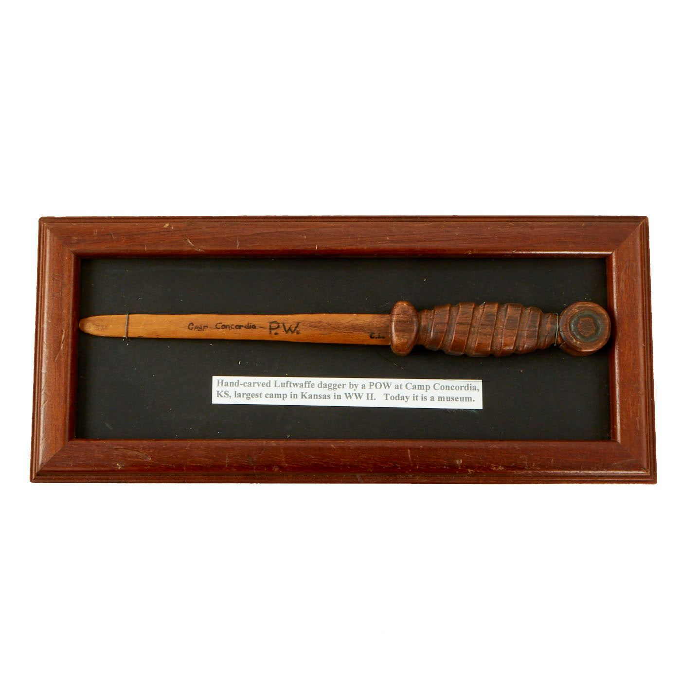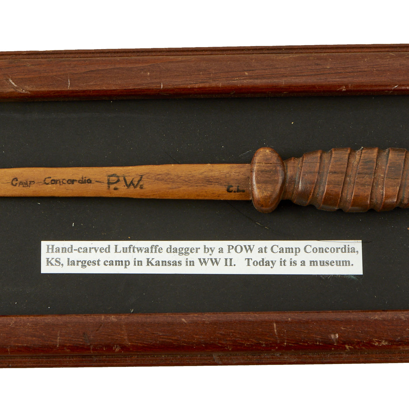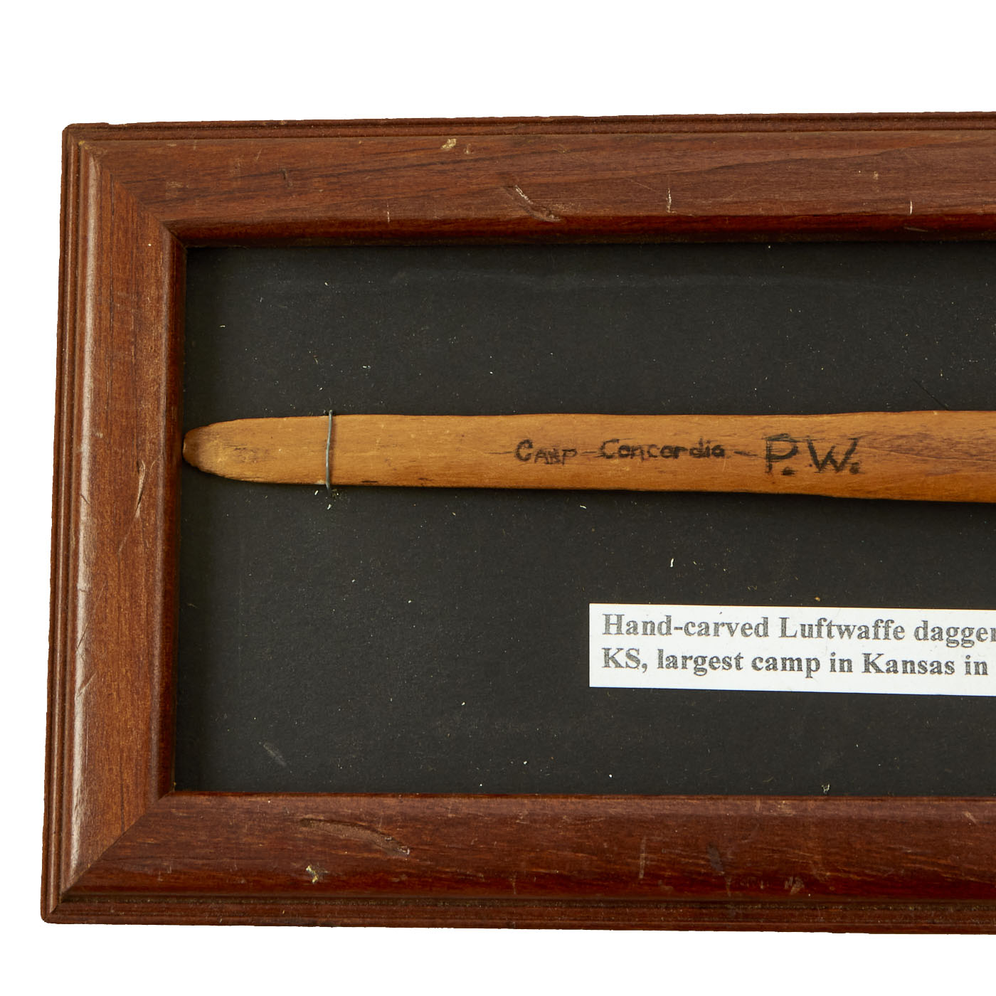 Original Item: One-Of-A-Kind. Now this is a fantastic piece of artwork made by a German Luftwaffe Prisoner of War who was interned at Camp Concordia, the largest POW camp in Kansas. The camp operated from 1943–1945. Its location is two miles north and one mile east of Concordia, Kansas. The camp was used primarily for German Army prisoners during World War II who were captured in battles that took place in Africa.