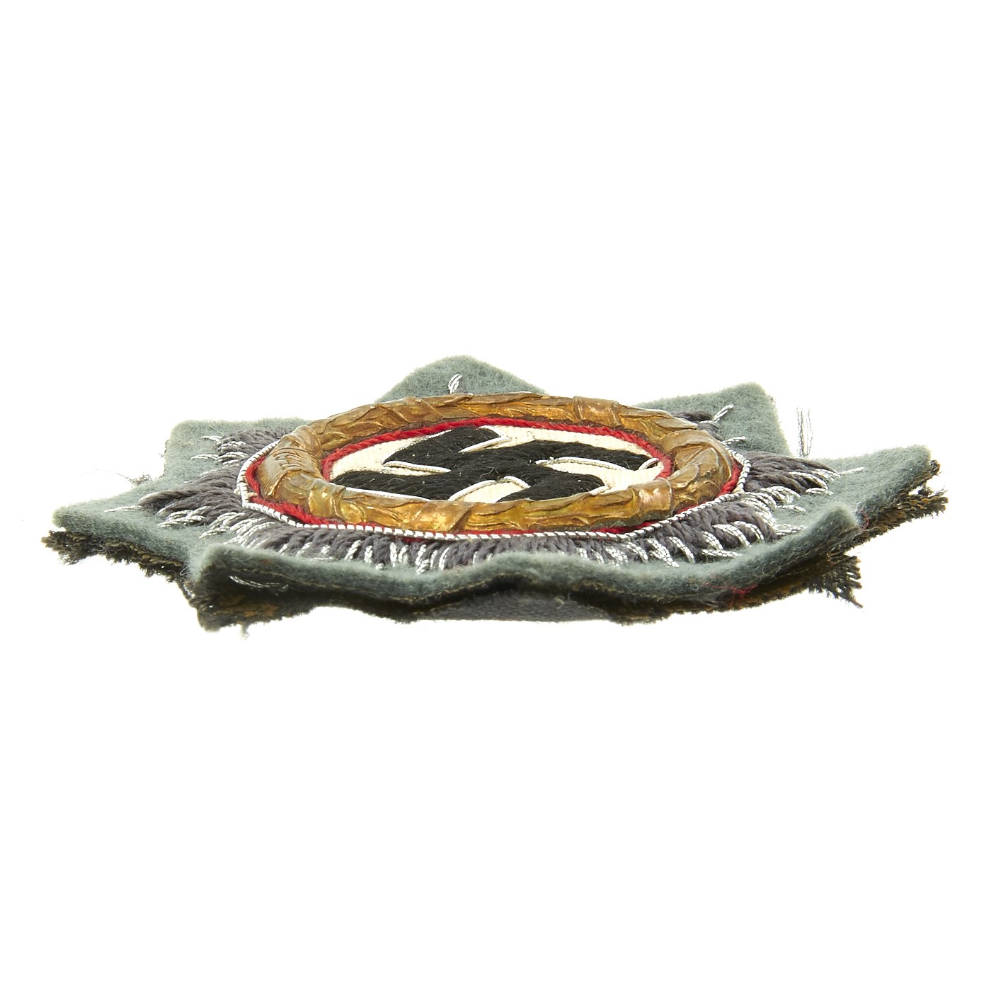 The award itself was given for bravery, much like the Iron cross, and level of bravery and service would have to be above that required by the Iron Cross First Class but less than that required by the Knights Cross. The awards were issued in several versions, both all metal and part cloth, and all had a multi-layer construction. The embroidered badges were colored differently on the border for the Heer (Army), Luftwaffe (Air Force), and Kriegsmarine (Navy), so that the background would match their uniform.