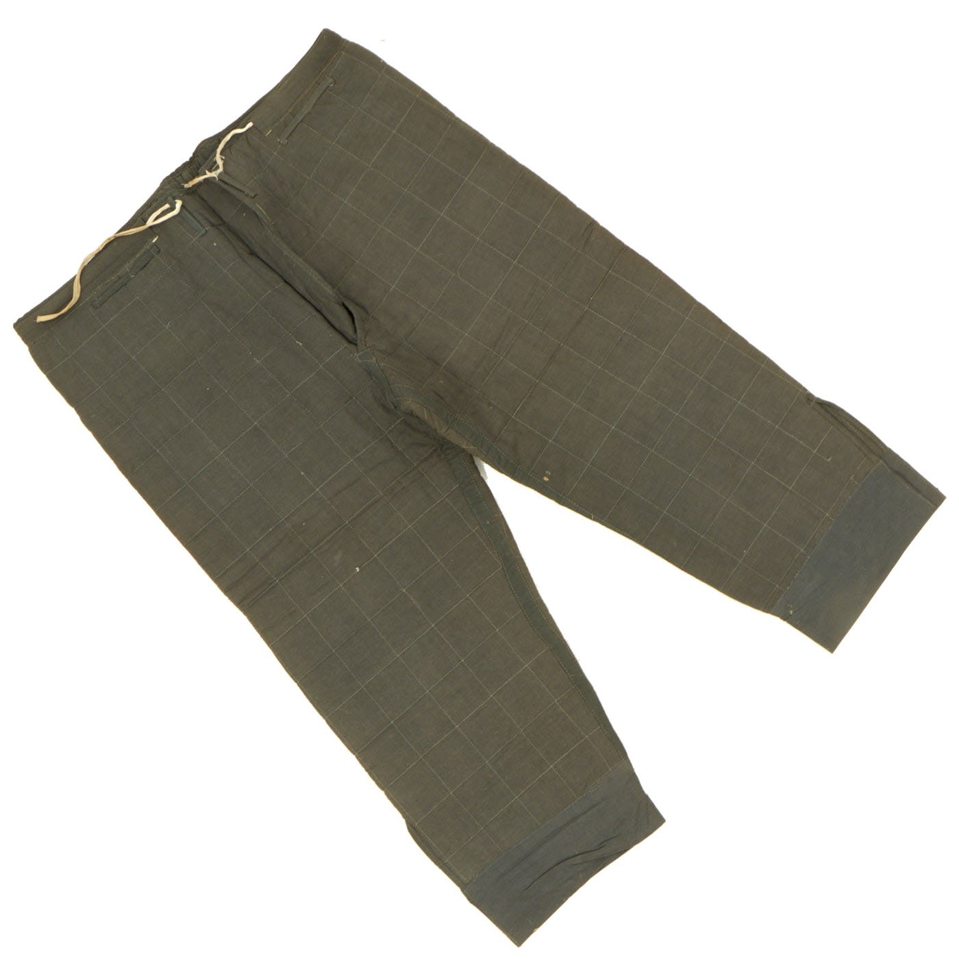 The severe cold encountered on the Russian front in the winter of 1941 found the Germans completely unprepared not only in heat retaining cold weather garments but also snow camouflage garments. This resulted in numerous, hastily improvised and makeshift heat retaining and snow camouflage items being utilized including everything from civilian winter clothing to white bed sheets. After the winter of 1941 the Oberkommando des Wehrmacht, (High Command of the Armed Forces), recognized the need for heavier winter clothing and testing began in the spring of 1942 to develop suitable garments. In April 1942 AH approved the chosen design, and the first models were issued in the autumn of that year, in the reversible blue/grey/white colourations, which was modified to camouflage pattern/white combinations in 1943. Included with these new garments were heavy, padded, winter suits which consisted of a parka, pants, hoods and mittens. The winter garments were issued in September and returned to the units clothing depot in April for storage, repair and cleaning to be reissued the following September. Although the suits proved quite effective they were very difficult to keep clean.