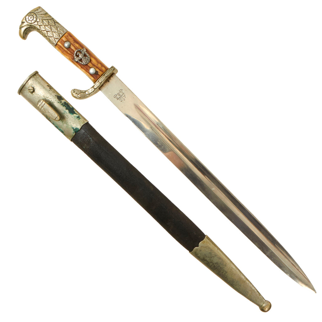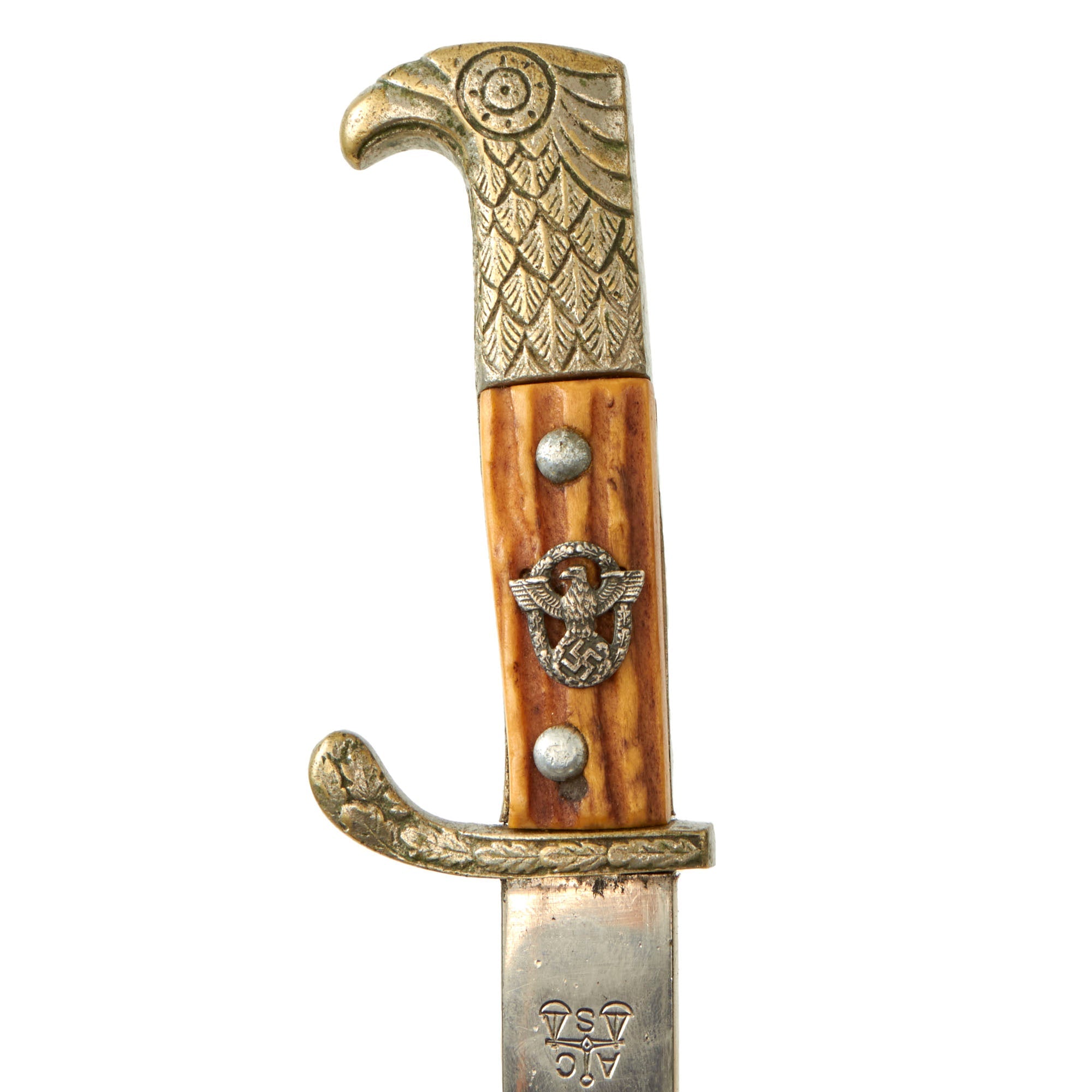 This is a wonderful unit marked early war Hamburg metropolitan police bayonet by ALCOSO with some great research potential! Complete with scabbard, this bayonet is ready to research and display!