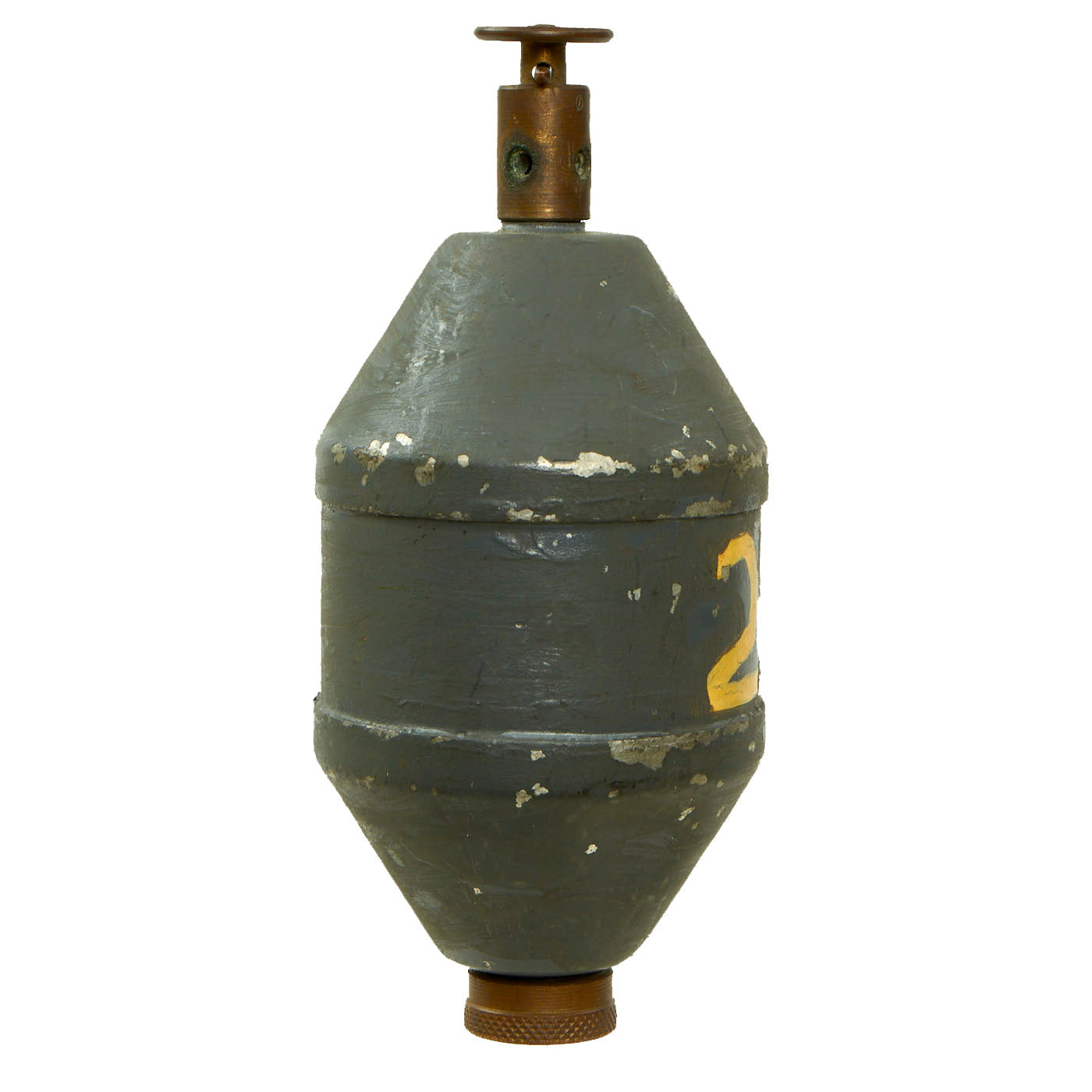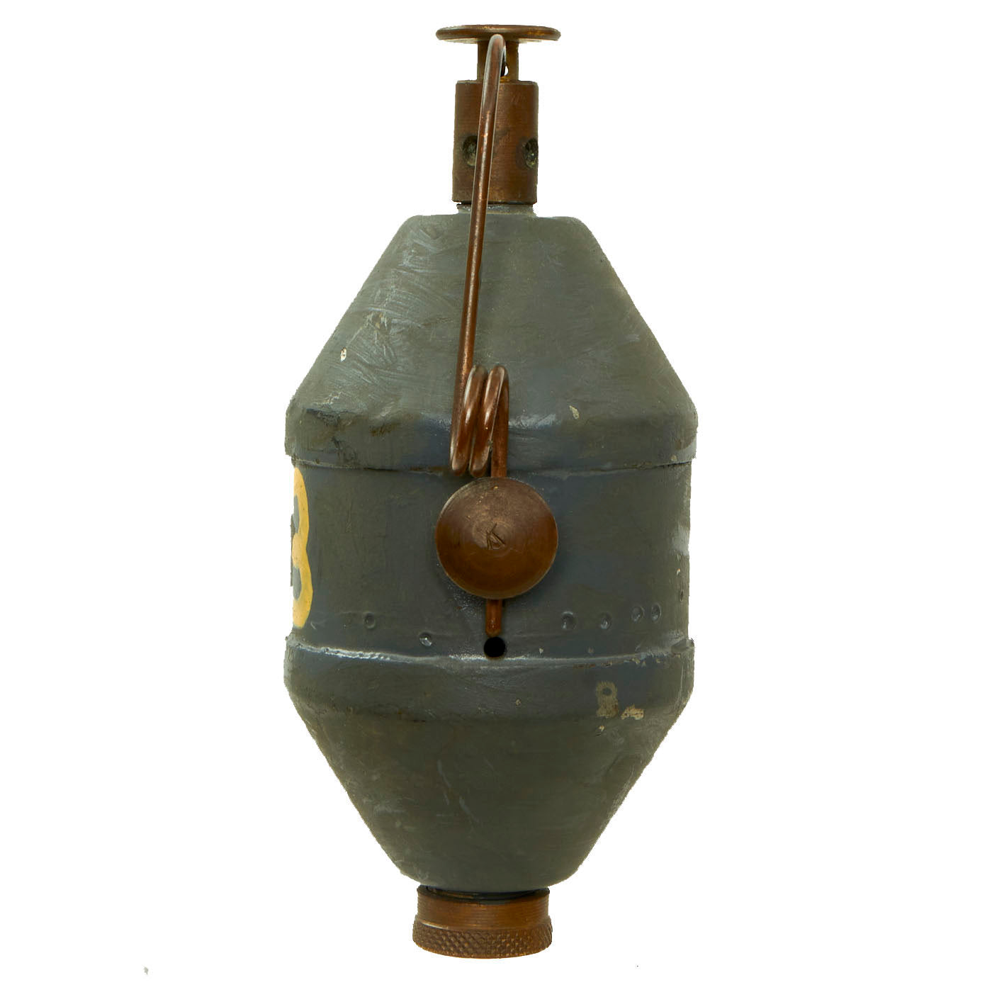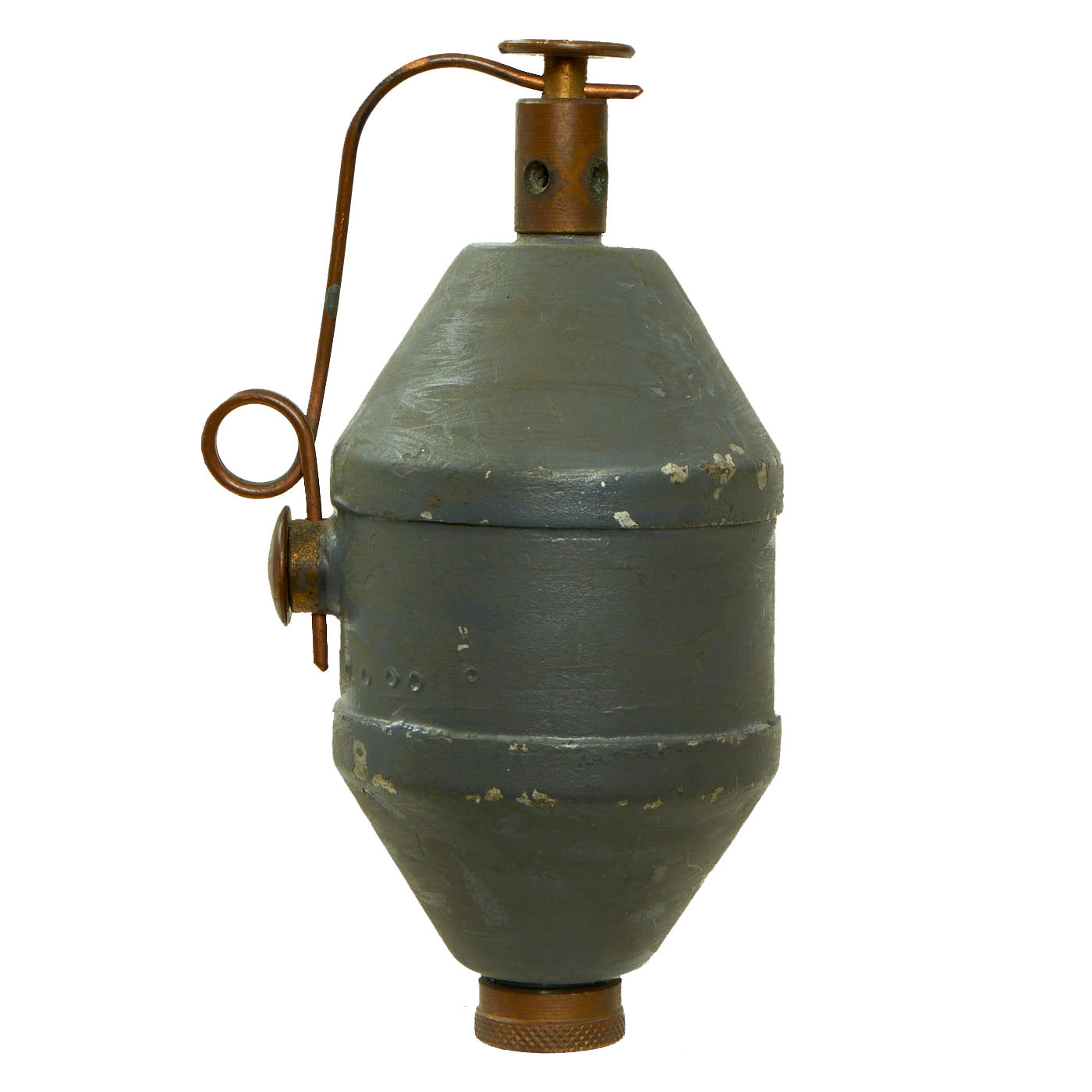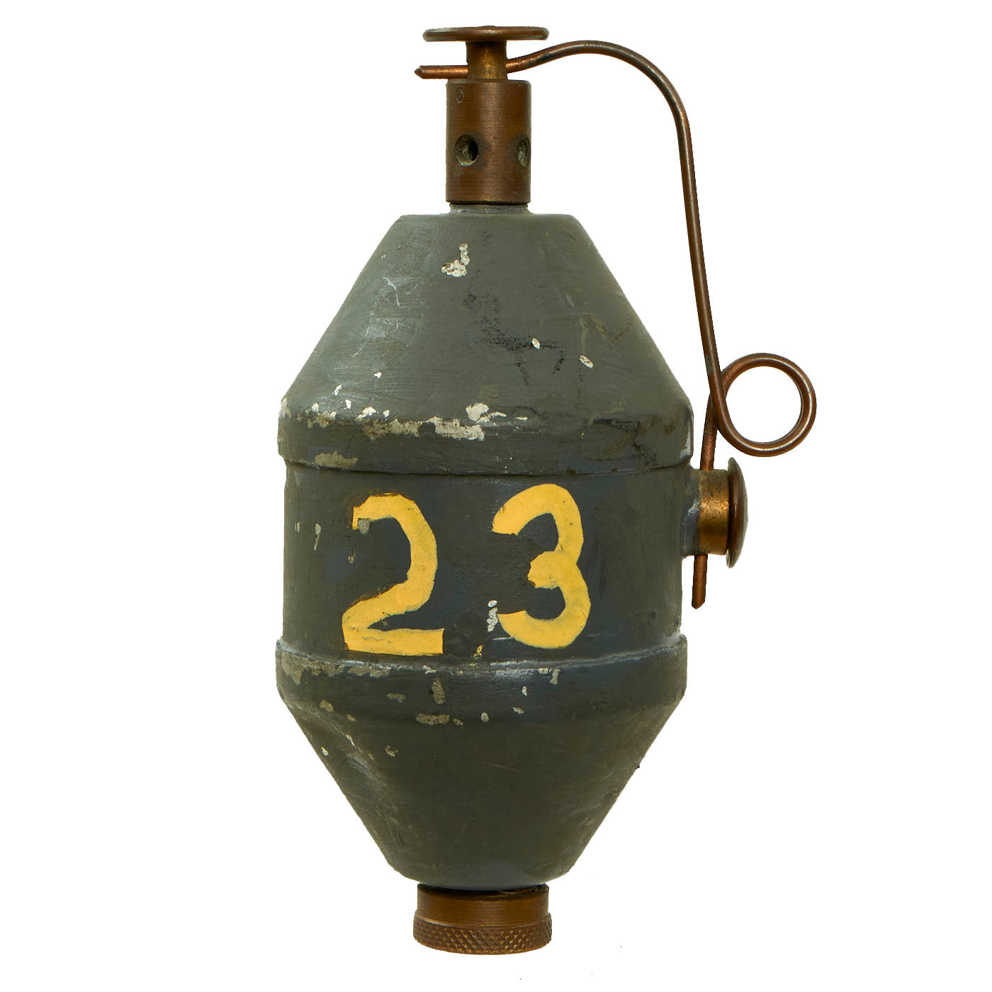 Original Item: Only One Available. The Danish M.1923 grenade is one of the more mysterious types encountered by collectors. It seems everyone has a different opinion about what it is exactly. We've seen it described as Swedish, Japanese and almost everything in between. To put truth to the speculation - this model grenade was developed by the Danish and produced in Denmark, designated the Haandbombe Model 1923.