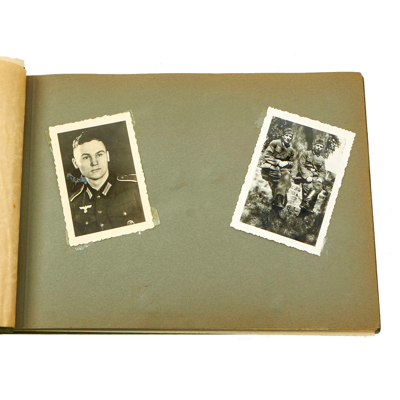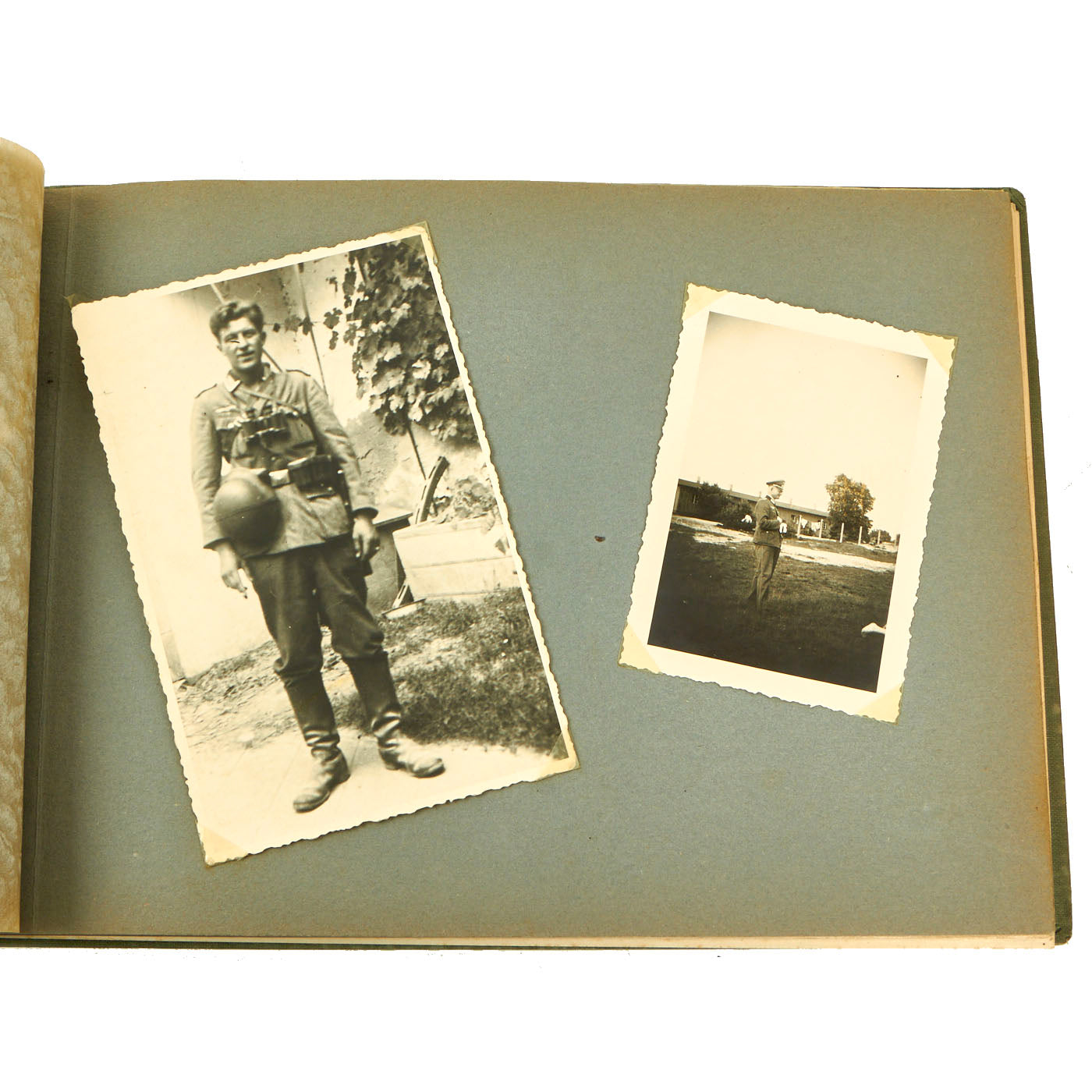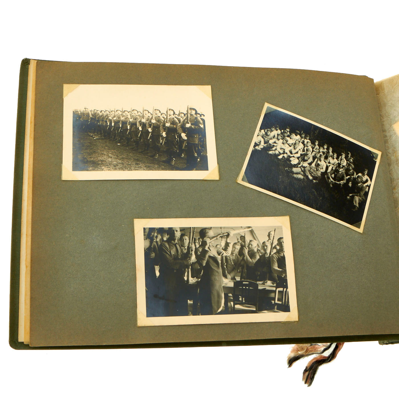 Original Item: One-of-a-kind. A wonderful personal photo album, marked on the front with the Wehrmachtadler Eagle, over regimental designation 9. Komp. / Inf.-Rgt. 60, or 9th Company, 60th Infantry Regiment. Inside the front cover is the standard Erinnerungen an meine Wehrdienstzeit (Memories of my Military Service), message. The back still has a visible maker mark from a company in LEIPZIG, and the album overall measures approximately 10.5" x 7".