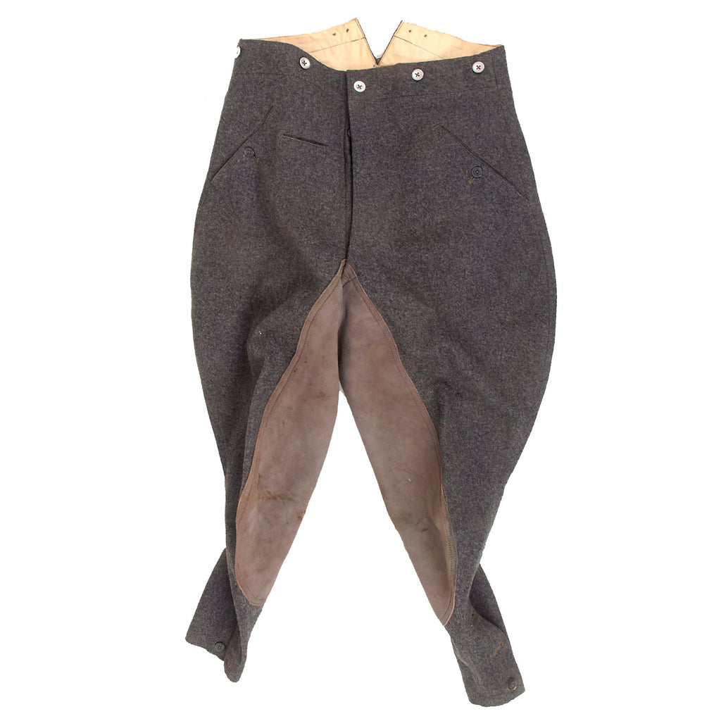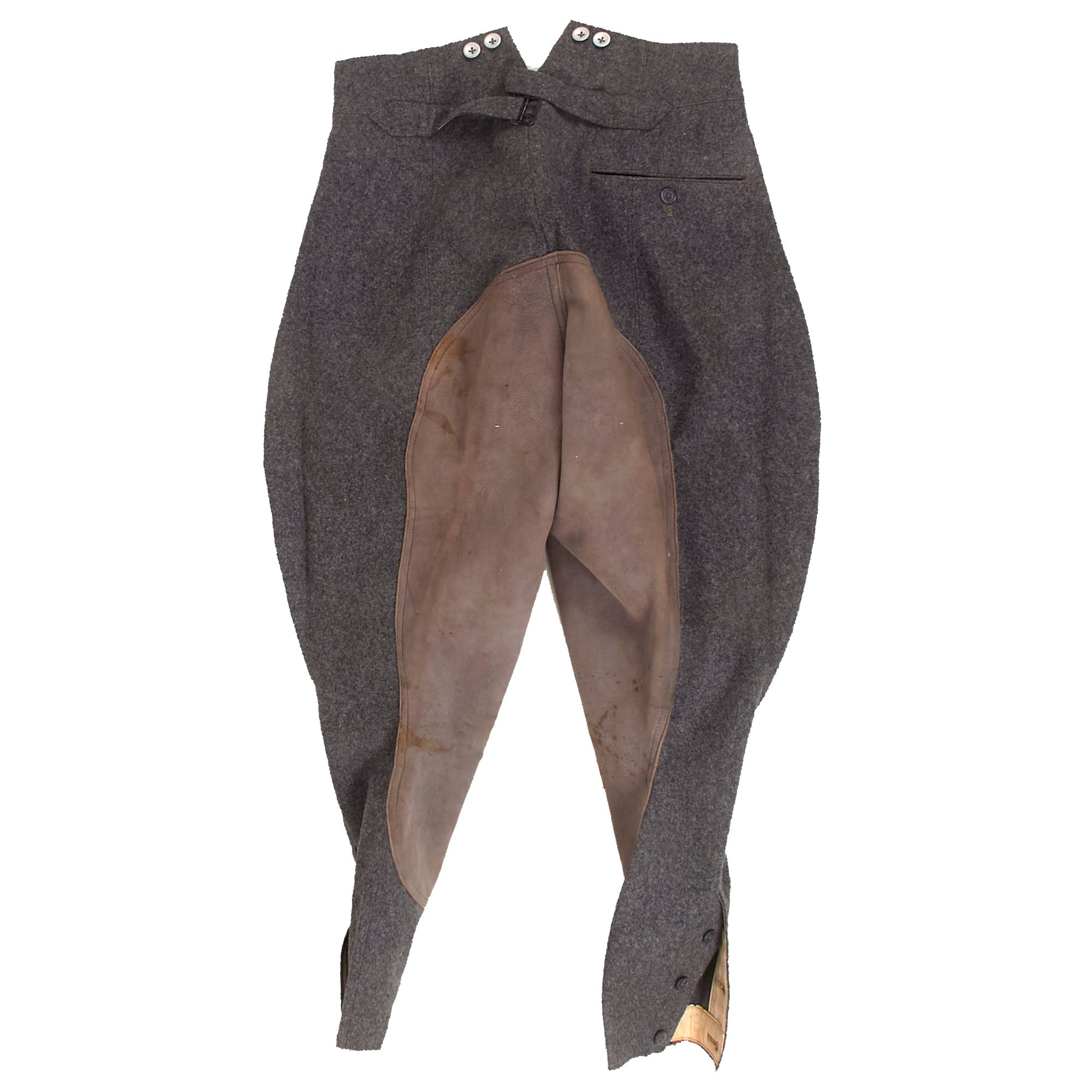 Original Item: Only One Available. This is a tremendous lightly worn set of German WWII Heer Army Enlisted mounted breeches, sometimes called 'Jodhpurs' or 'riding pants'. They were meant to wear with the tall jackboots, and have an unmistakable silhouette. While they are often associated with officers, they could also be worn by enlisted and NCO personnel. This set is exceptional, with the reinforcements well-retained. They still have the original size markings on the inner right:
