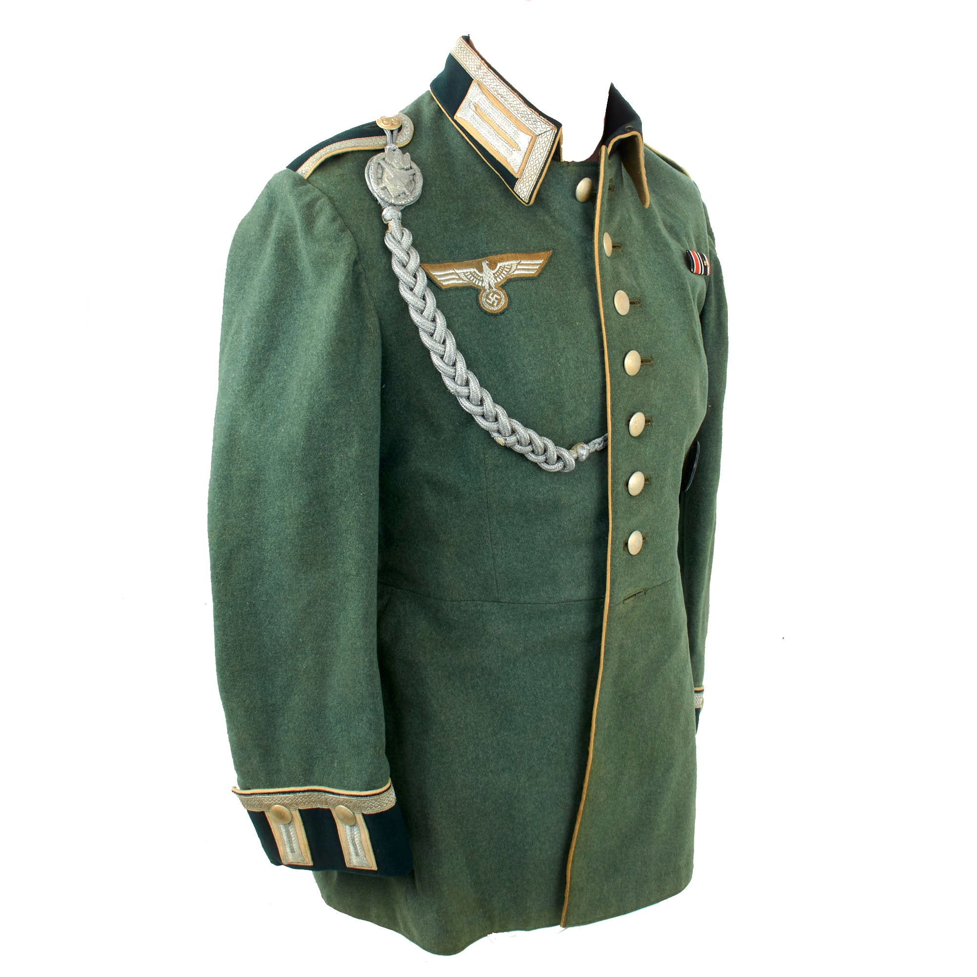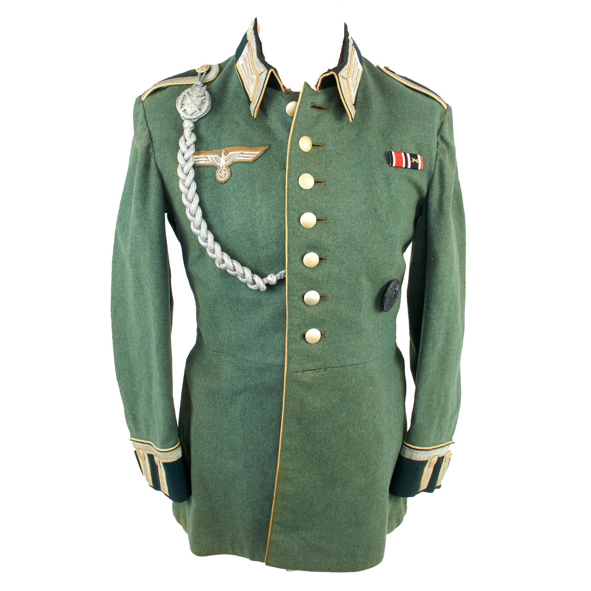 The M35 Waffenrock dress tunic was introduced for wear by all ranks on June 29TH 1935 as the walking out, parade and ceremonial dress with the piped, stone grey long pants. The design of the M35 dress tunic was based on the Imperial German army’s service tunic but was a different color and generally of much higher quality. Originally all personnel were issued two M35 dress tunics but manufacture was discontinued in late 1939 or early 1940 and was to be reinstated at the successful conclusion of the war. Regulations of March 21ST 1940 stated that the M35 dress tunics that were no longer suitable for dress wear were to be modified and reissued to personnel of the replacement and reserve units for every day wear. Officers and certain senior NCO ranks were responsible for purchasing their own uniforms and as a result were allotted a clothing allowance through the army’s Kleiderkasse, (Clothing Account), system. The Officers and certain senior NCO’s could choose to purchase their uniforms from the armed forces clothing depots or to privately purchase garments of higher quality. Although enlisted personnel were issued their uniforms from government supplies they were also permitted to purchase privately tailored uniforms although the price may have been restrictive.