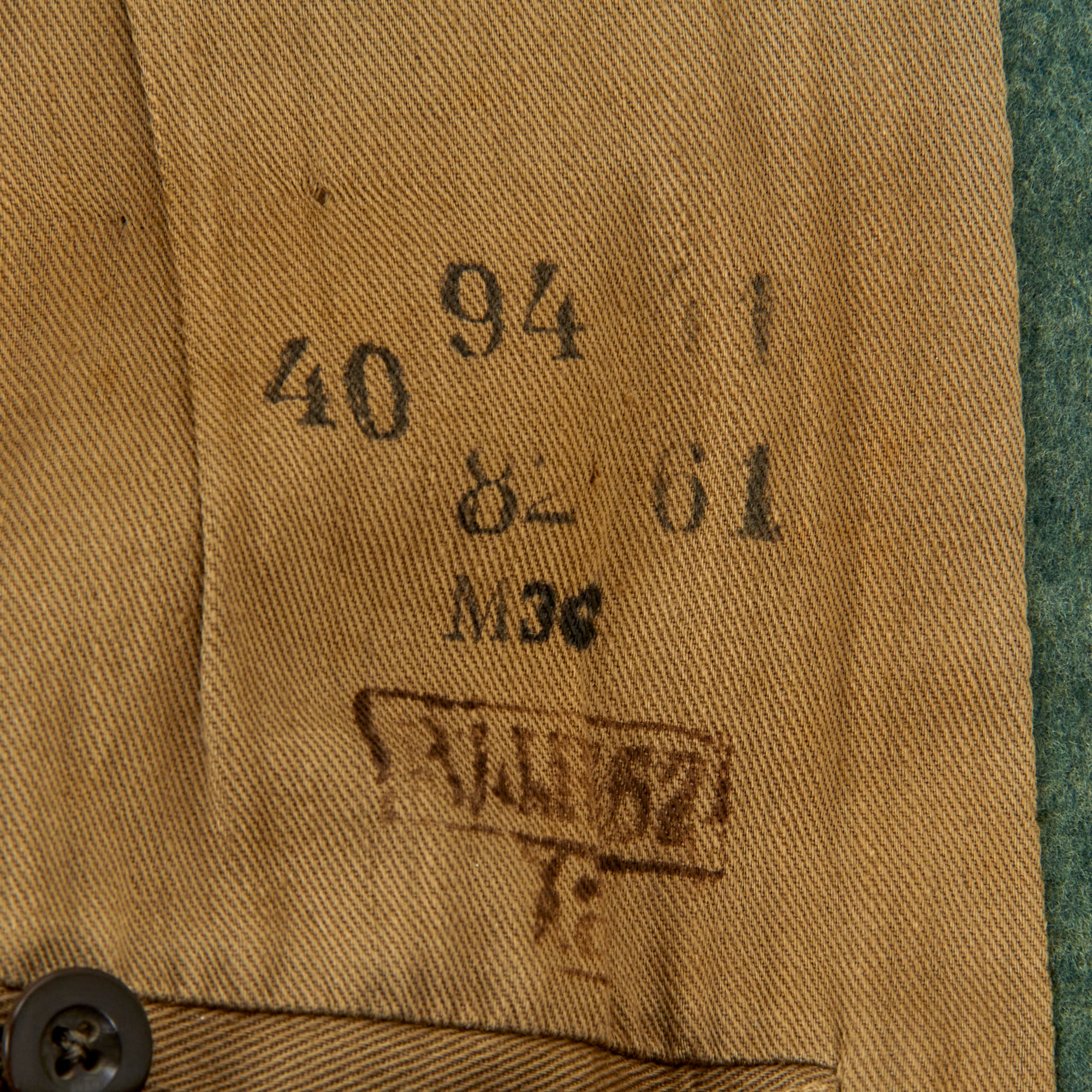 These markings indicate that this overcoat was issued at the Munich Depot, however someone unfortunately "touched up" the date, so we can only tell that it was issued in the late 30s. There also looks to be a regimental marking under the size markings, but we cannot quite make it out. The size markings most likely indicate the following:
