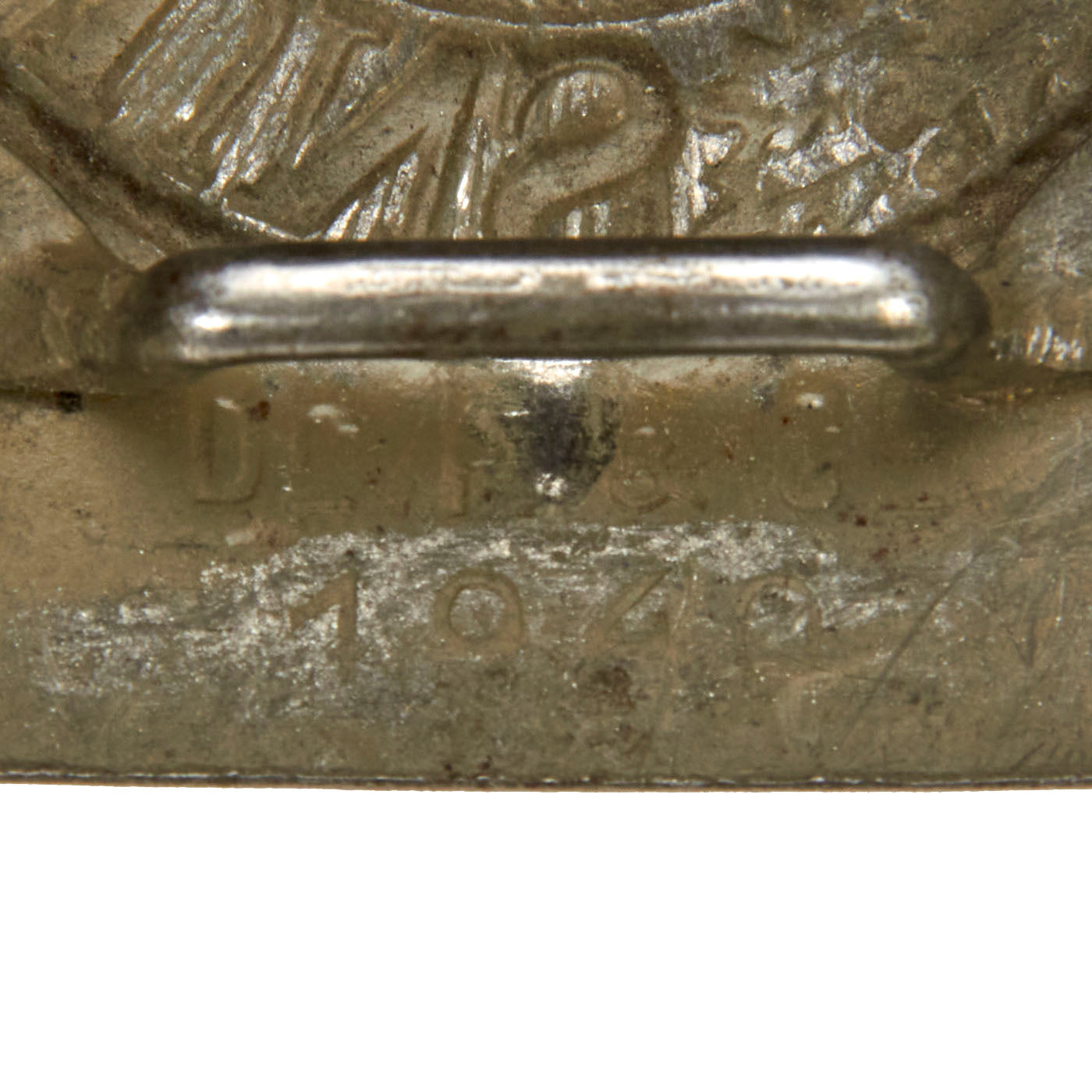 Normally these buckles came with a leather tab that helped support the ammunition pouches, however in 1942 due to the shortages of leather this tab was discontinued, though not all manufacturers followed this trend.