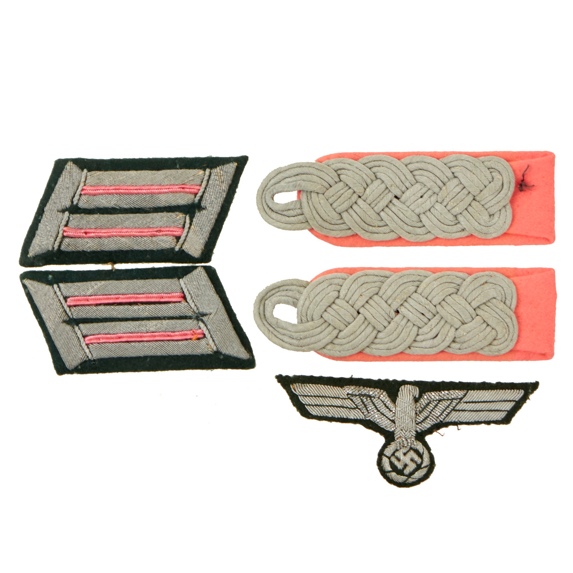 Original Items: Only One Set Available. This is a very nice set of German WWII Heer Army Panzer Major's uniform insignia, consisting of the correct Shoulderboards, collar tabs, and a silver Bullion Hoheitszeichen (National Eagle), also known as the Wehrmachtsadler (Armed Forces Eagle). Most German insignia are quite specific, giving not just the rank, but also the branch and corps. The set is in great condition, and would make a great addition to any uniform devoid of rank insignia.